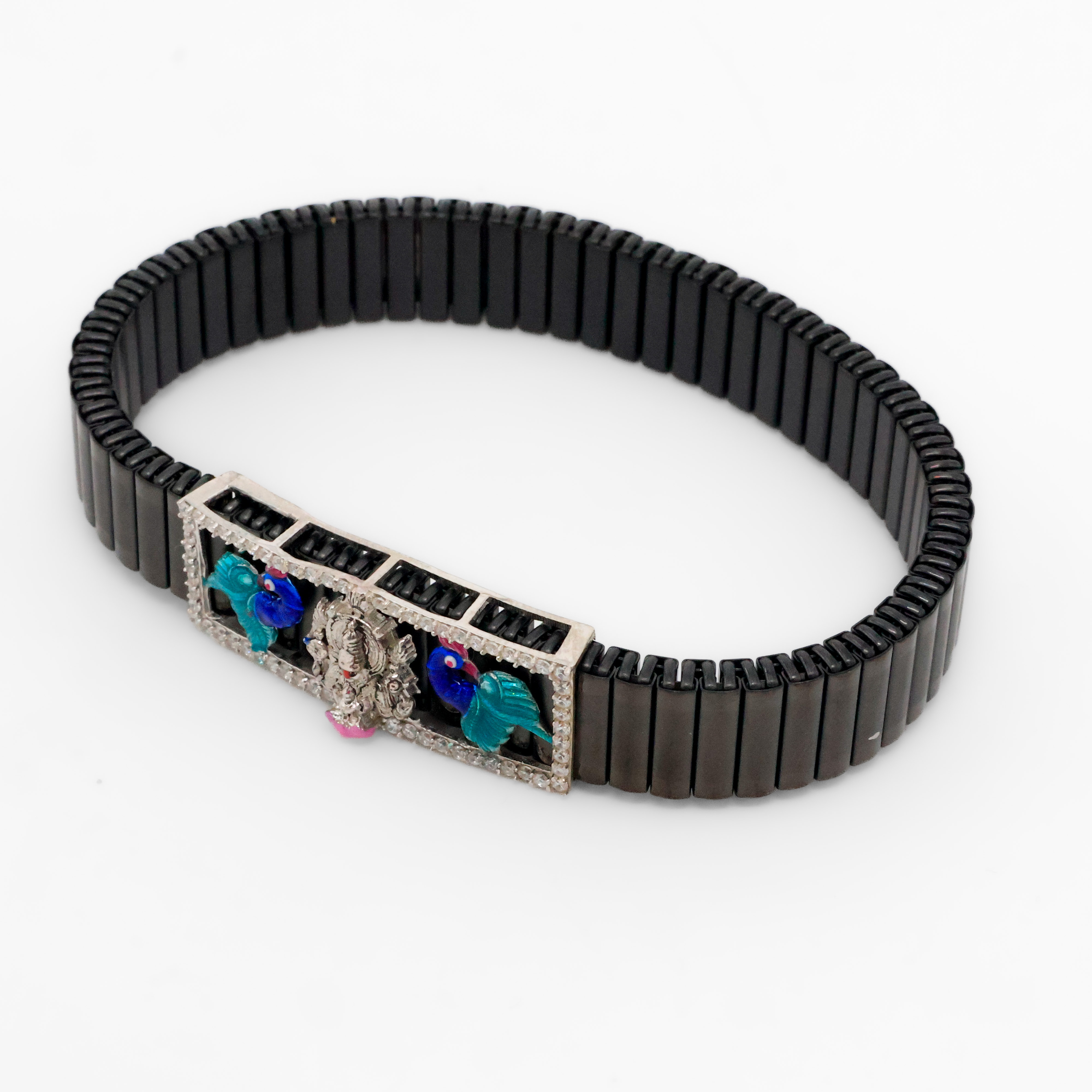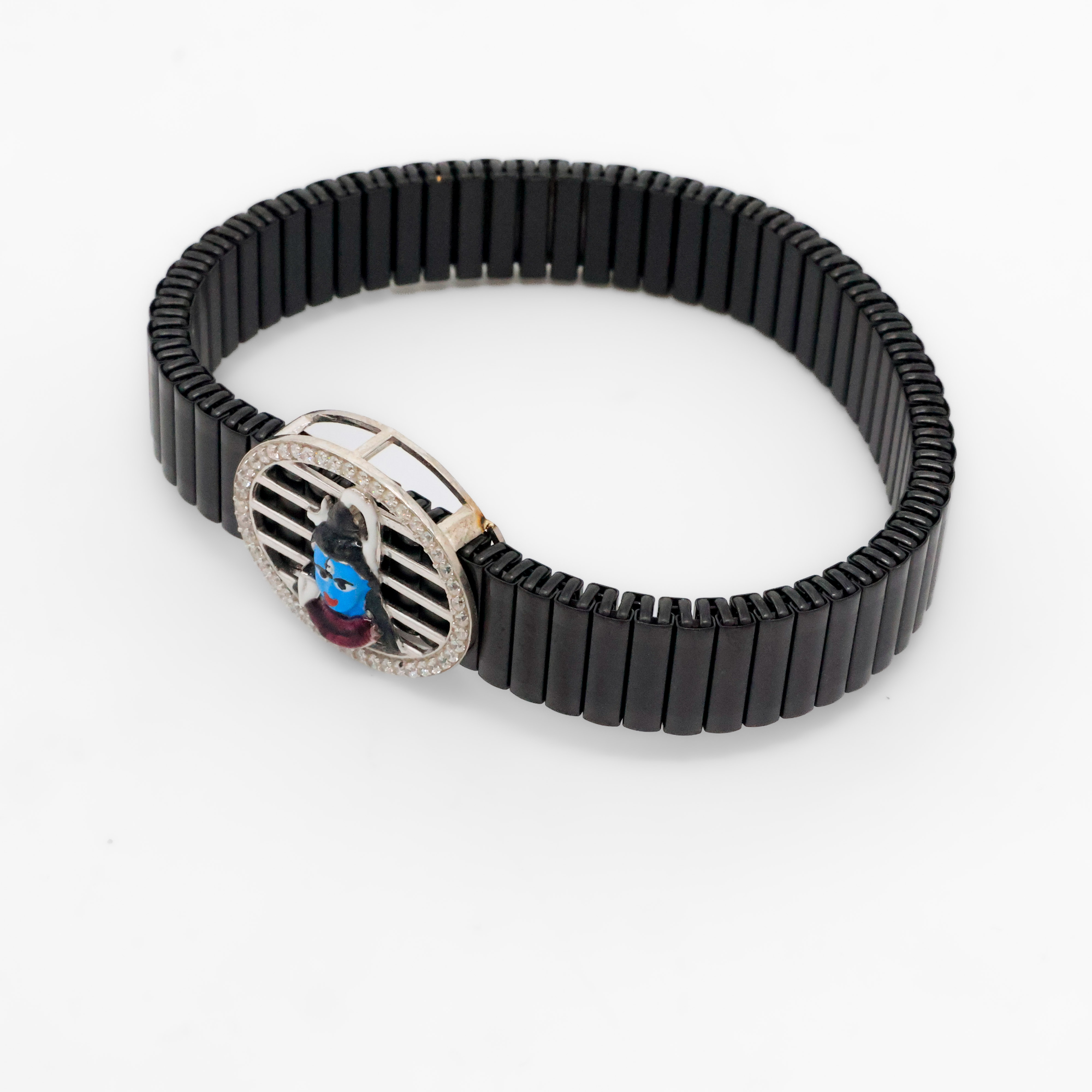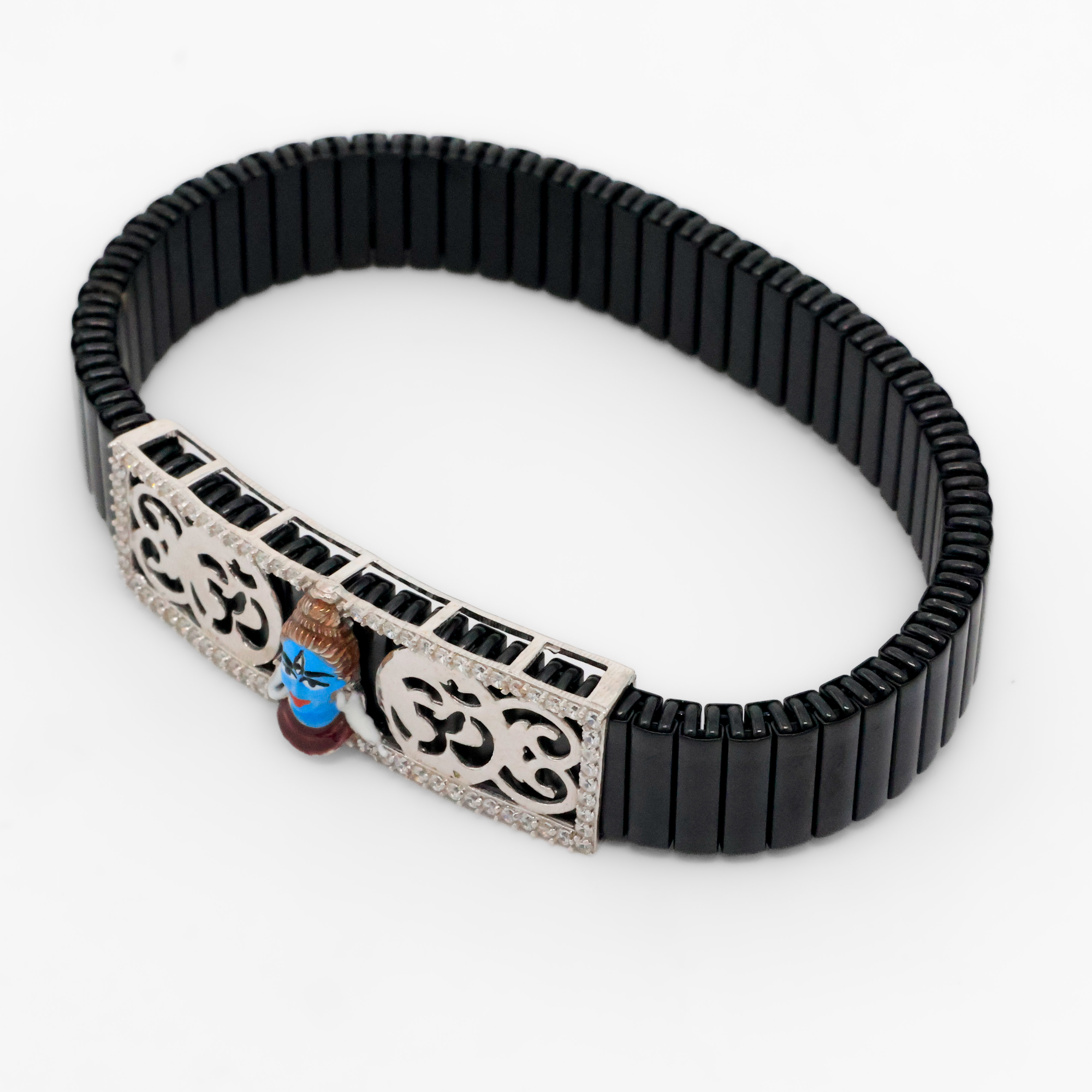 Black beaded silver charm bracelet with deity design, suitable for festive wear and gifting. Buy silver charm bracelet from Arham Silver Palace in Hyderabad.