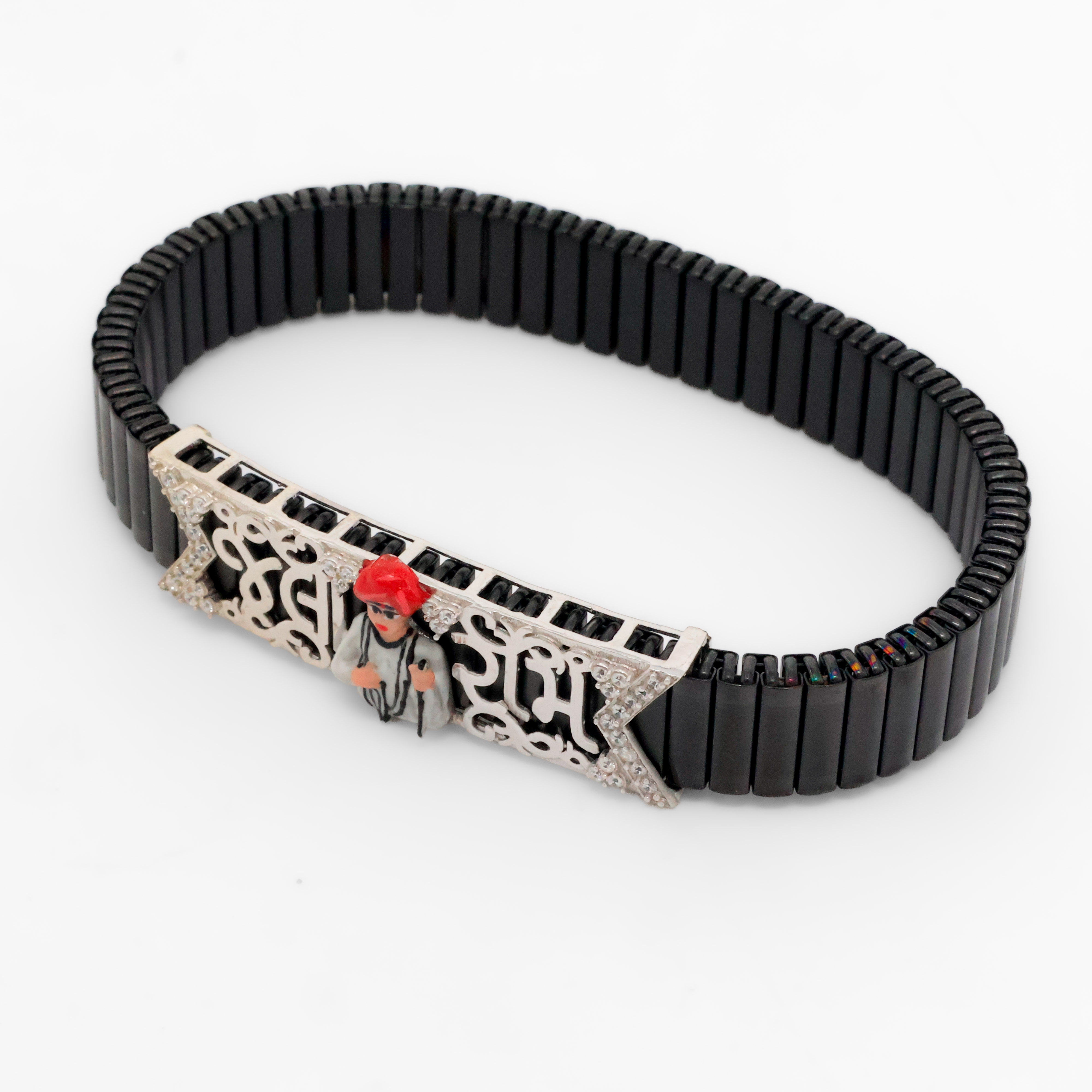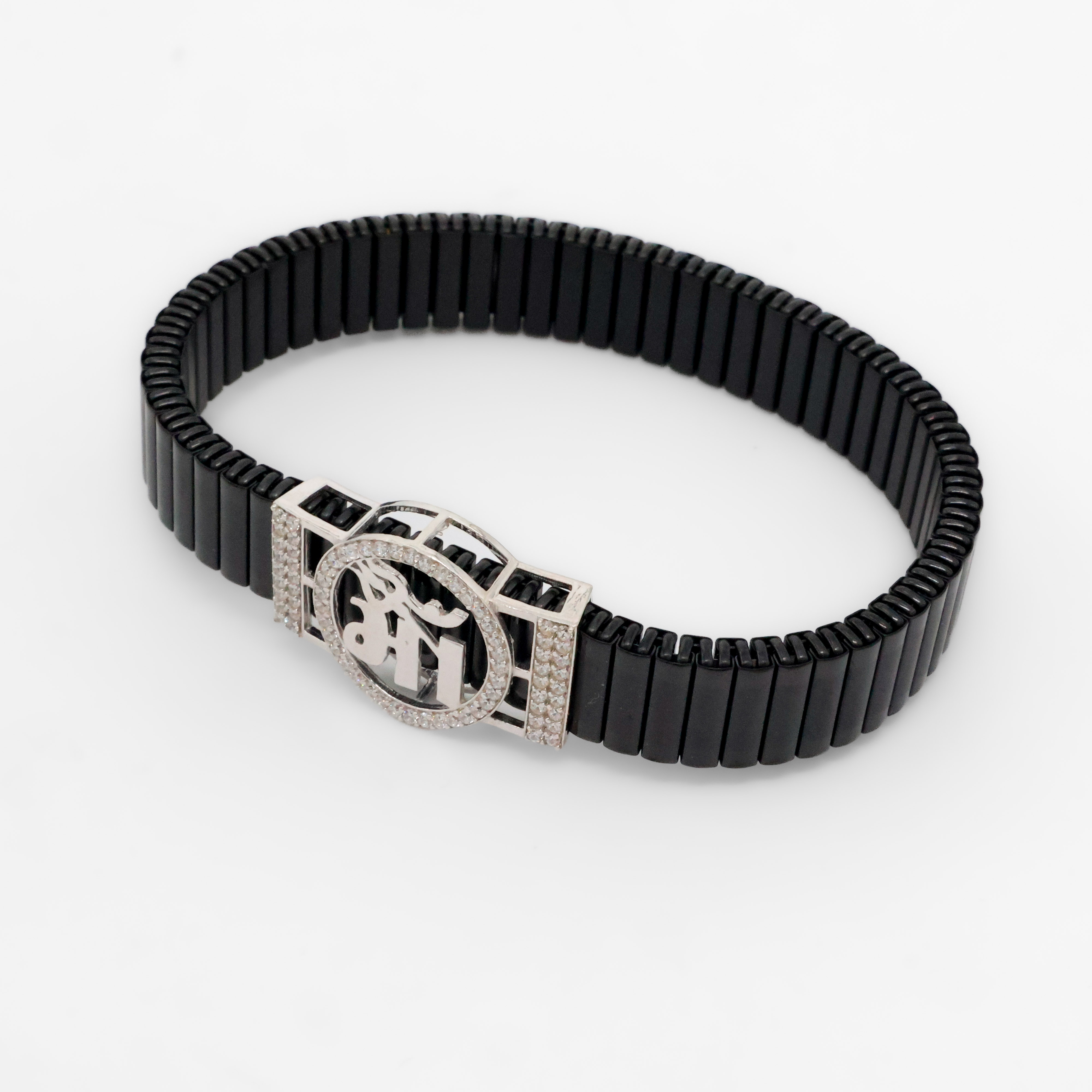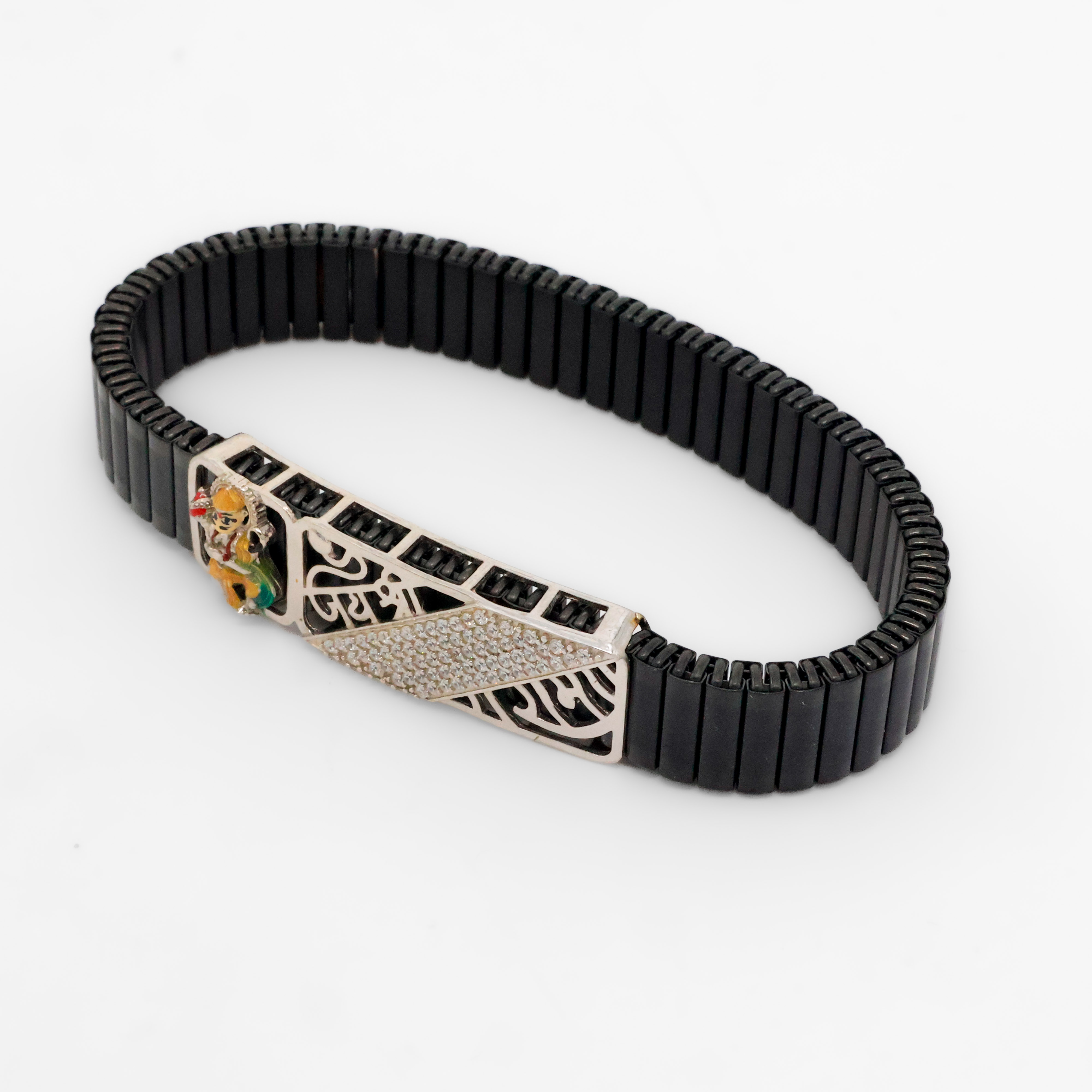 Black beaded silver charm bracelet with deity design, suitable for festive wear and gifting. Buy silver charm bracelet from Arham Silver Palace in Hyderabad.