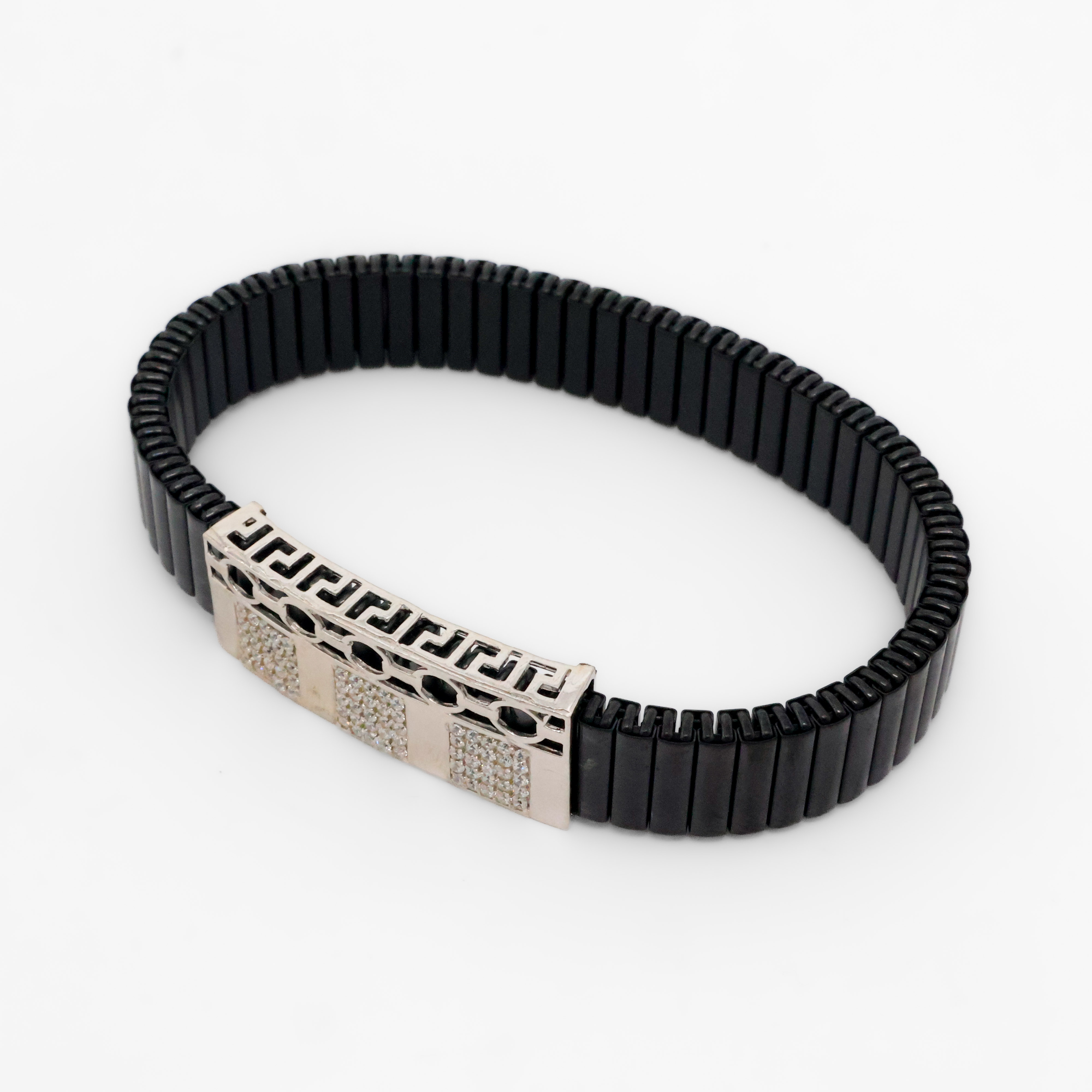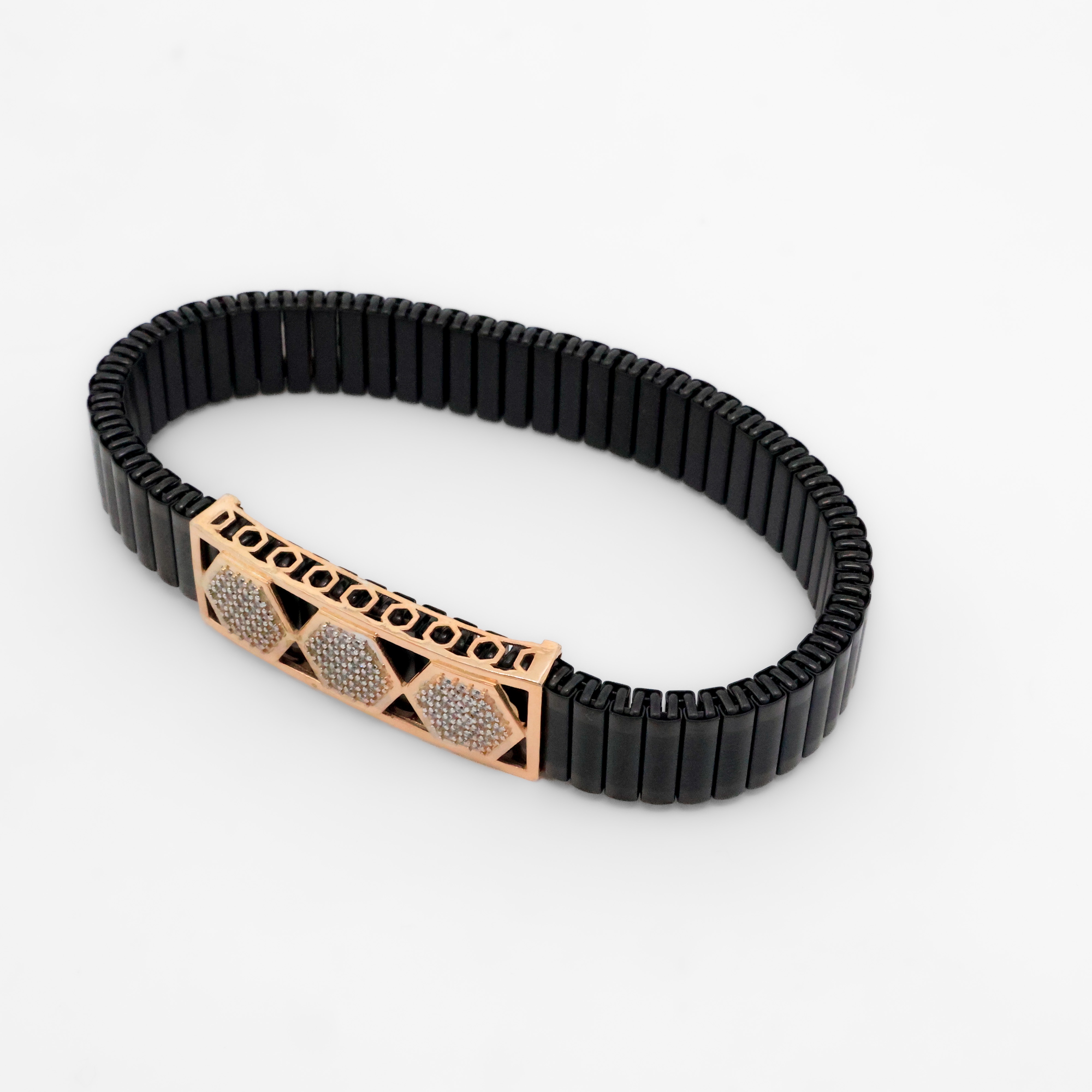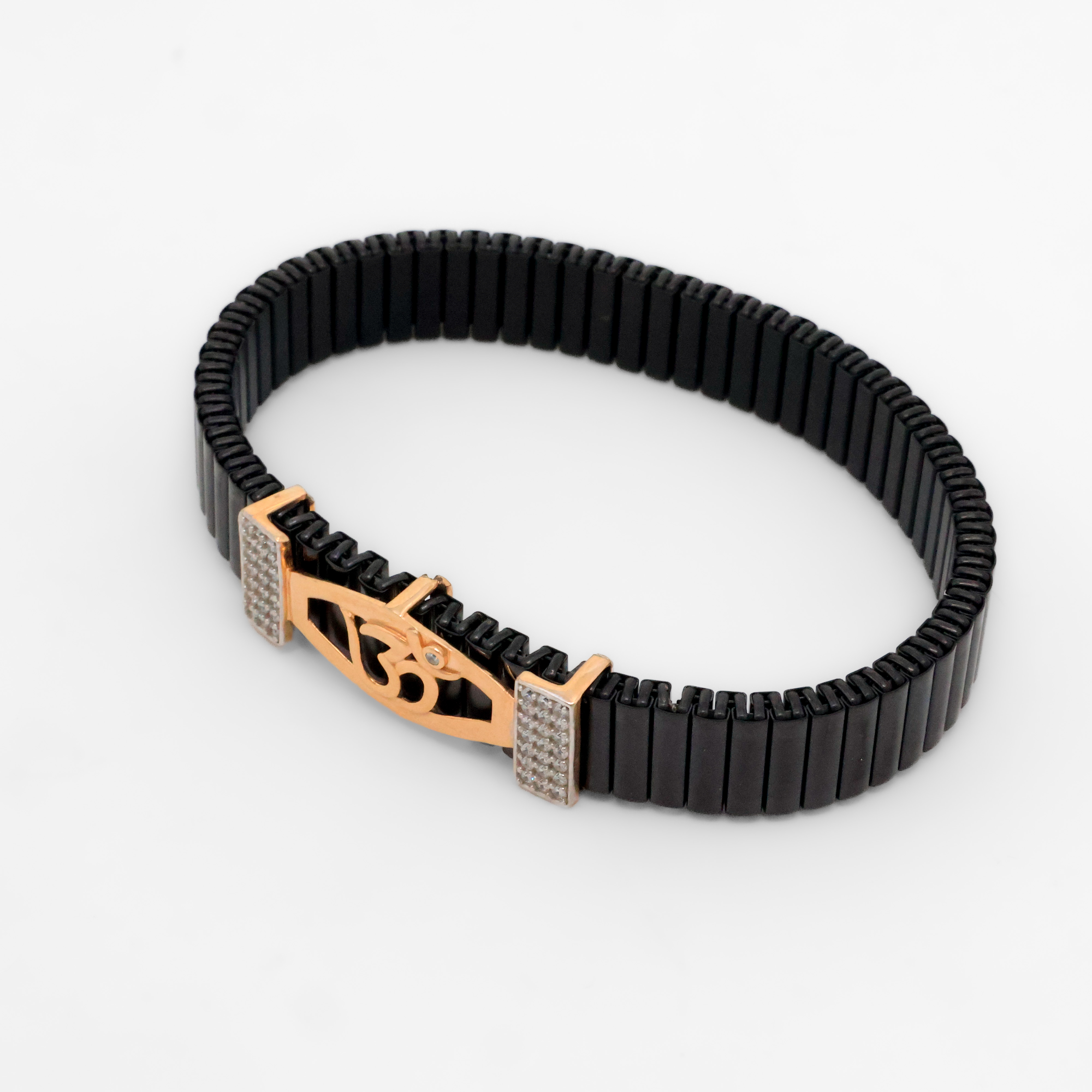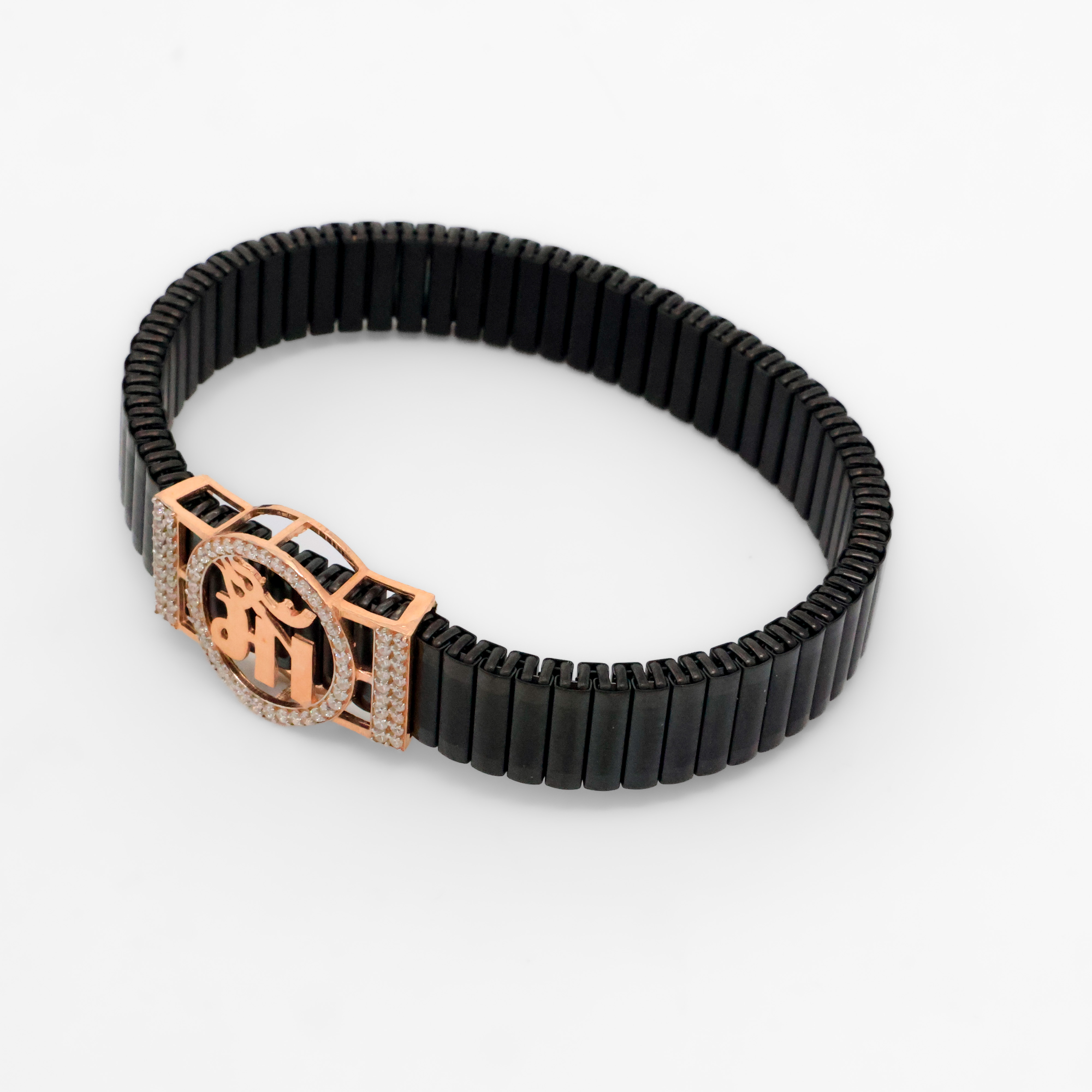 Stylish black link bracelet with rose gold accent, perfect for everyday wear and special occasions. Buy black link bracelet from Arham Silver Palace in Hyderabad.