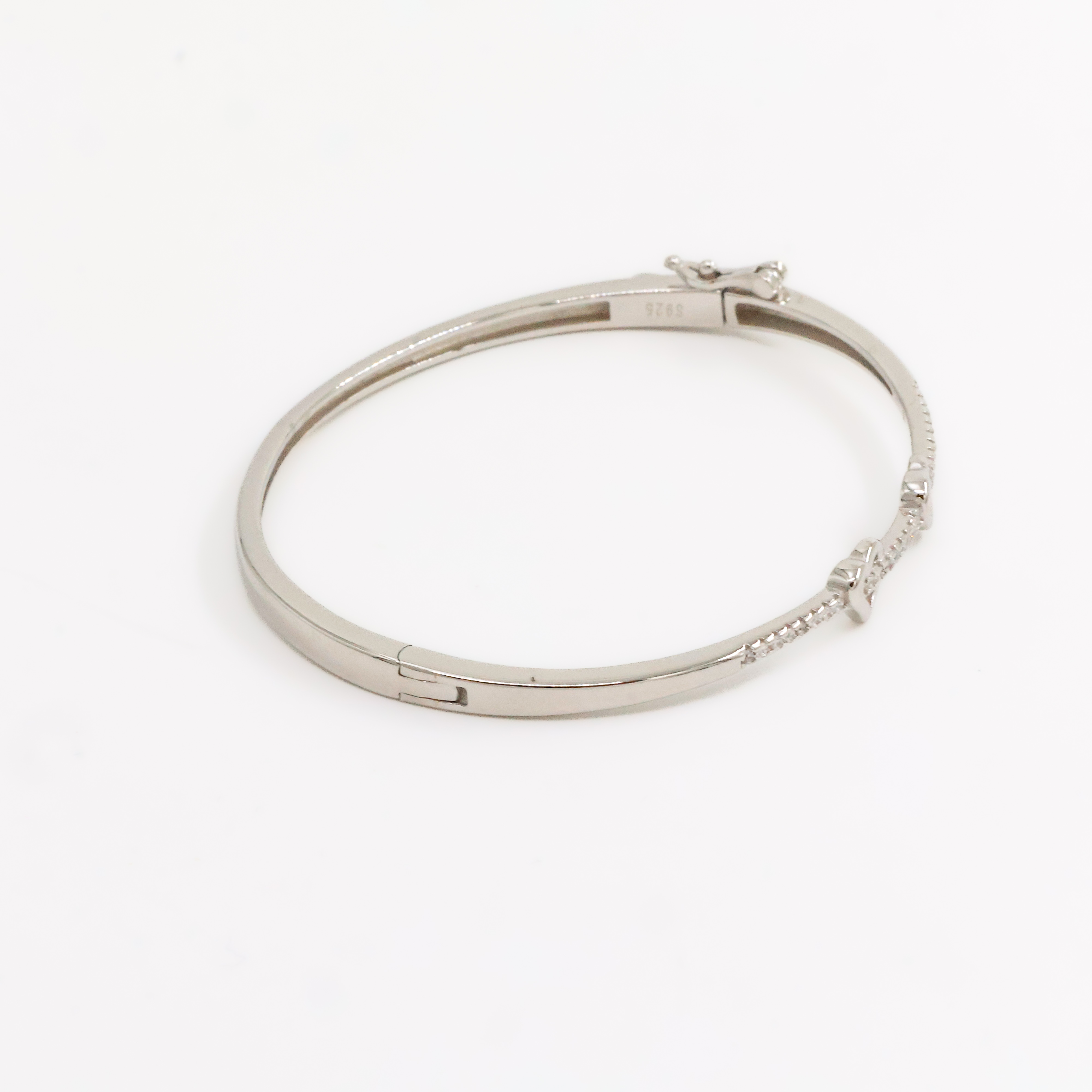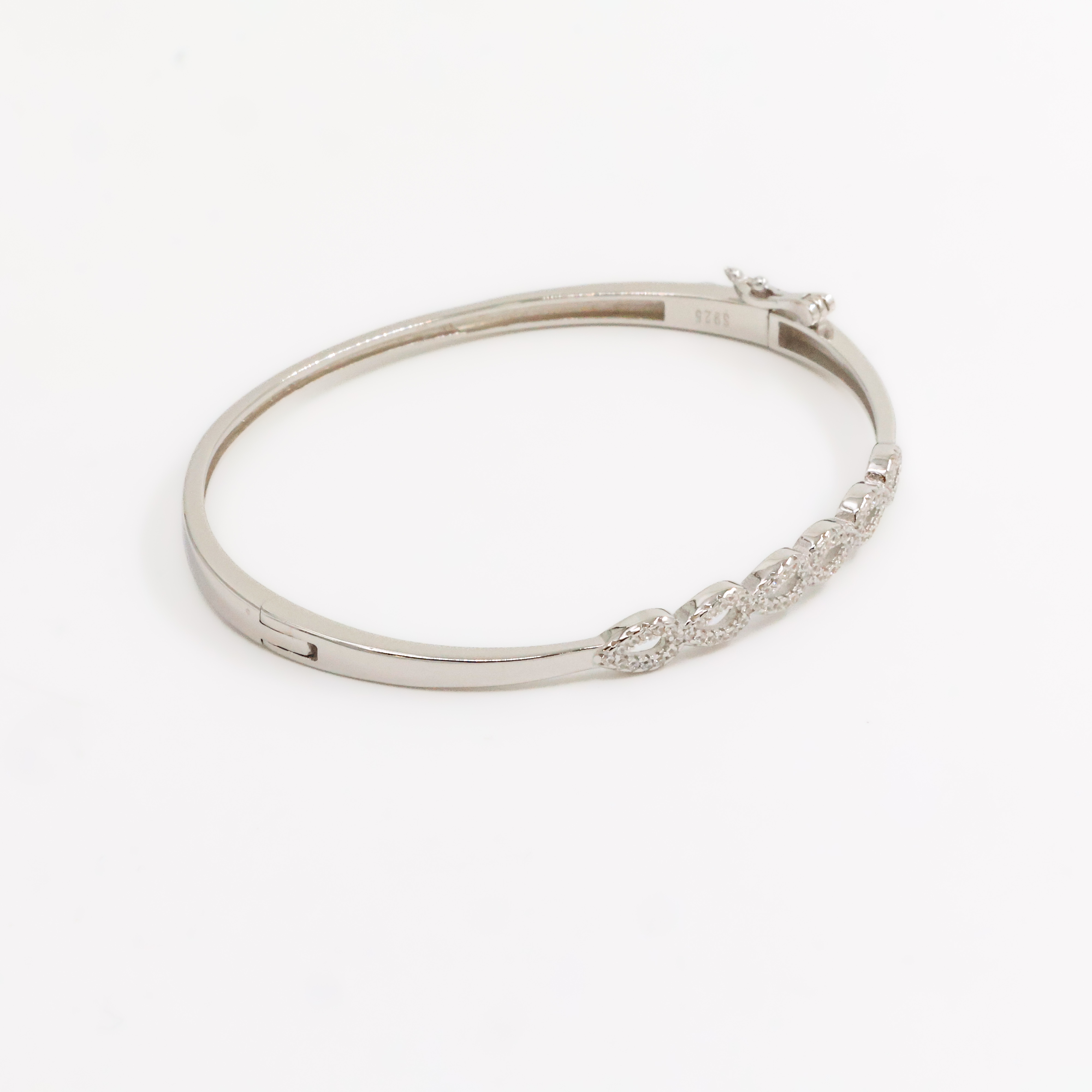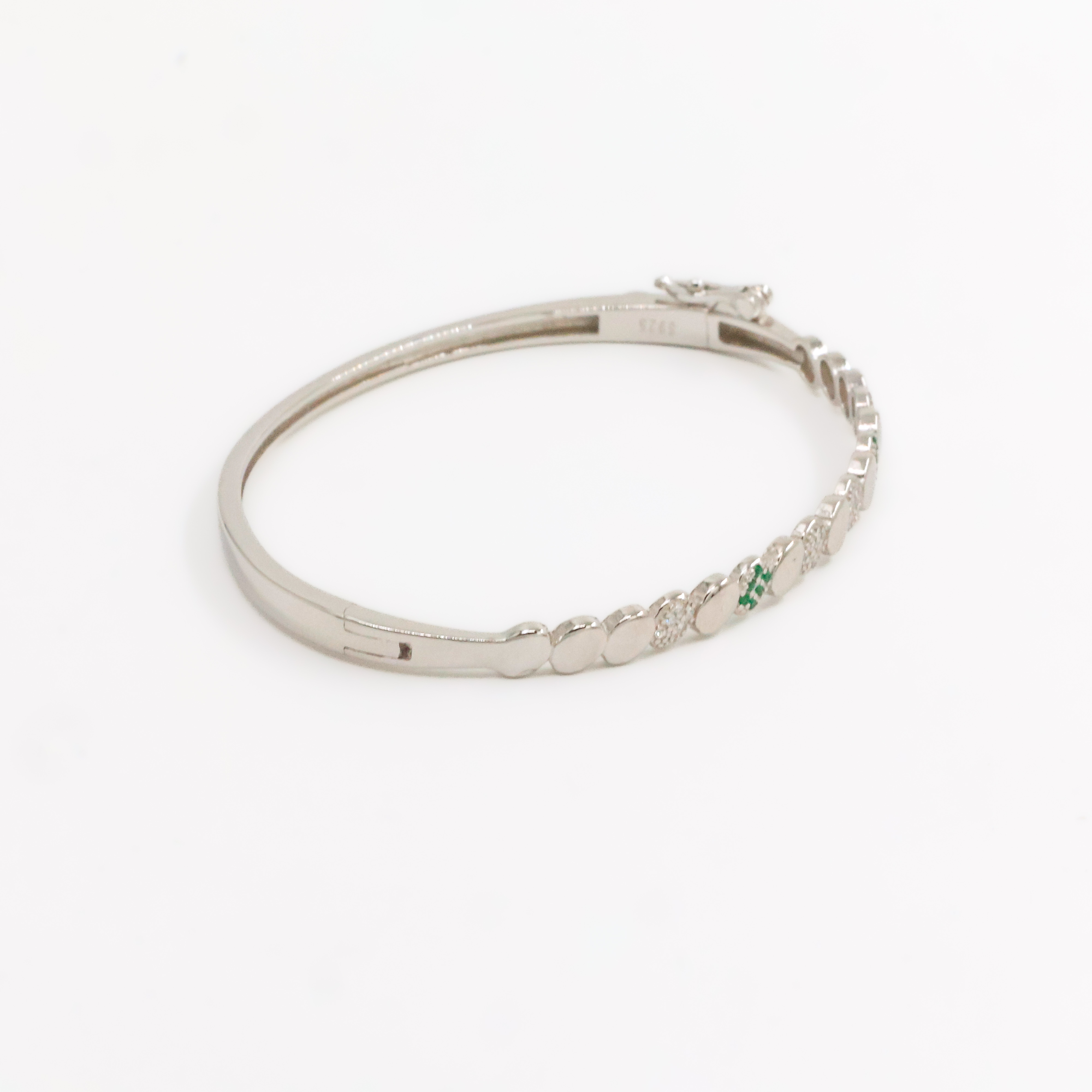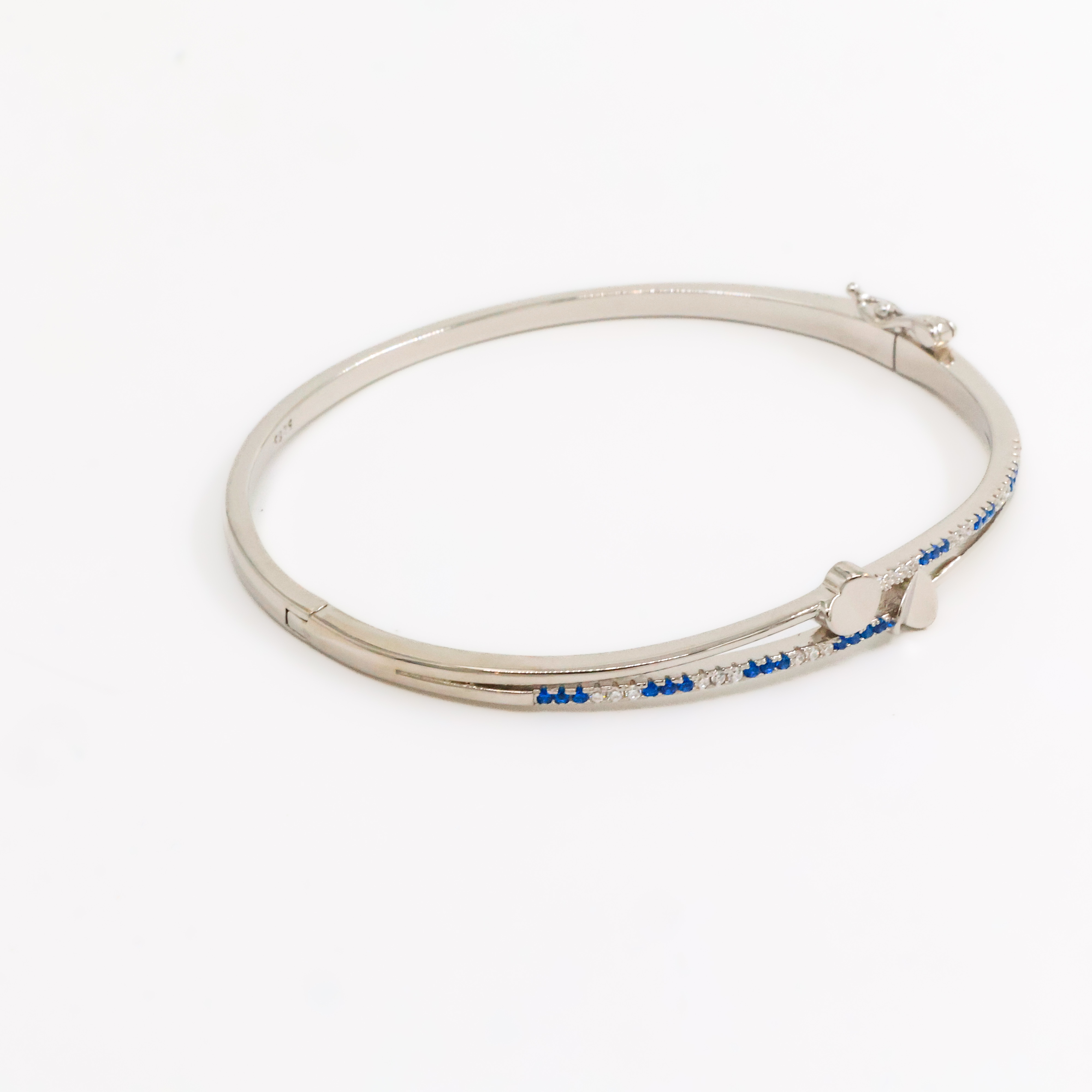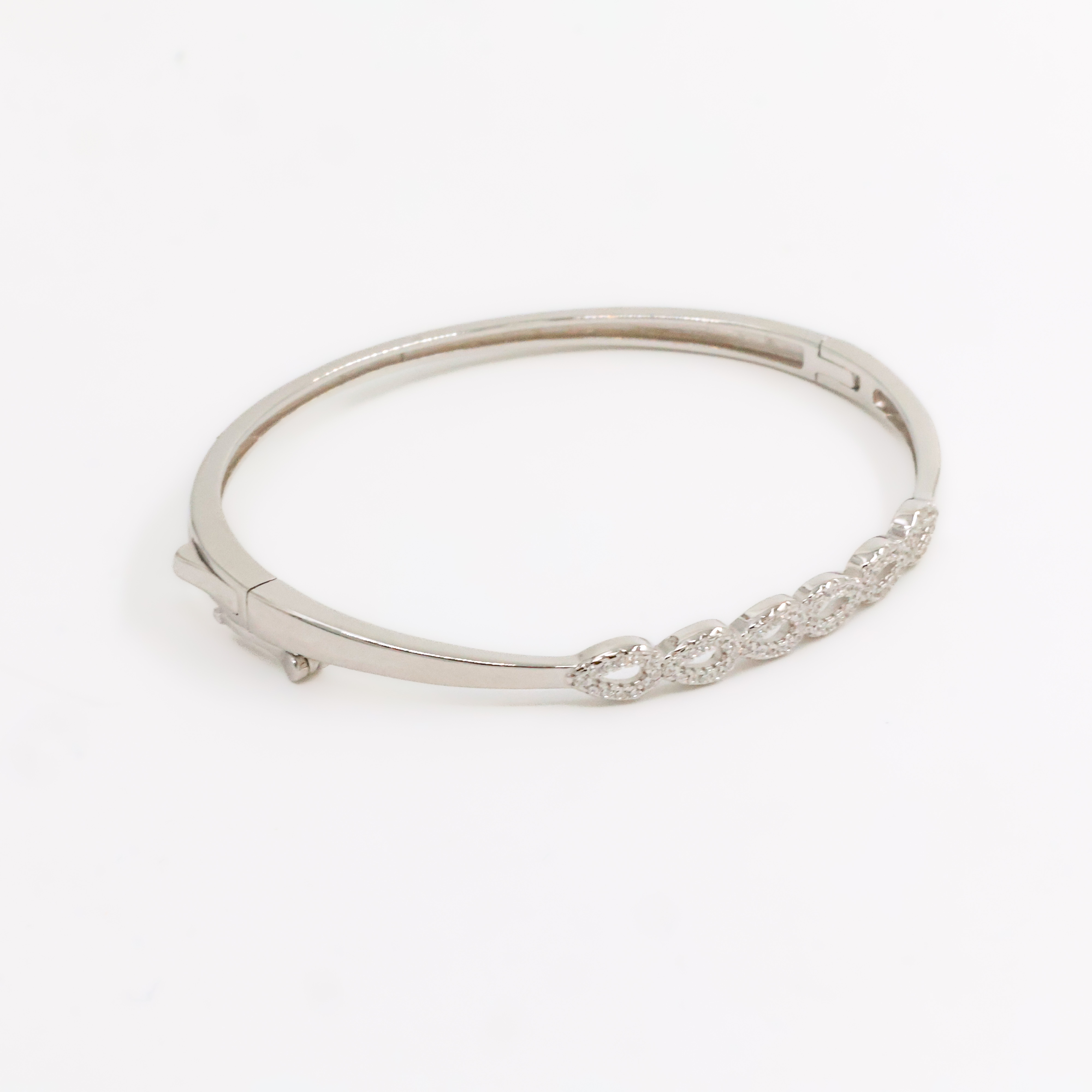 Elegant silver bangle bracelet with crystal accents, perfect for parties and special occasions. Buy silver bangle bracelet from Arham Gold in Hyderabad.