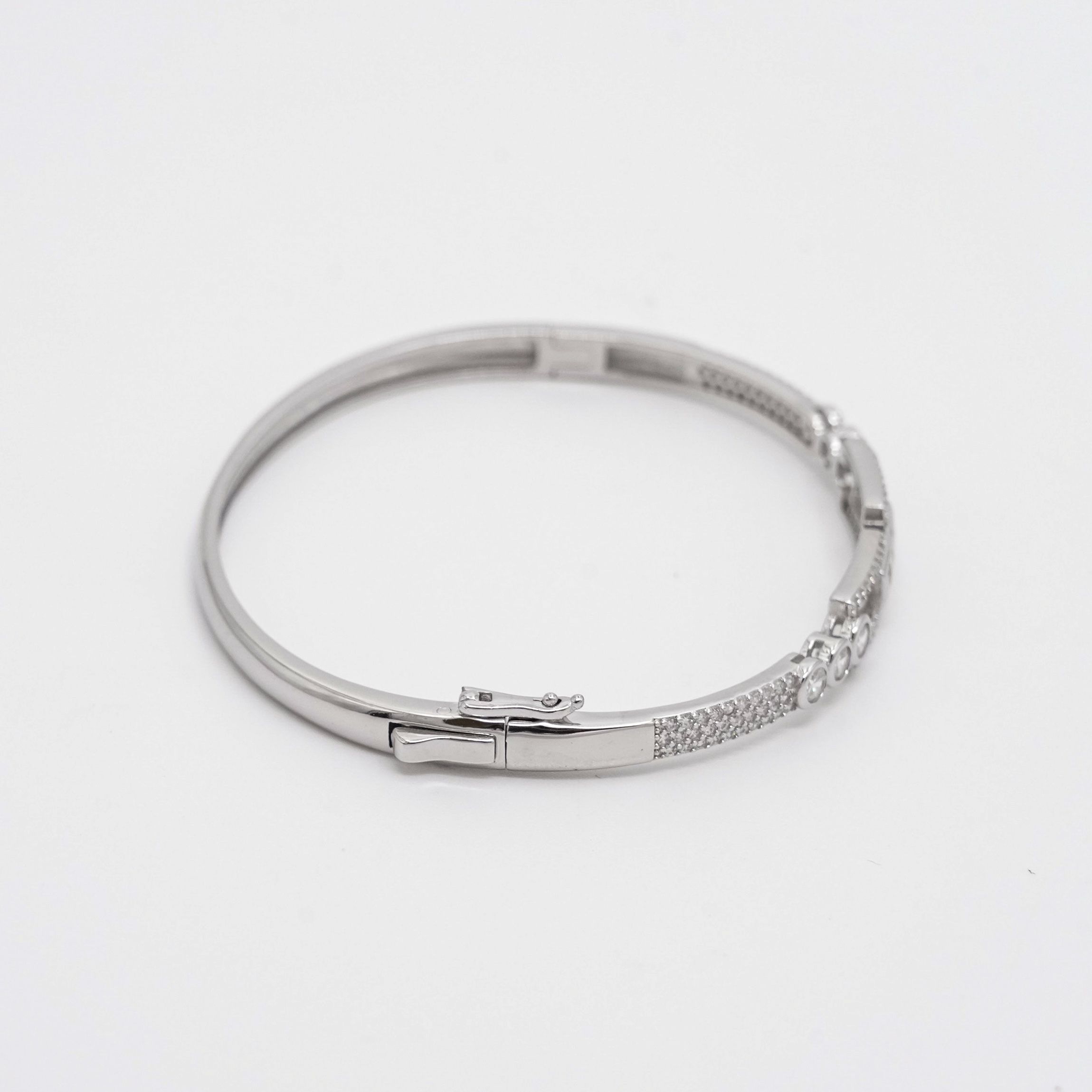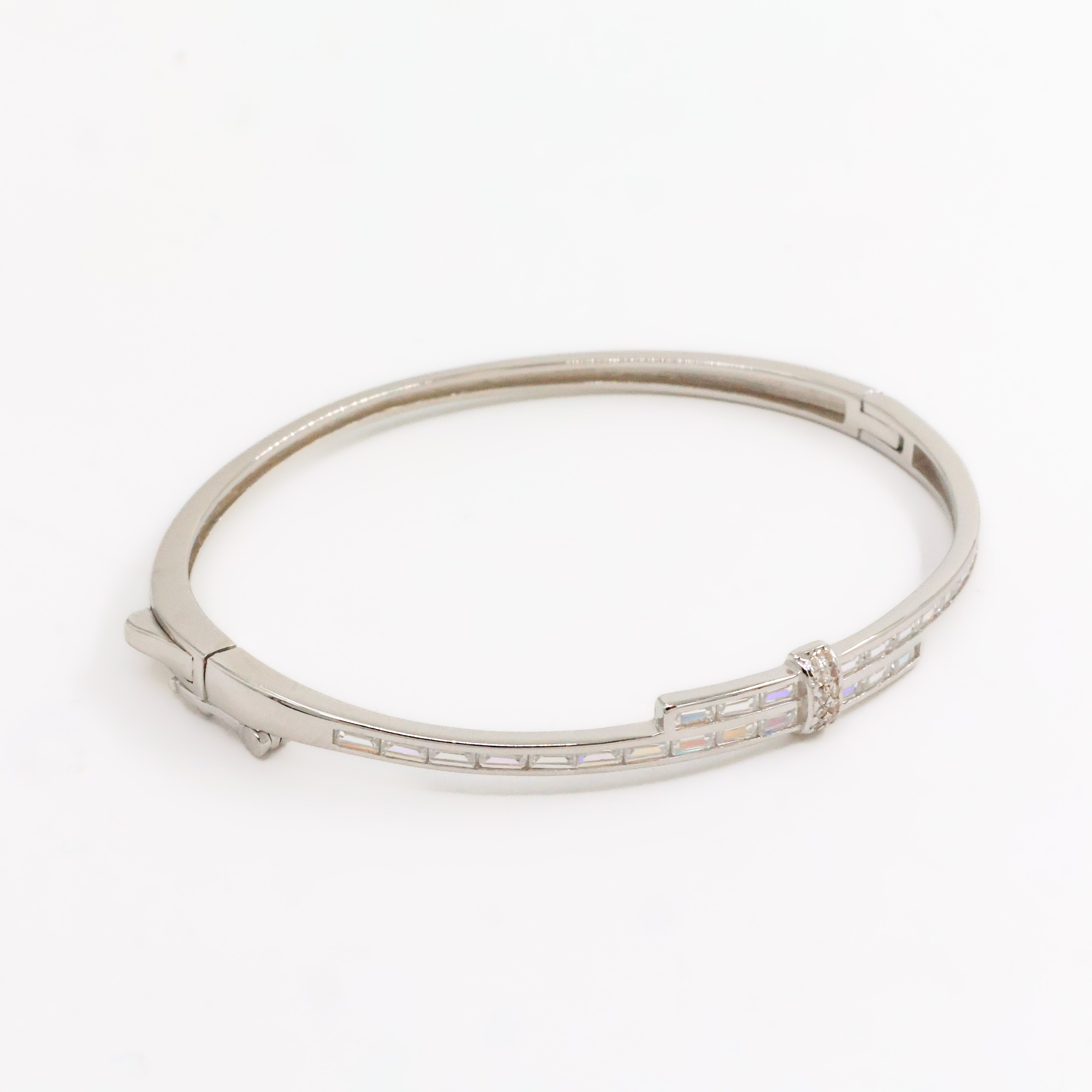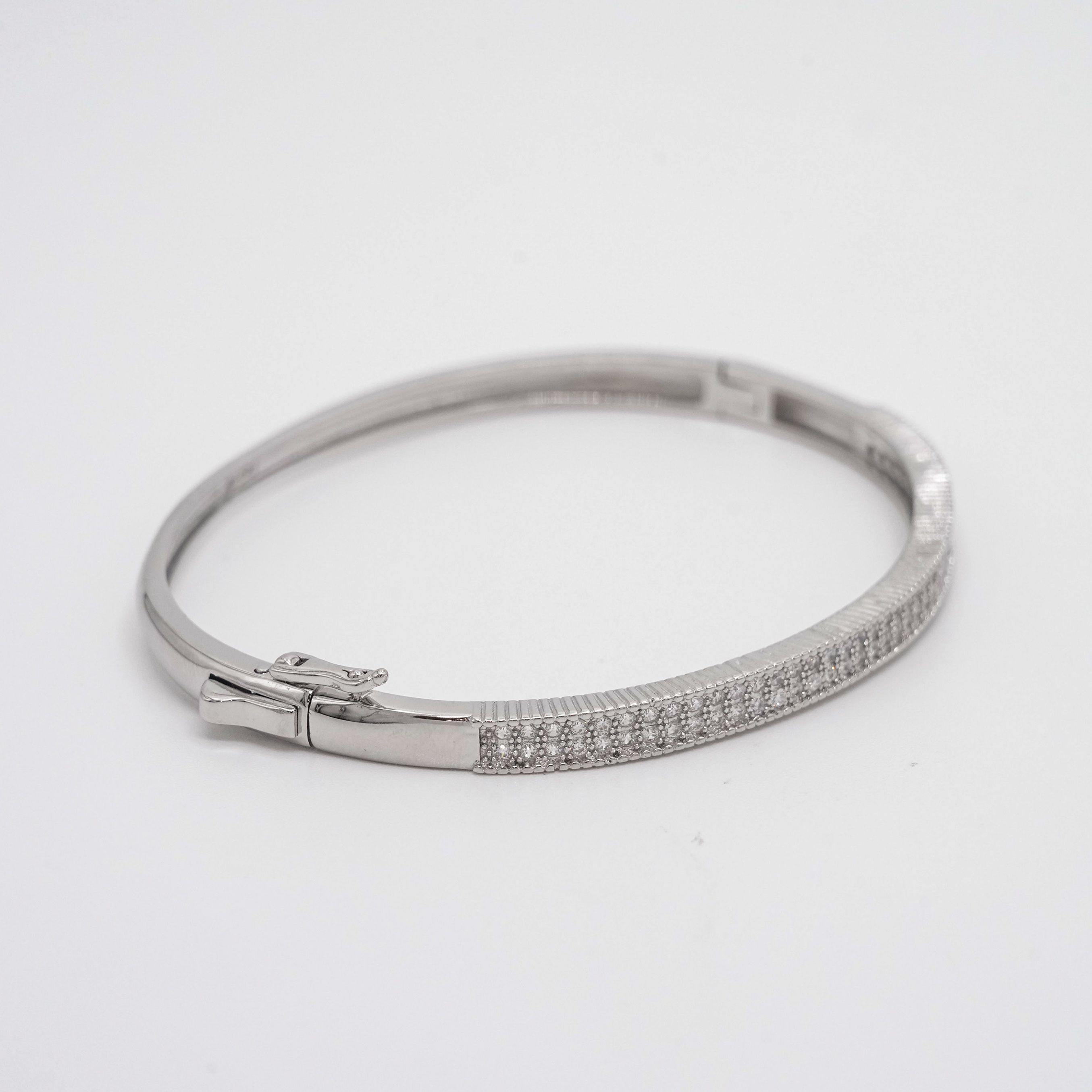 Elegant silver bangle bracelet featuring sparkling stones, perfect for special occasions and everyday wear. Buy silver bangle bracelet from Arham Gold in Hyderabad.