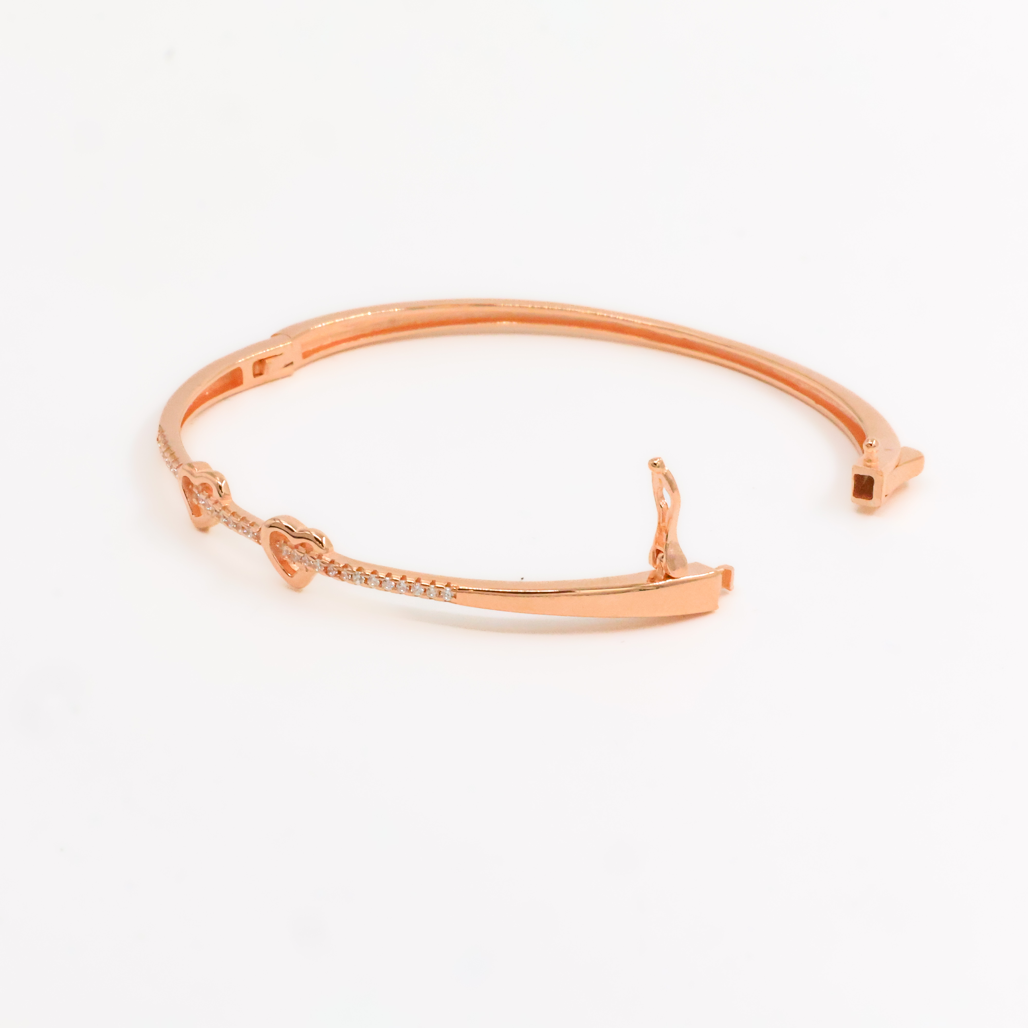 Elegant rose gold bracelet with heart accents, perfect for adding a touch of romance to any outfit. Buy rose gold bracelet from Arham Gold in Hyderabad.