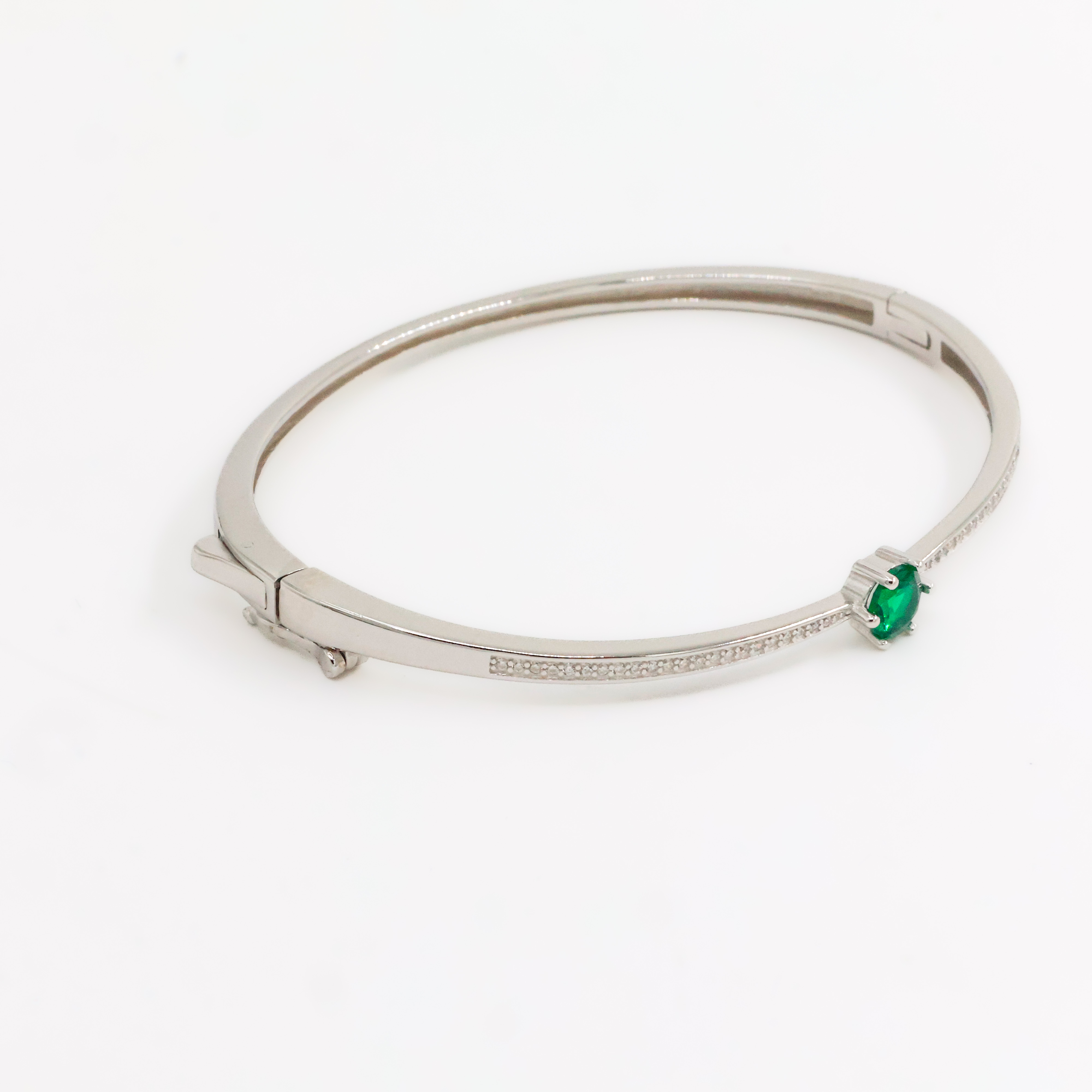 Elegant silver bracelet with emerald accents, a sophisticated accessory suitable for all occasions. Buy Silver Emerald Bracelet from Arham Gold in Hyderabad.