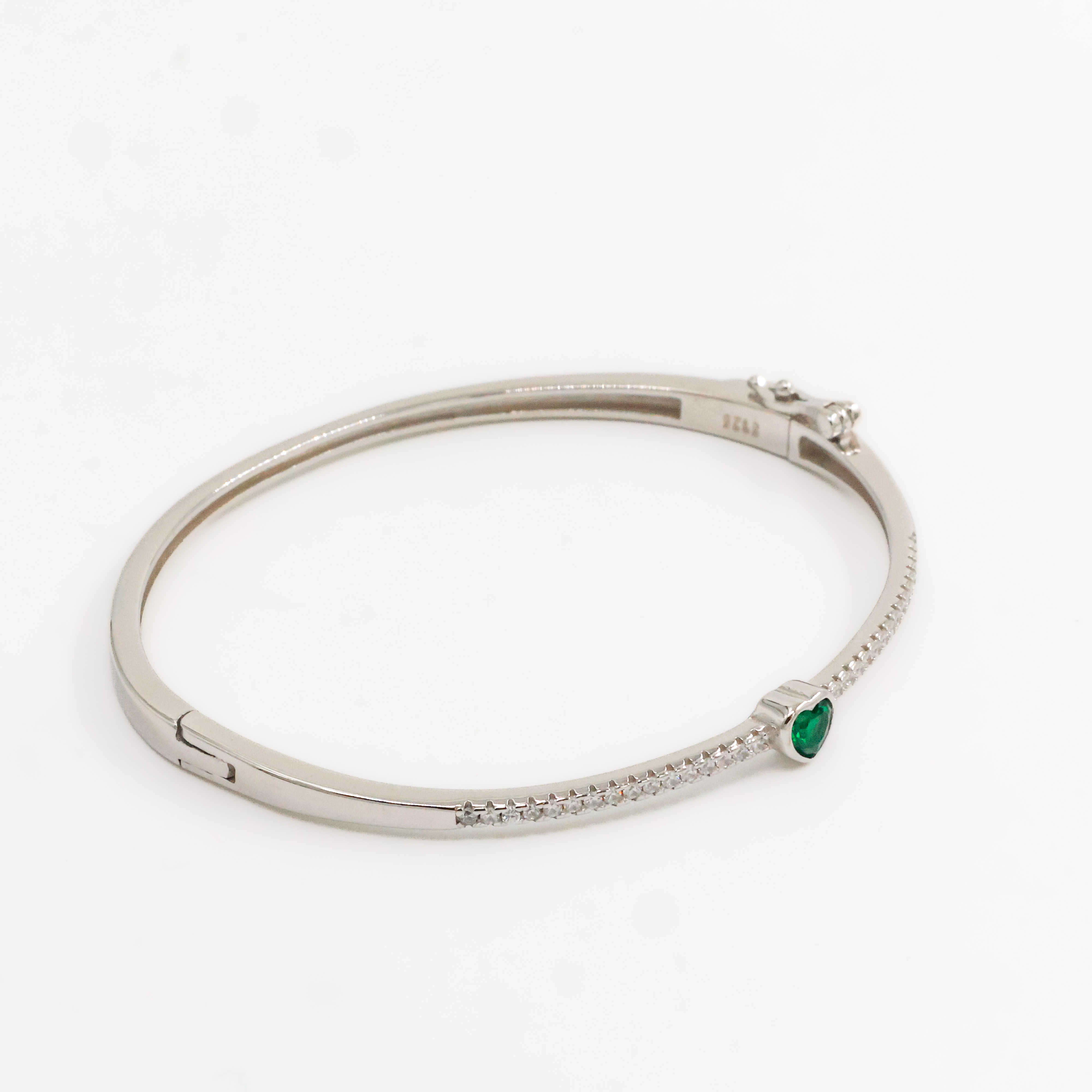 Elegant silver bracelet featuring a heart-shaped green stone, perfect for everyday wear or special occasions. Buy Silver Heart Bracelet from Arham Gold in Hyderabad.