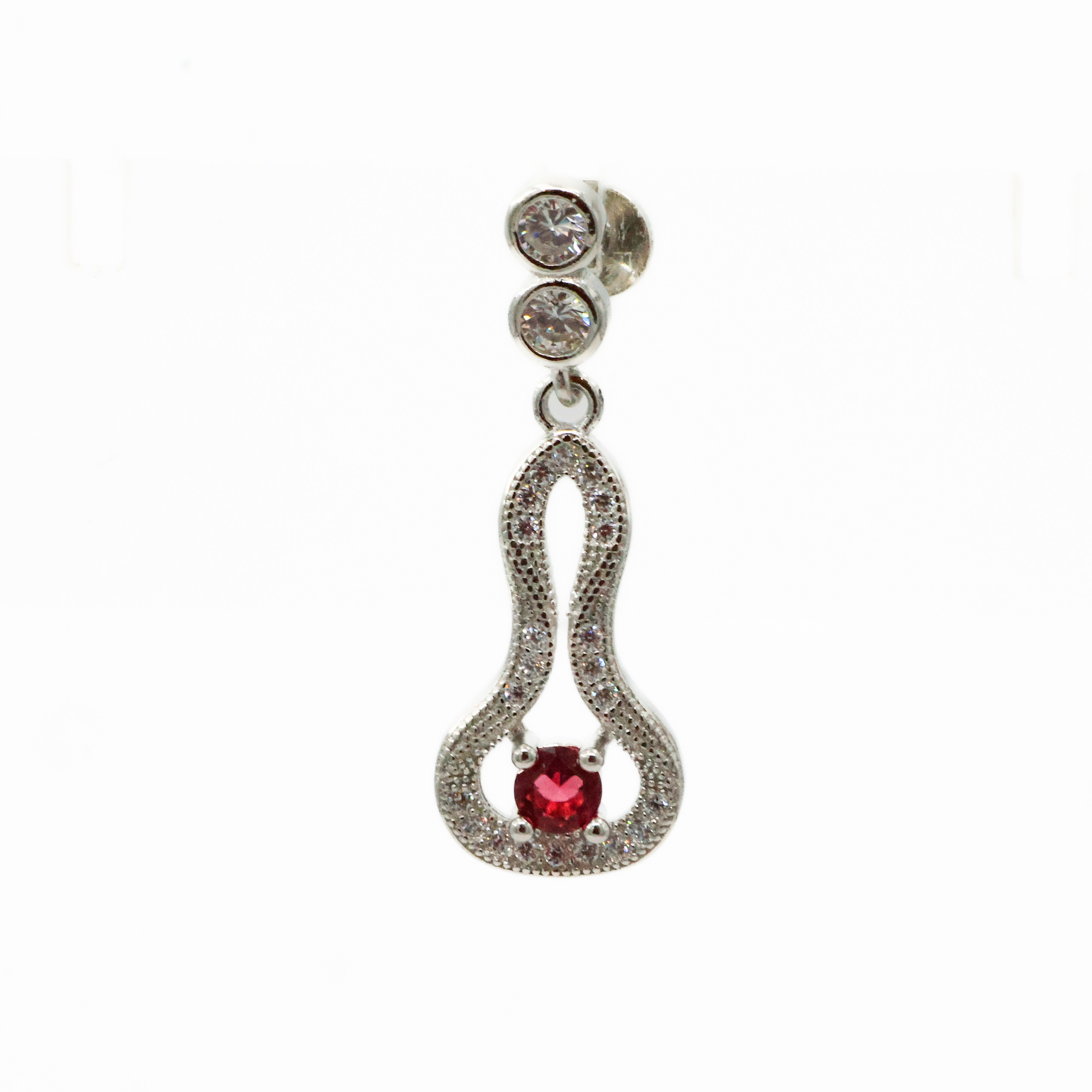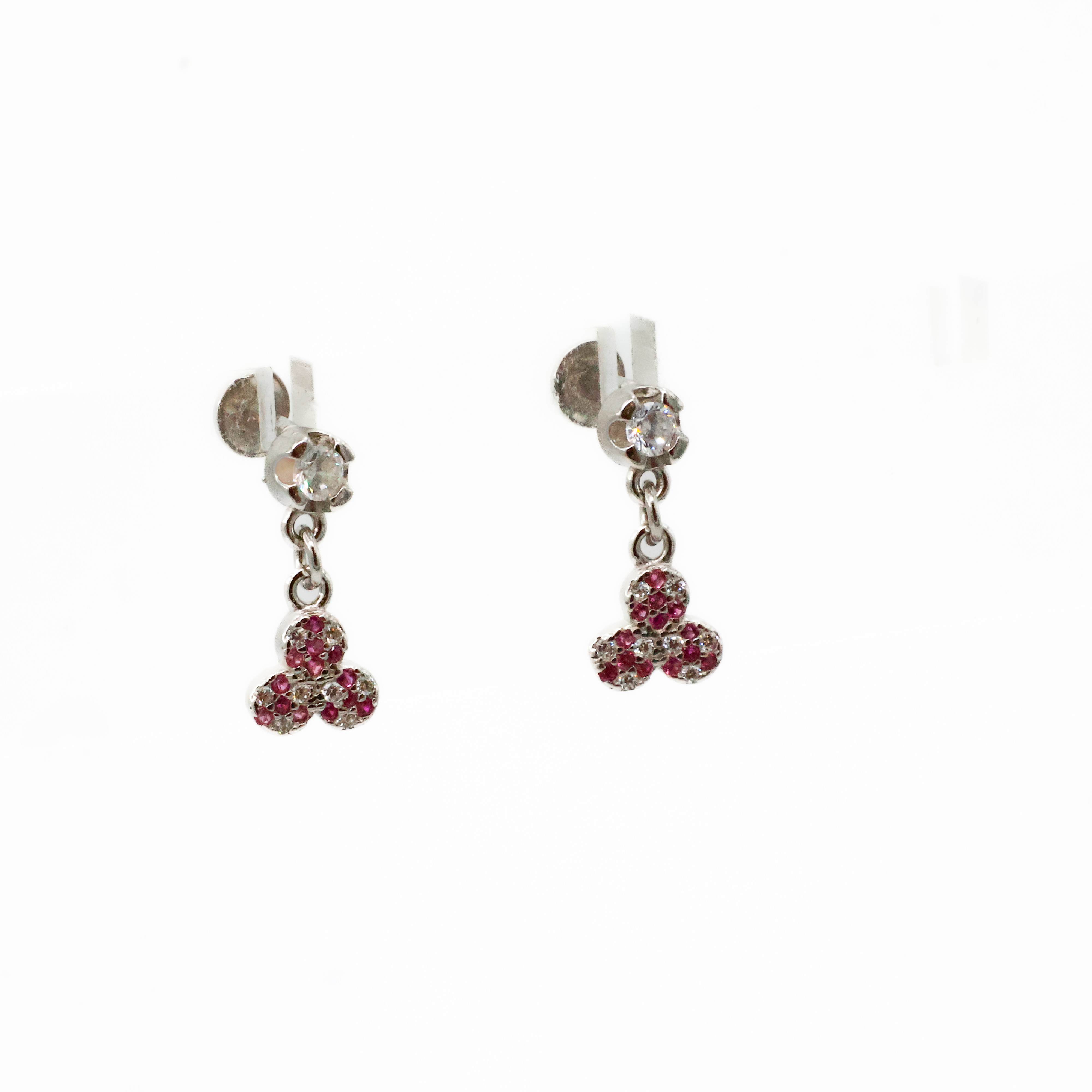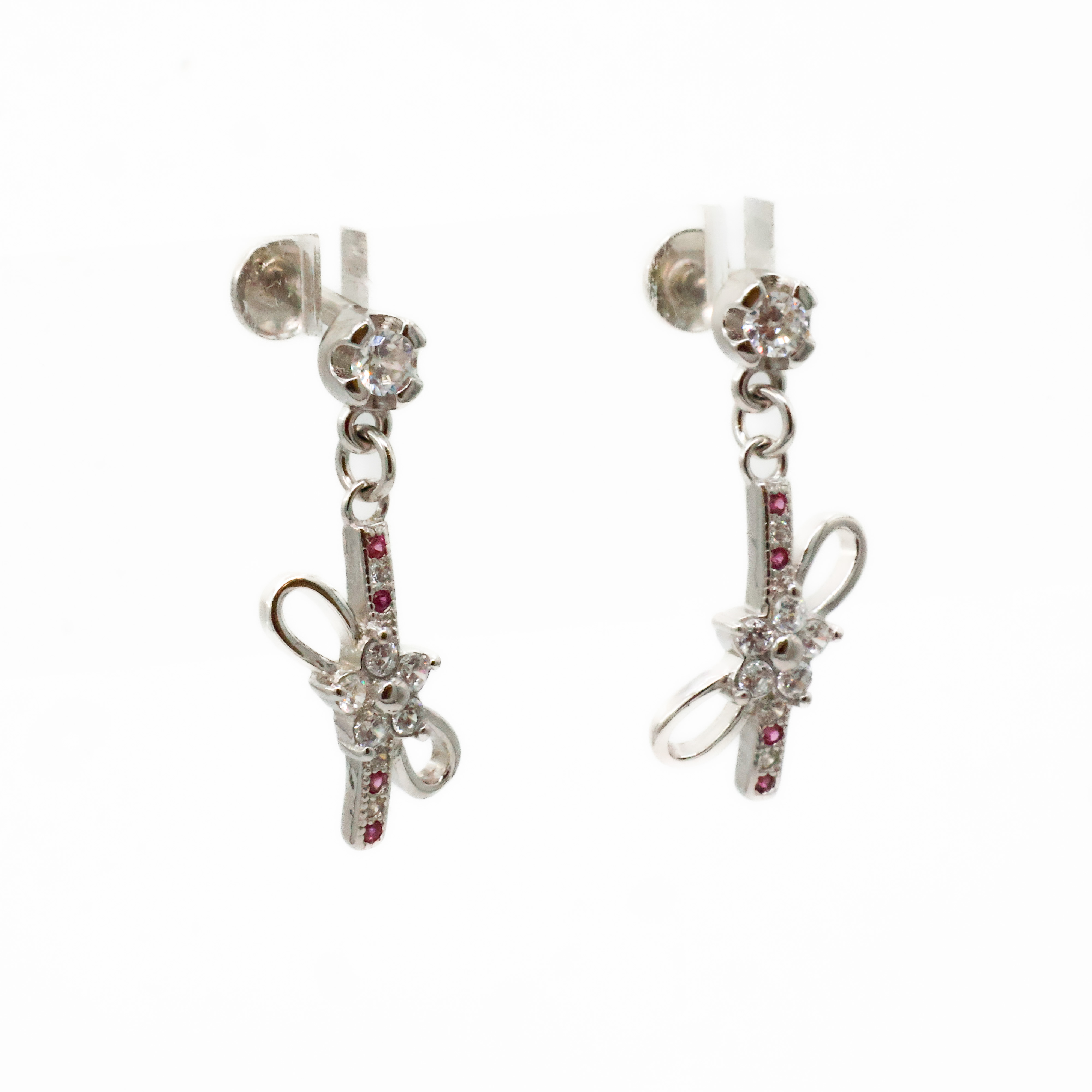Elegant silver Silver Drop Earrings with zircon stones and ruby center, perfect for parties and celebrations. Buy silver Silver Drop Earrings from Arham Gold in Hyderabad.