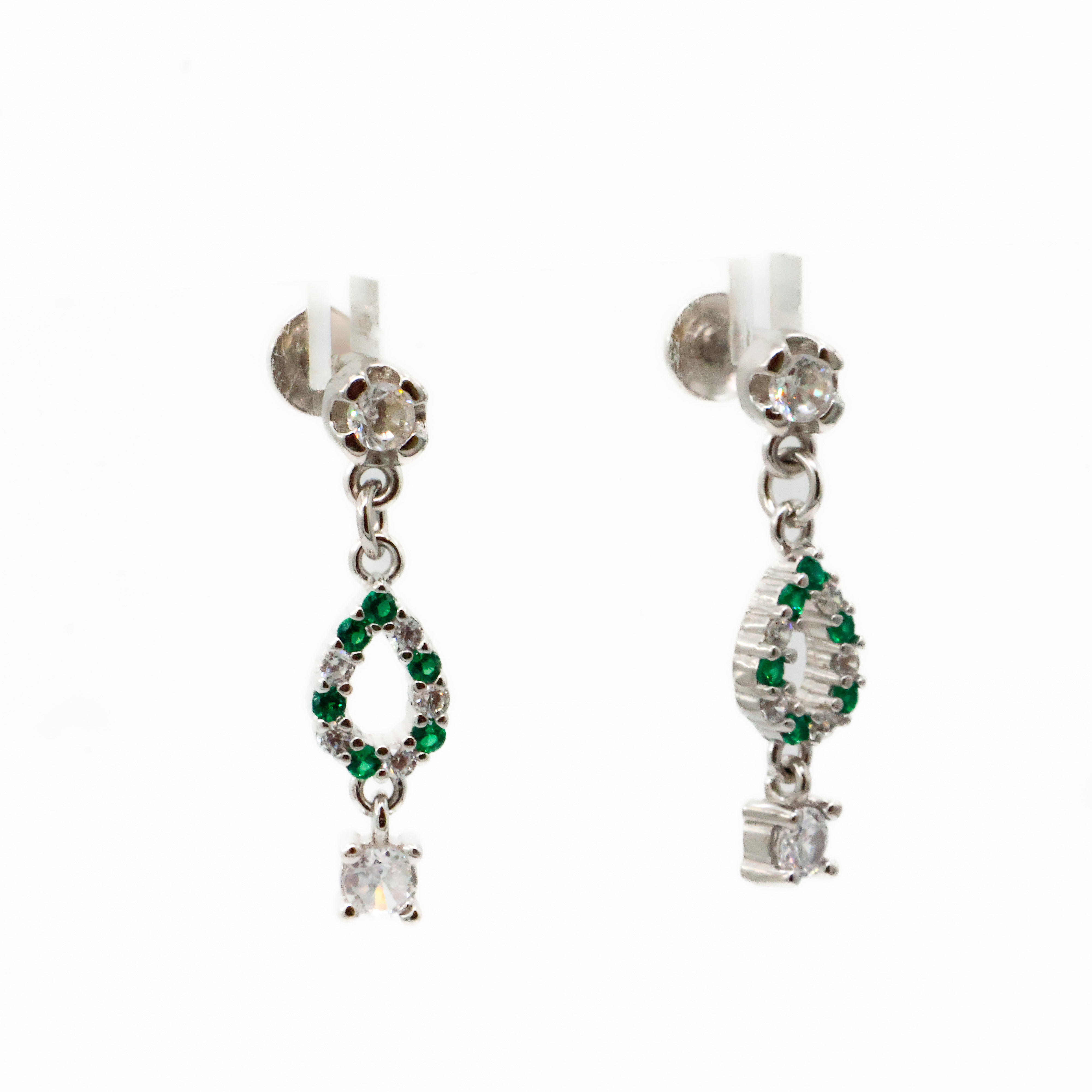 Elegant silver Silver Drop Earrings with green stones, perfect for parties and special occasions. Buy silver Silver Drop Earrings from Arham Gold in Hyderabad.