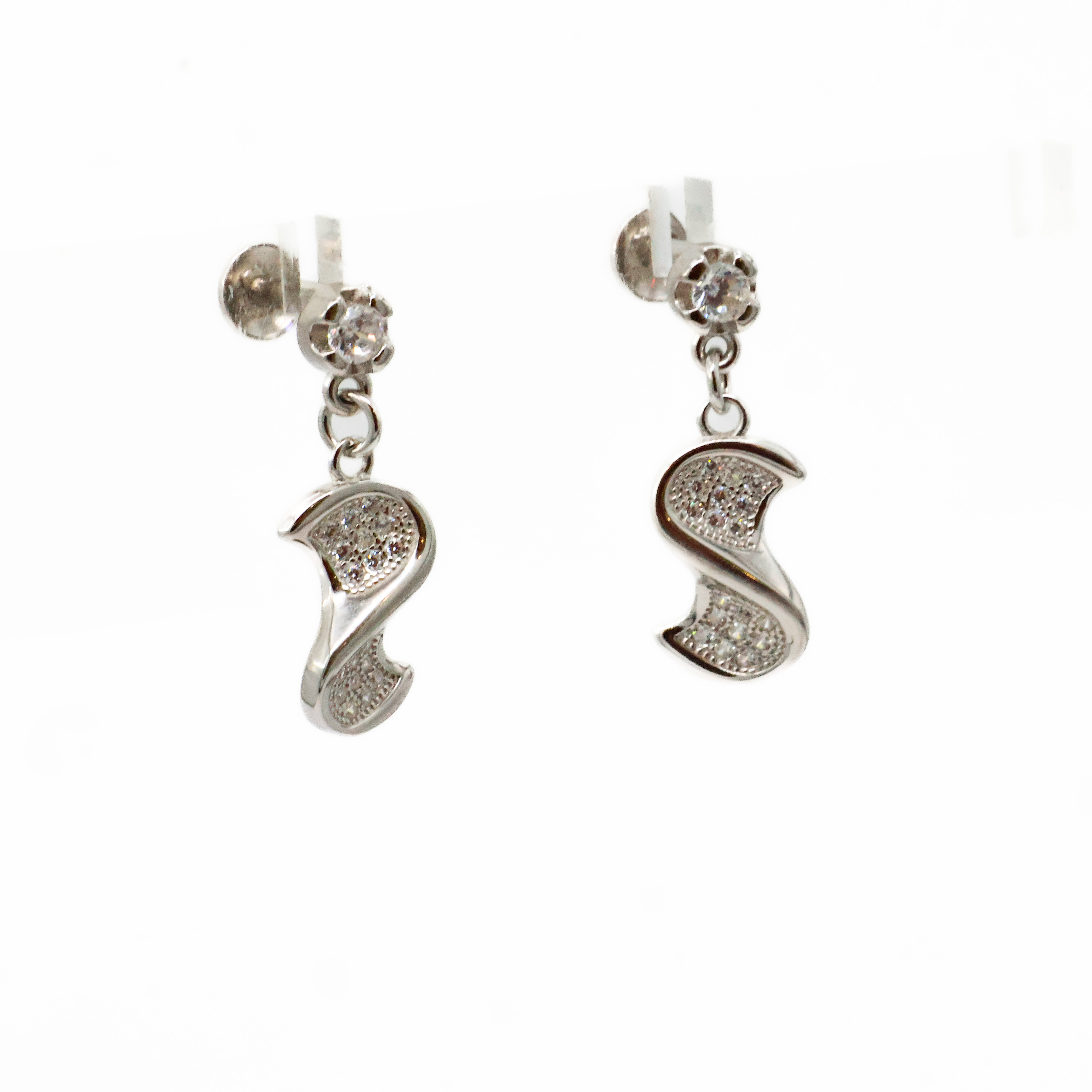 Elegant silver Silver Drop Earrings with cubic zirconia stones, ideal for everyday wear and special occasions. Buy silver Silver Drop Earrings from Arham Gold in Hyderabad.
