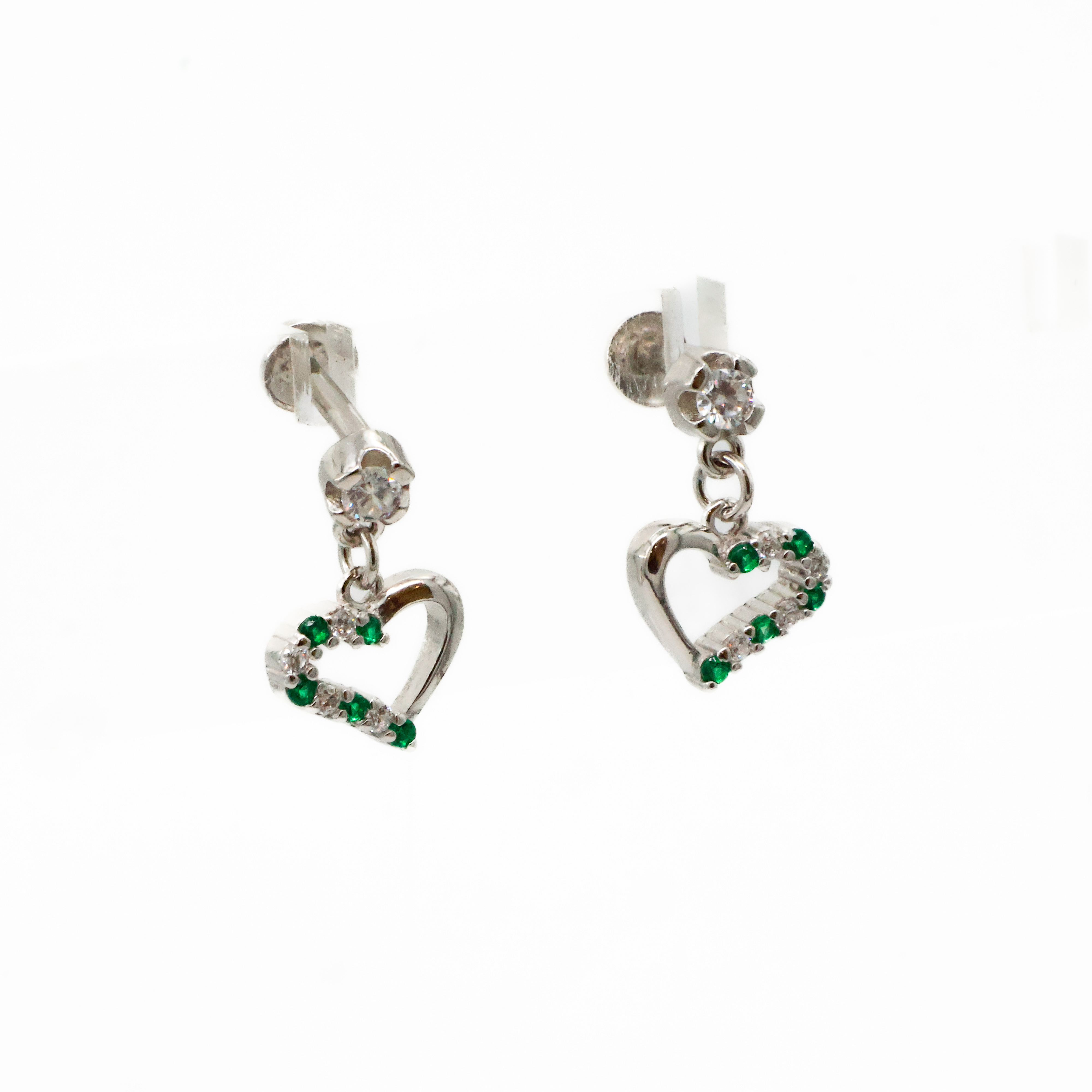 Elegant silver heart earrings with clover accent, perfect for everyday wear and special occasions. Buy silver heart earrings from Arham Gold in Hyderabad.