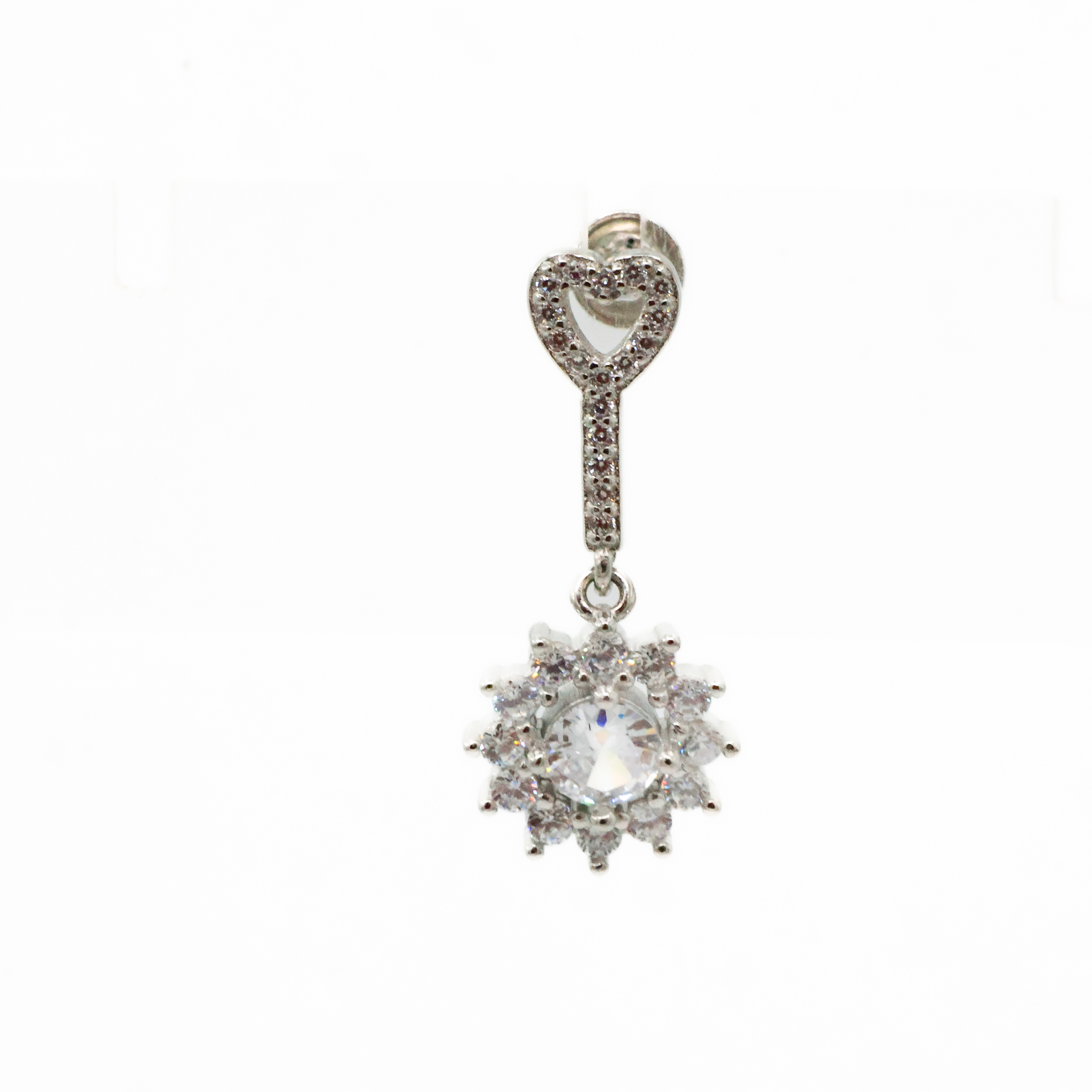 Elegant silver Silver Drop Earrings with cubic zirconia stones and floral design, perfect for parties. Buy silver Silver Drop Earrings from Arham Gold in Hyderabad.