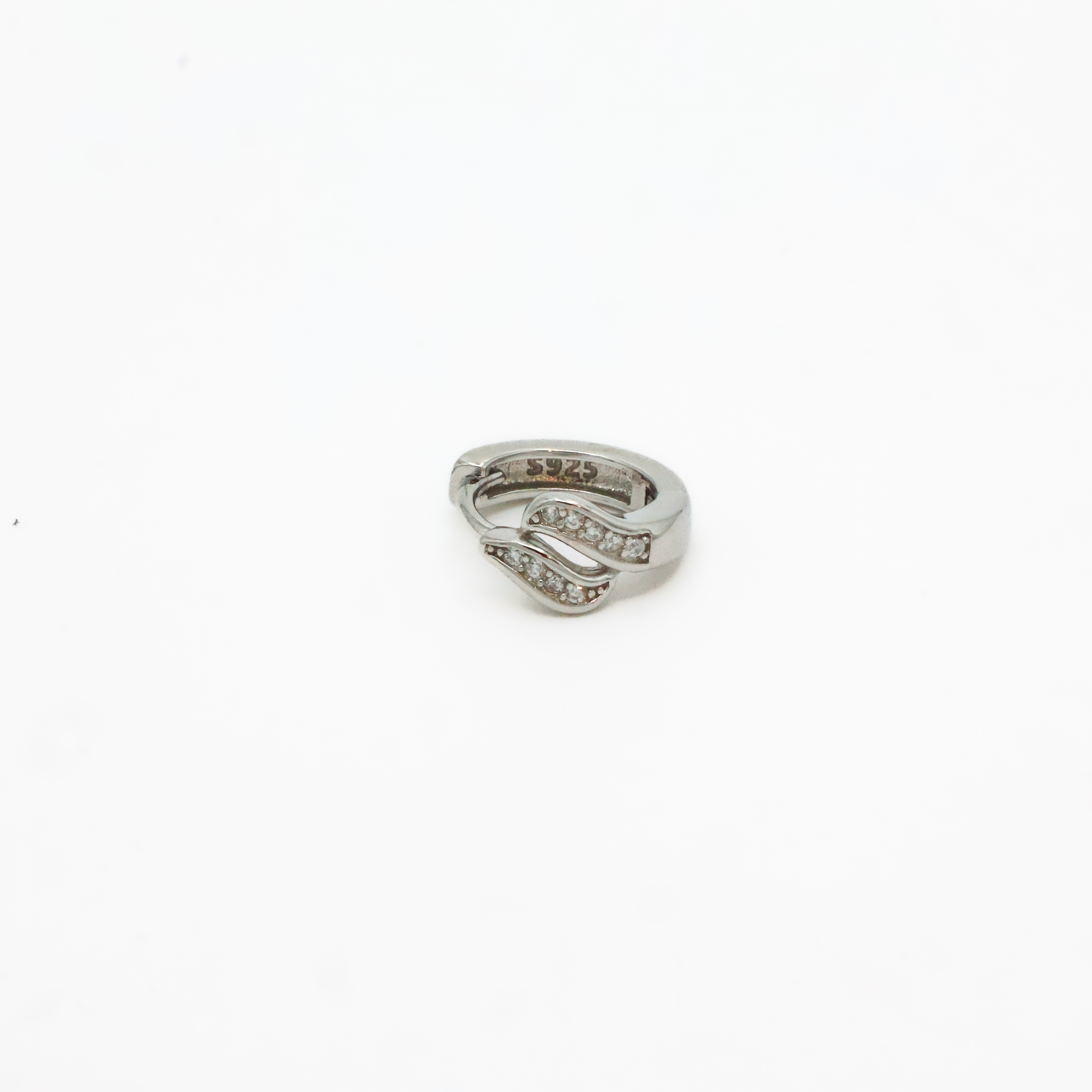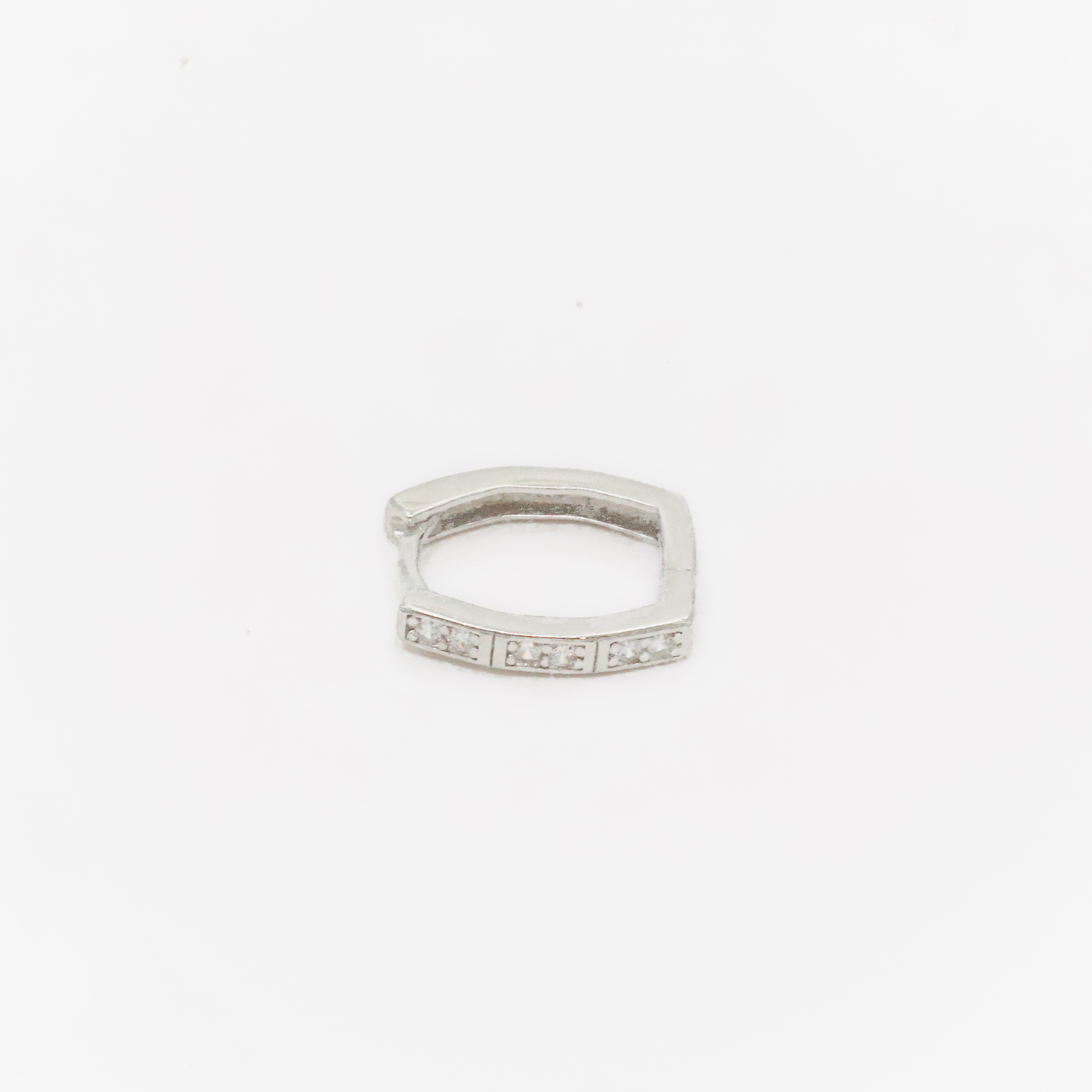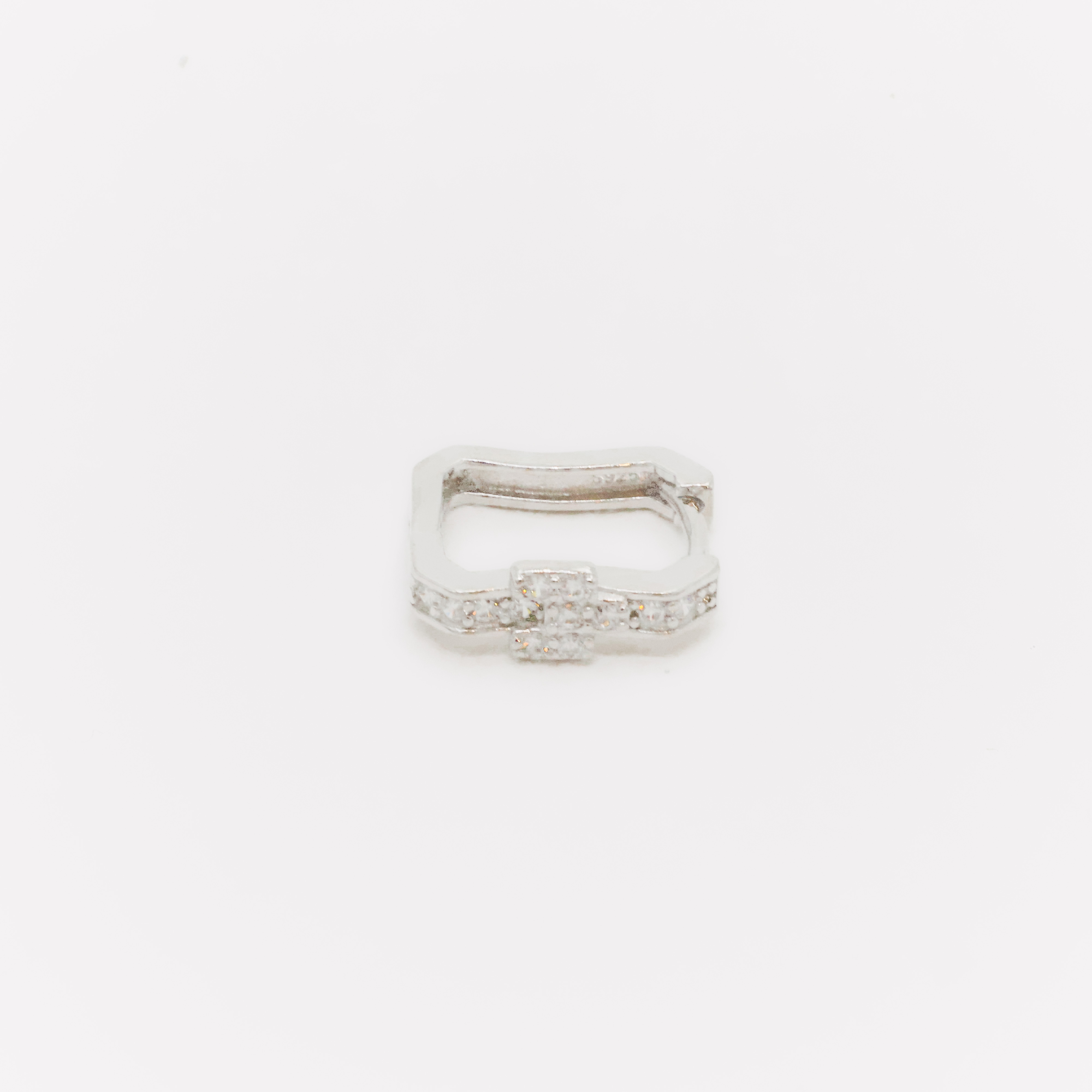 Sparkling silver huggie earrings with cubic zirconia stones, perfect for everyday wear and special occasions. Buy silver huggie earrings from Arham Gold in Hyderabad.