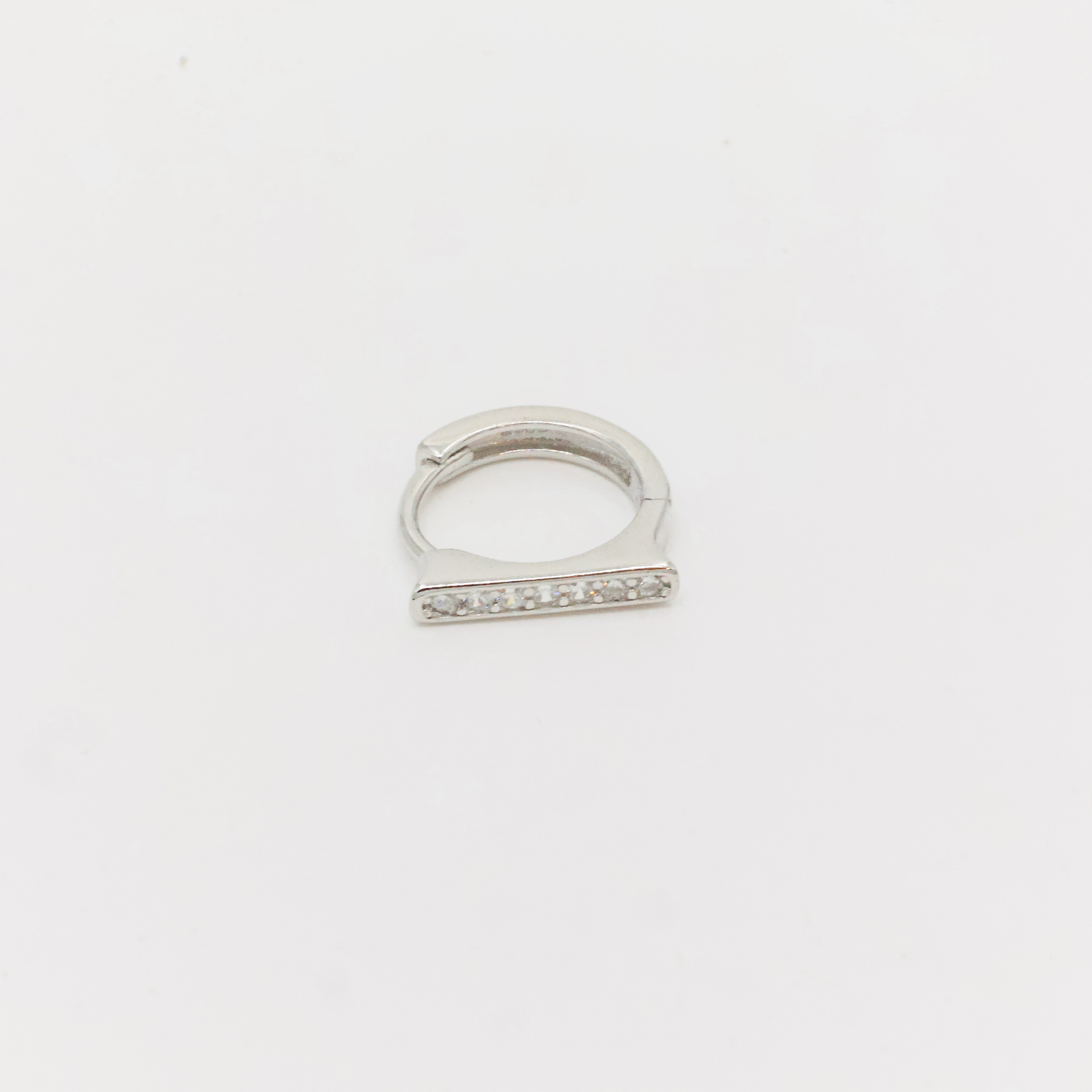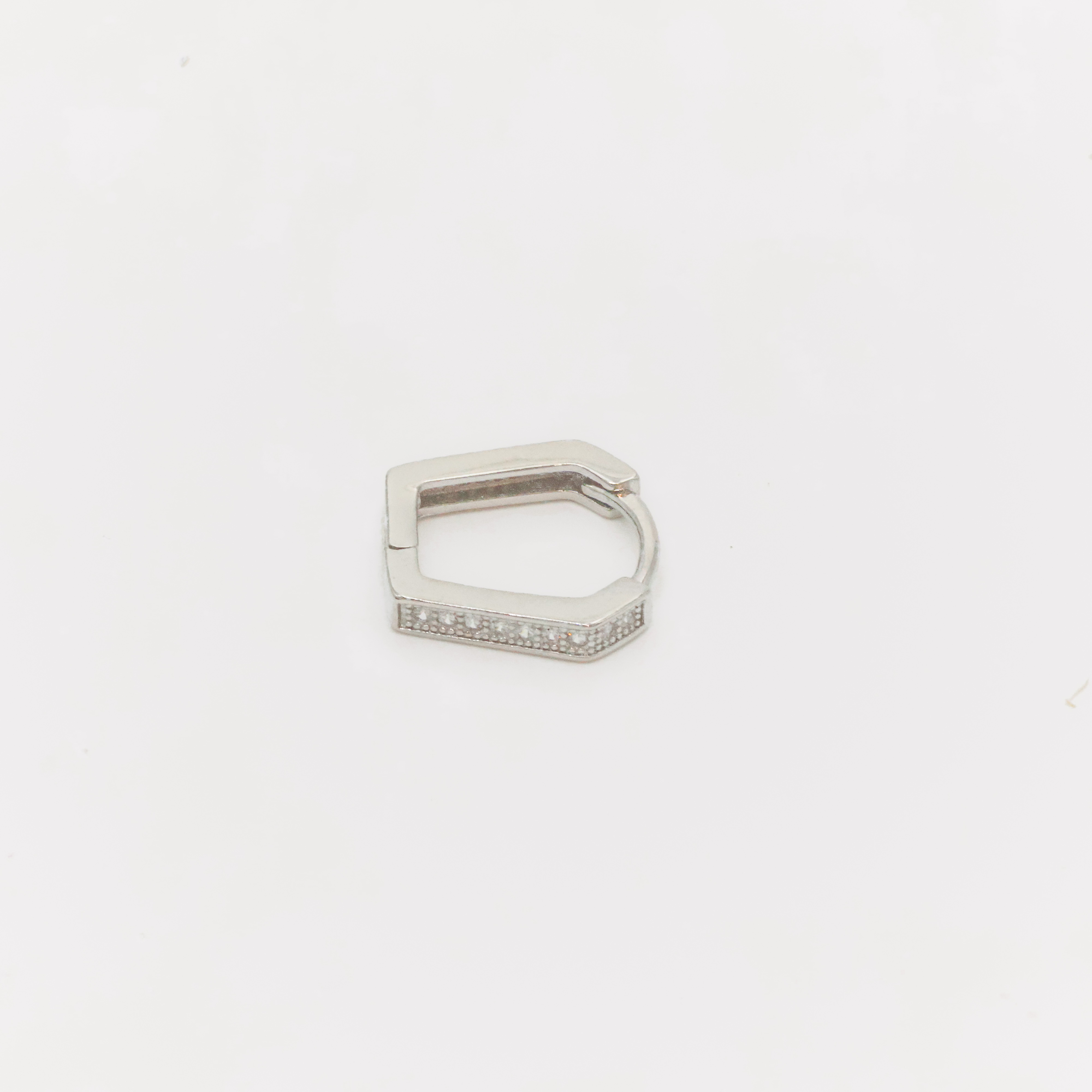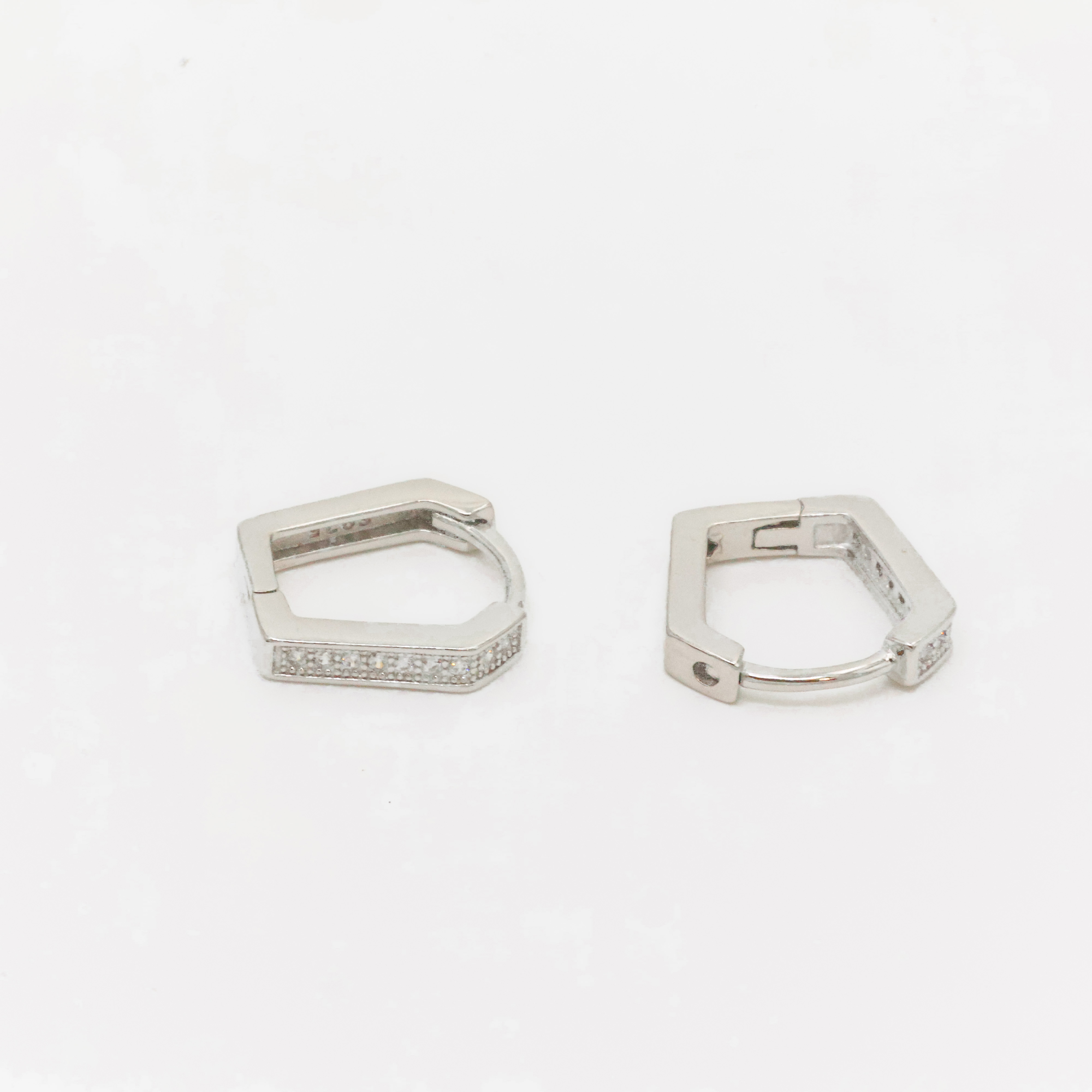 Sparkling silver huggie earrings with cubic zirconia stones, perfect for everyday wear and special occasions. Buy silver huggie earrings from Arham Gold in Hyderabad.