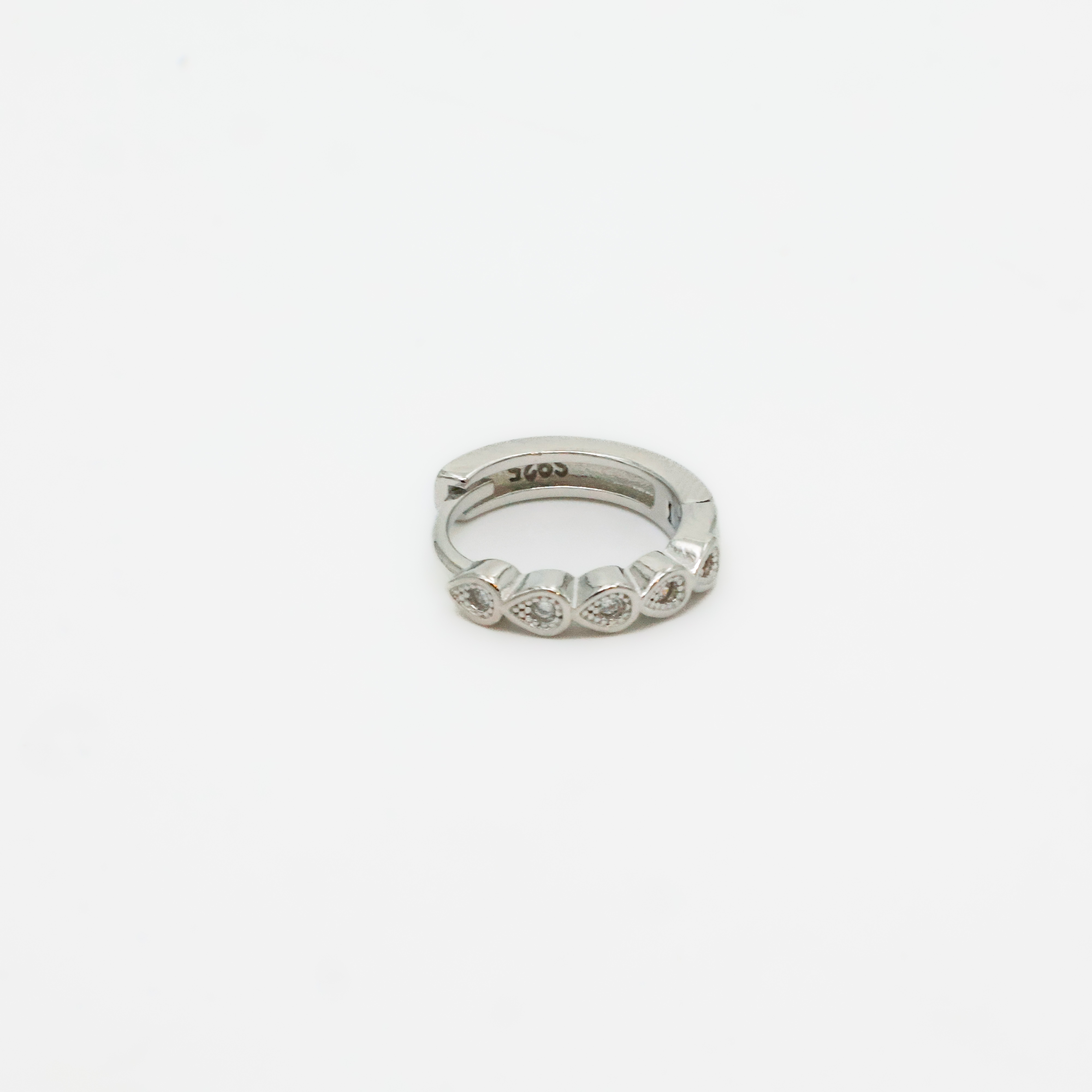 Elegant silver hoop earrings with cubic zirconia, perfect for everyday wear or special occasions. Buy silver hoop earrings from Arham Silver Palace in Hyderabad.