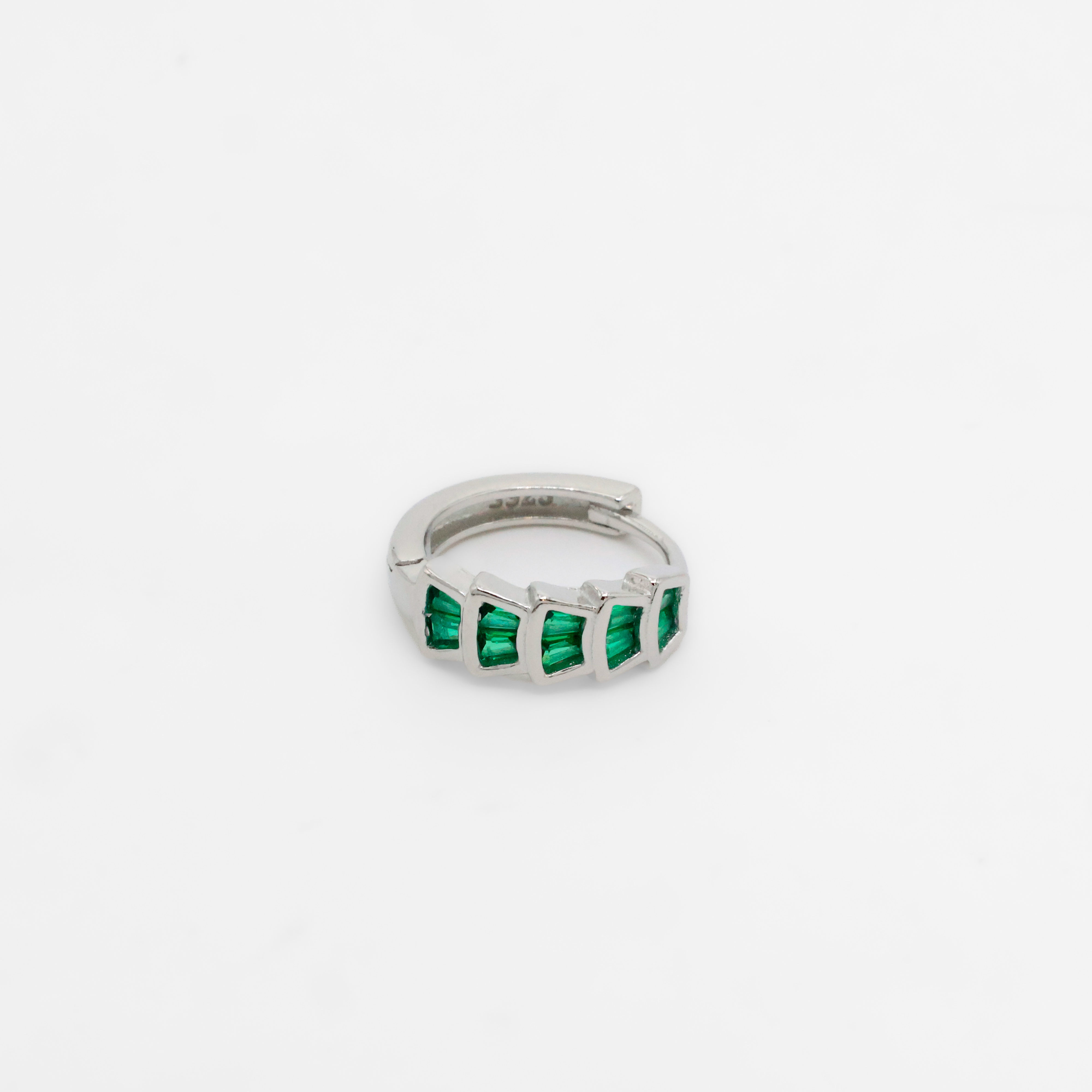Elegant silver hoop earrings adorned with green stones, perfect for daily wear and special occasions. Buy Silver Hoop Earrings from Arham Silver Palace in Hyderabad.