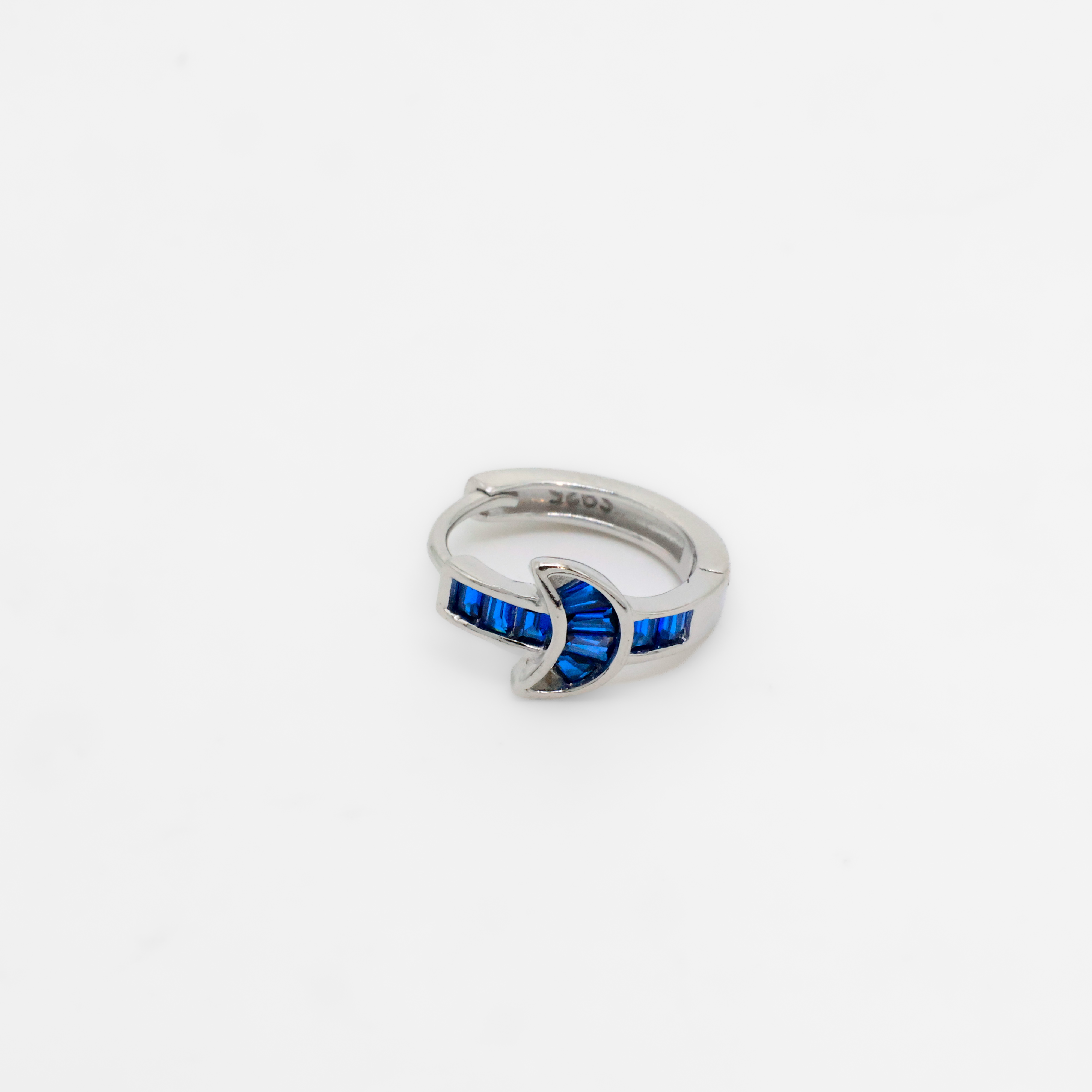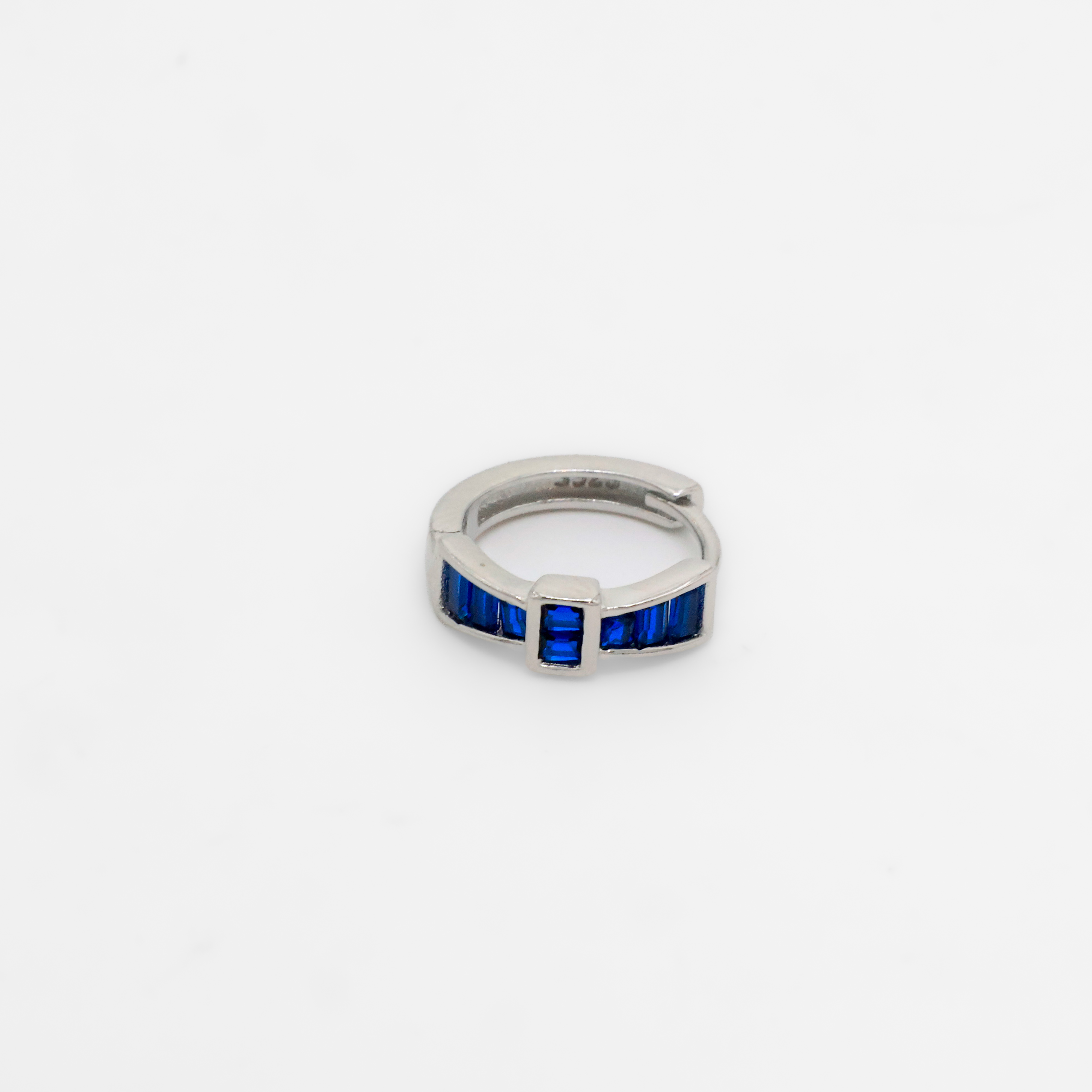 Elegant silver hoop earrings with blue gemstones, perfect for everyday wear or special occasions. Buy silver hoop earrings from Arham Silver Palace in Hyderabad.