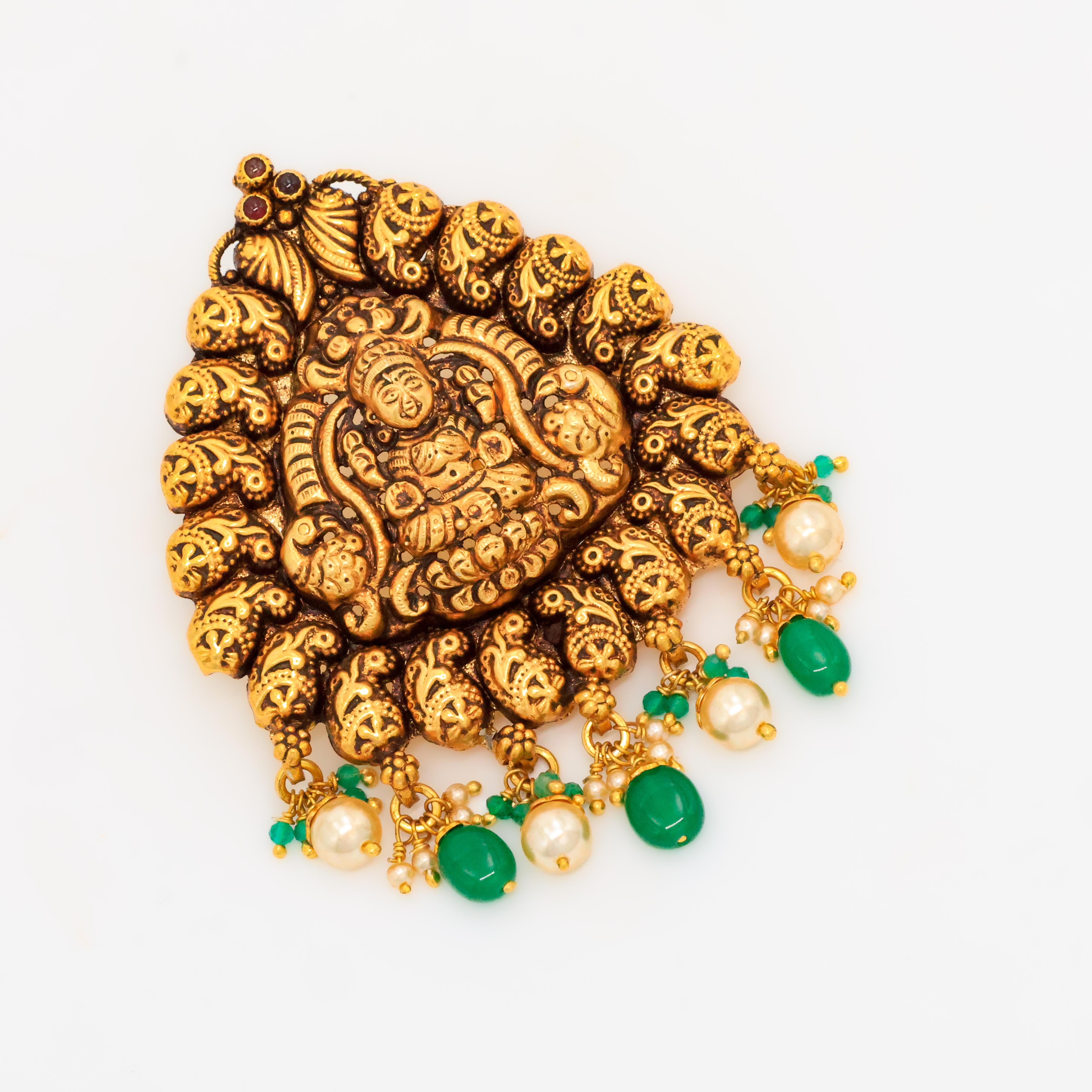 Classic gold plated pendant featuring intricate detailing, perfect for traditional occasions. Buy Gold Plated Pendant from Arham Jewellery in Hyderabad.