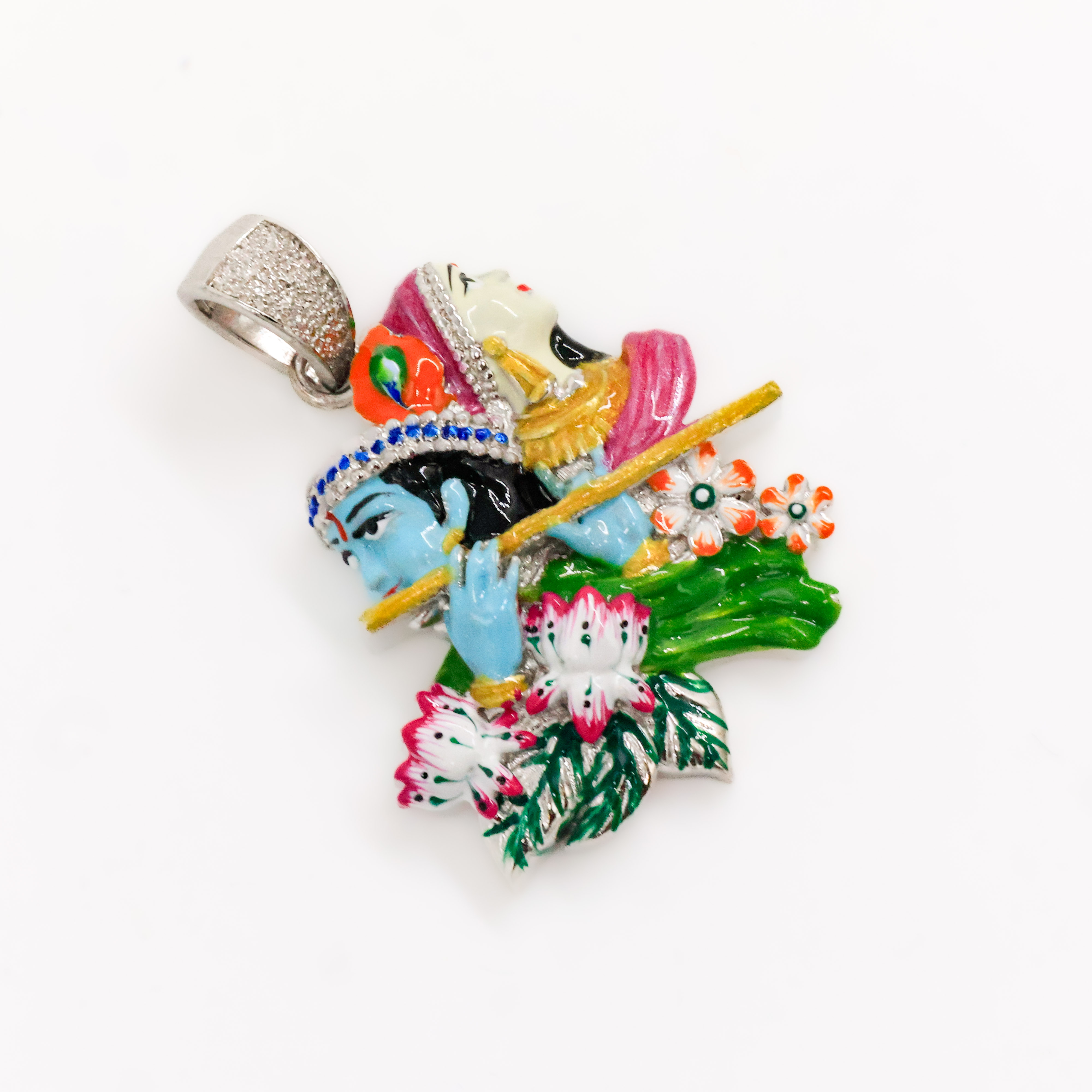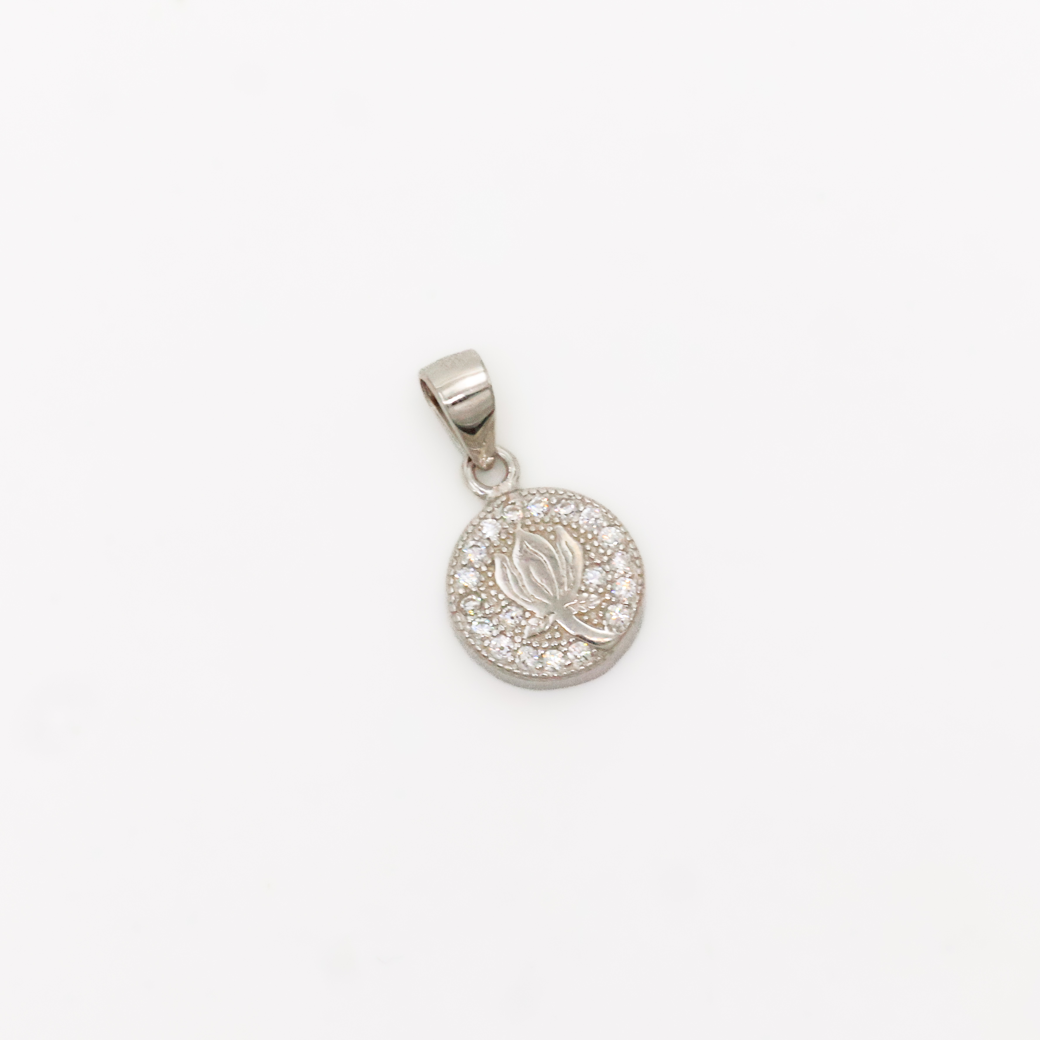 Elegant silver flower pendant with cubic zirconia, perfect for everyday wear or special occasions. Buy silver flower pendant from Arham Gold in Hyderabad.