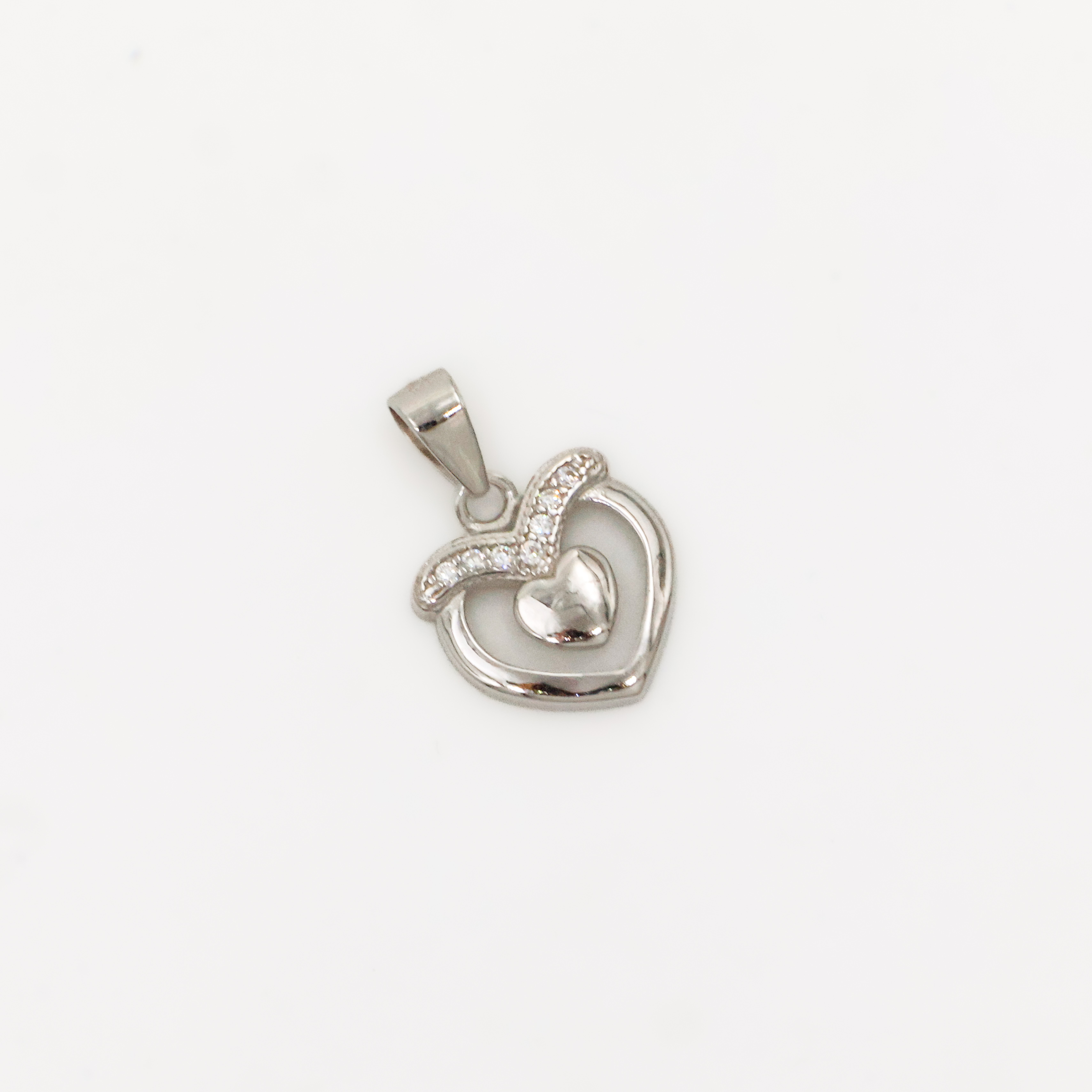 Elegant silver heart pendant with cubic zirconia accents, perfect for everyday wear or special occasions. Buy Silver Heart Pendant from Arham Gold in Hyderabad.
