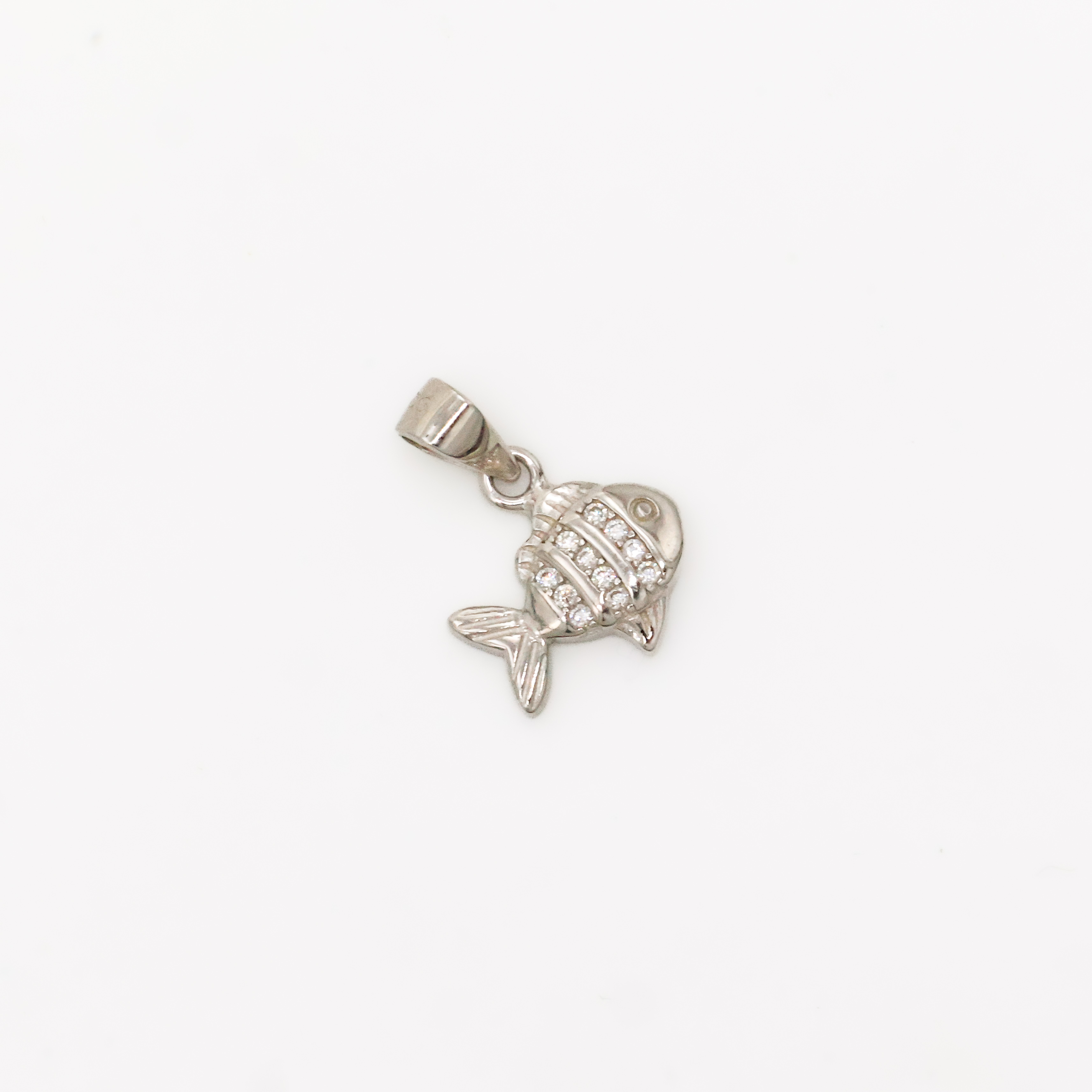 Elegant silver fish pendant with crystal accents, perfect for everyday wear or special occasions. Buy silver fish pendant from Arham Gold in Hyderabad.
