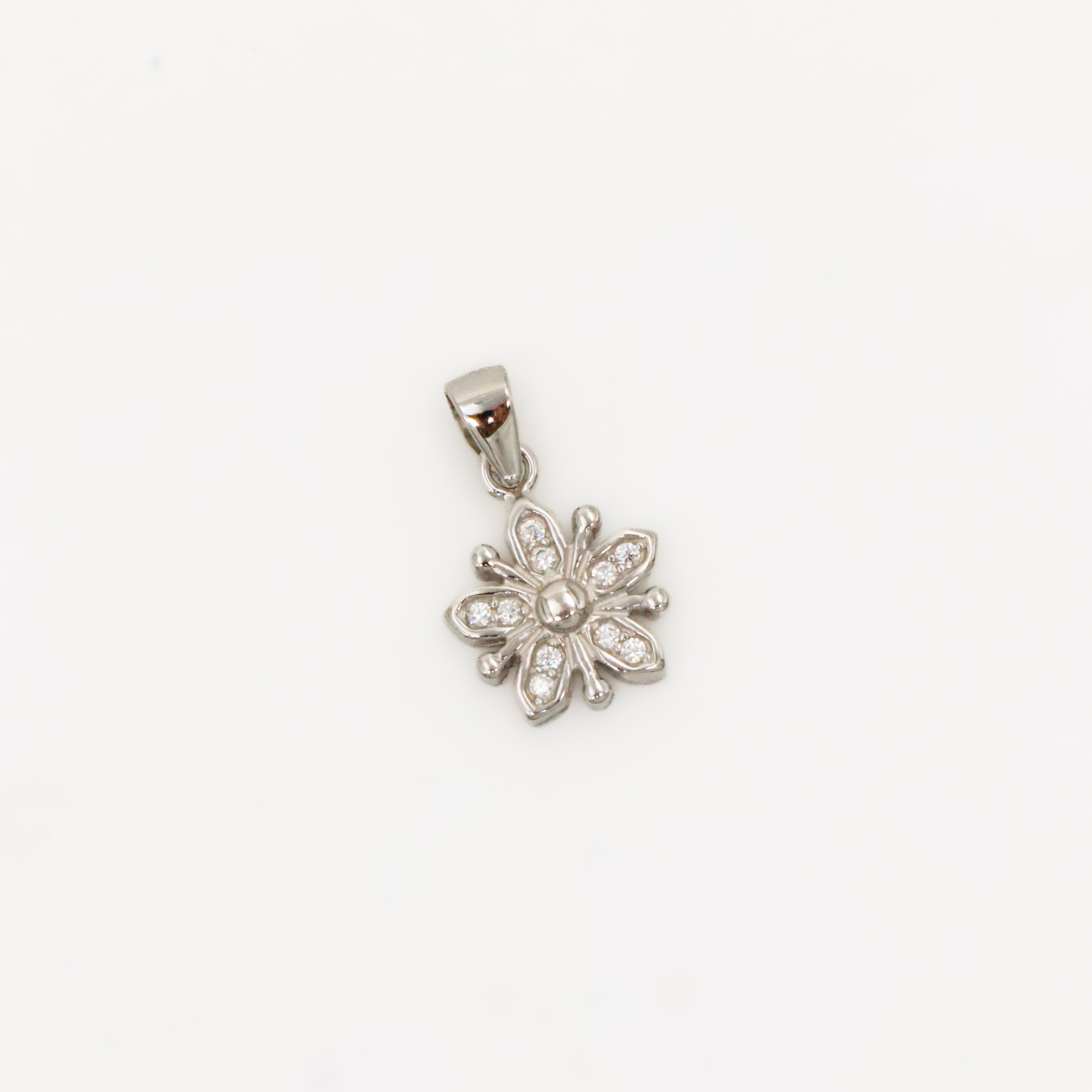 Elegant silver flower pendant with cubic zirconia, perfect for everyday wear and special occasions. Buy silver flower pendant from Arham Gold in Hyderabad.