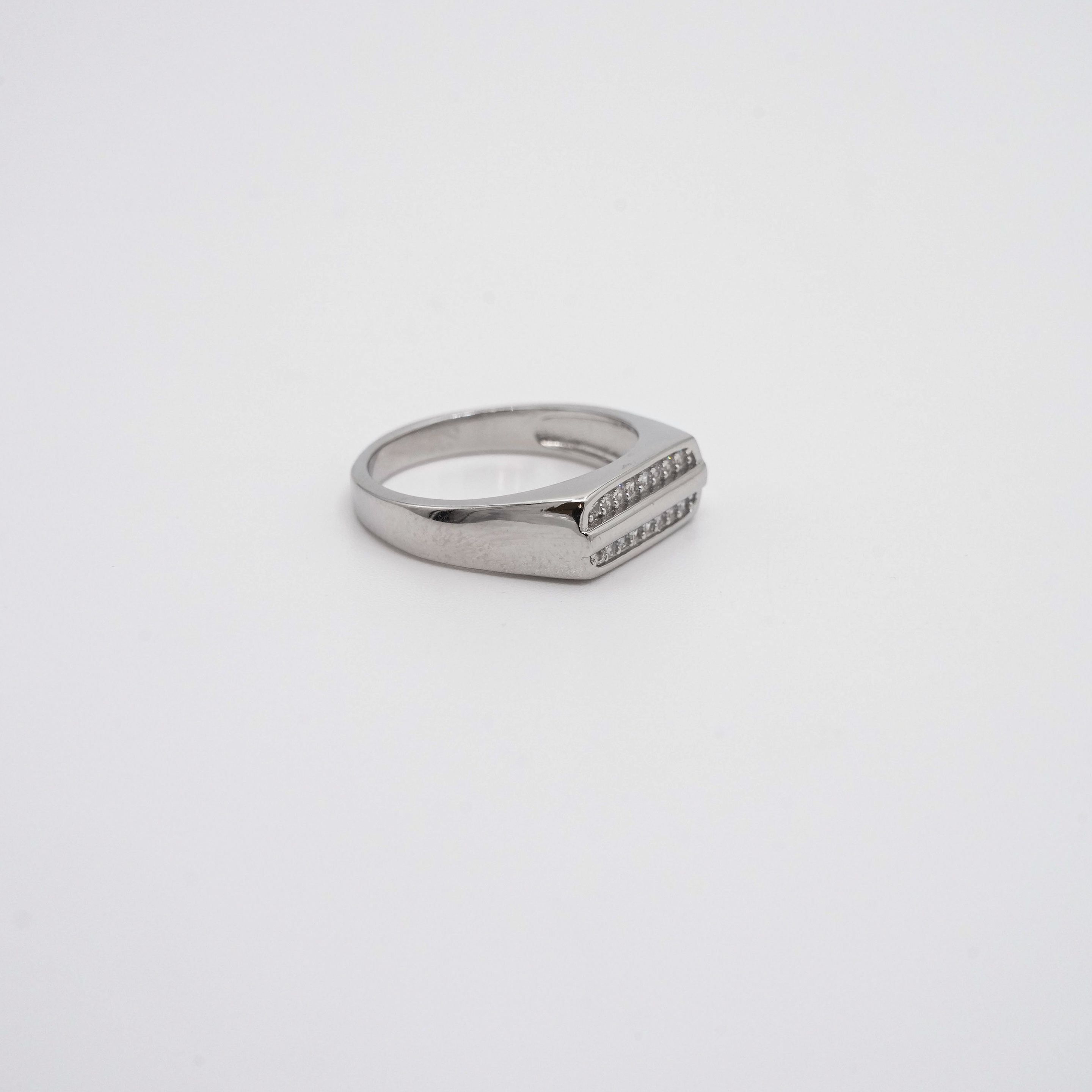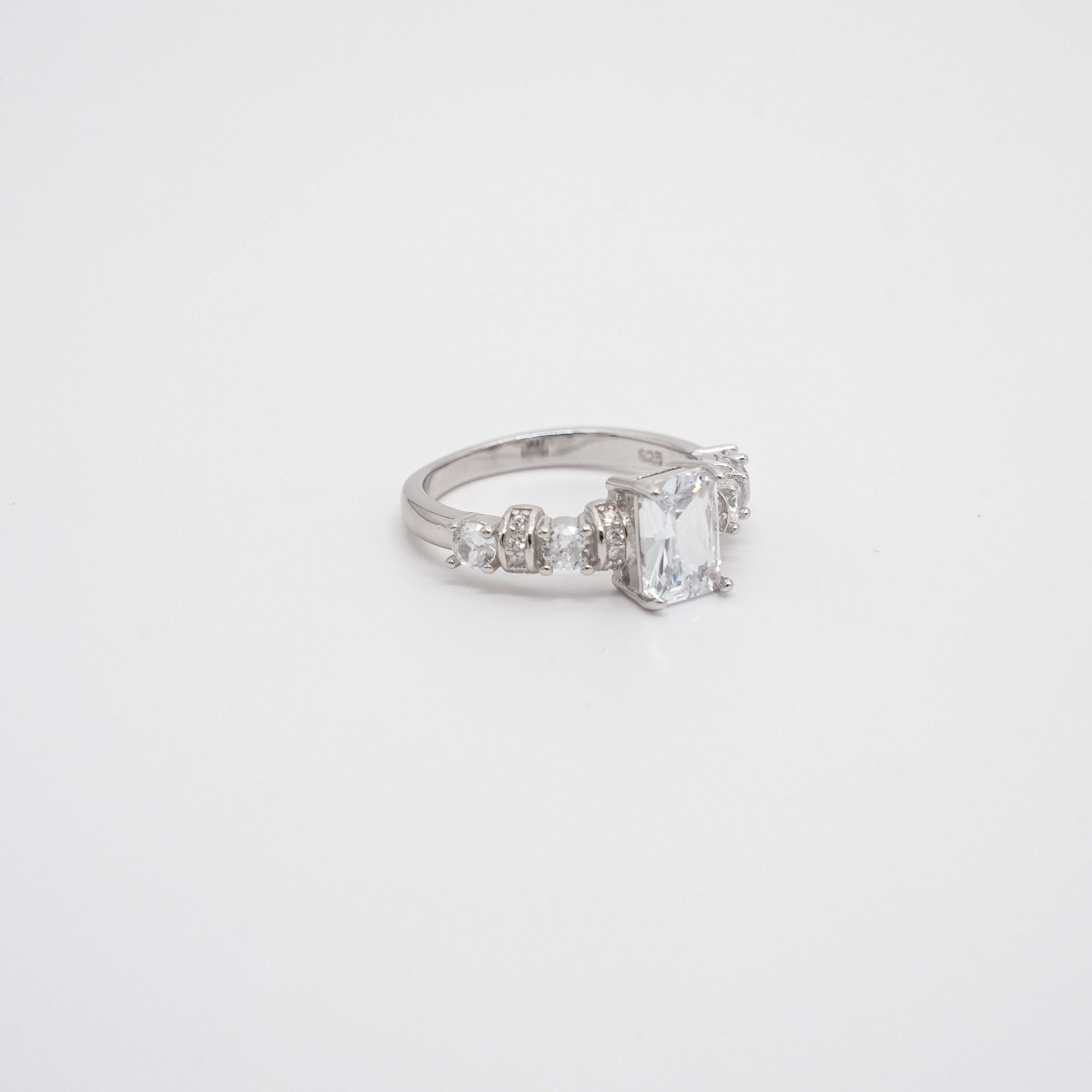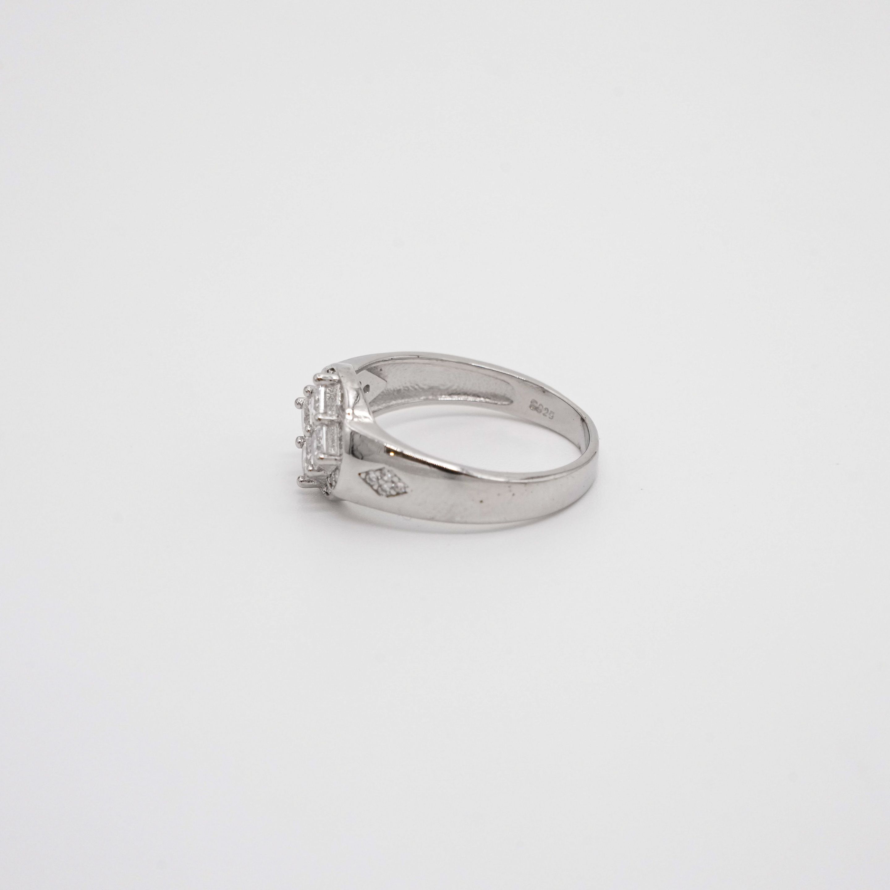 Sterling silver ring with rectangle cut cubic zirconia stones, ideal for parties and everyday wear. Buy silver fashion ring from Arham Gold in Hyderabad.