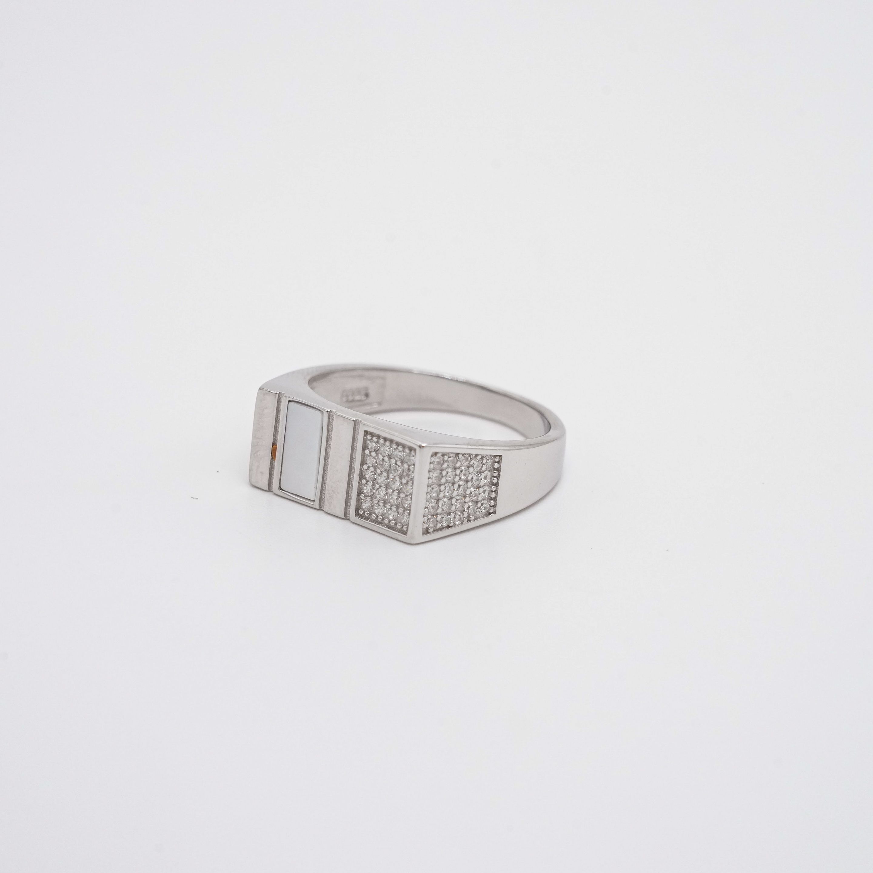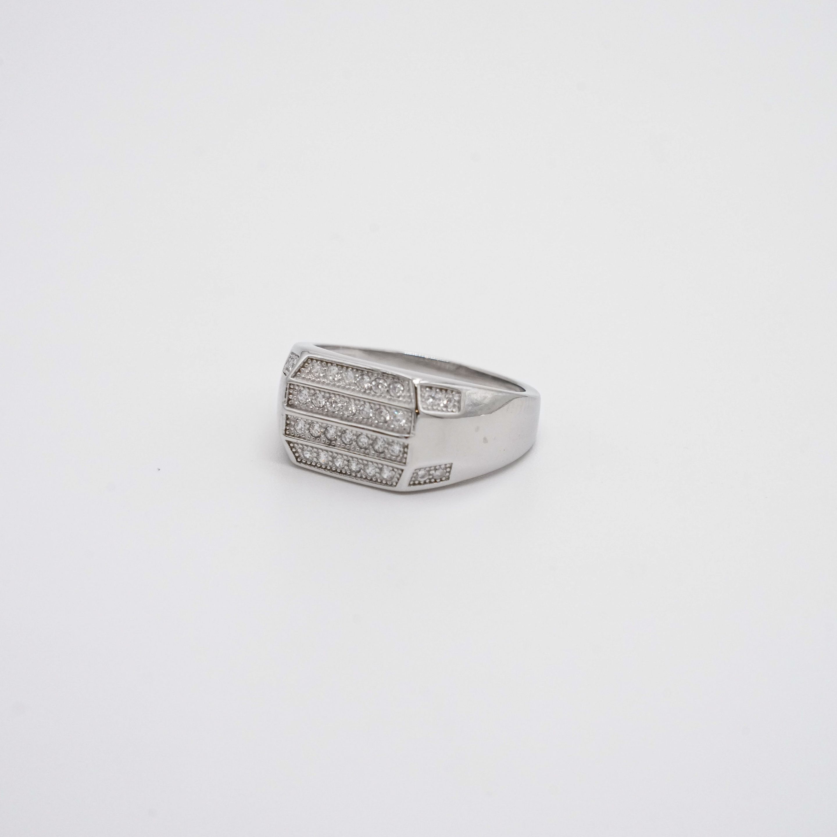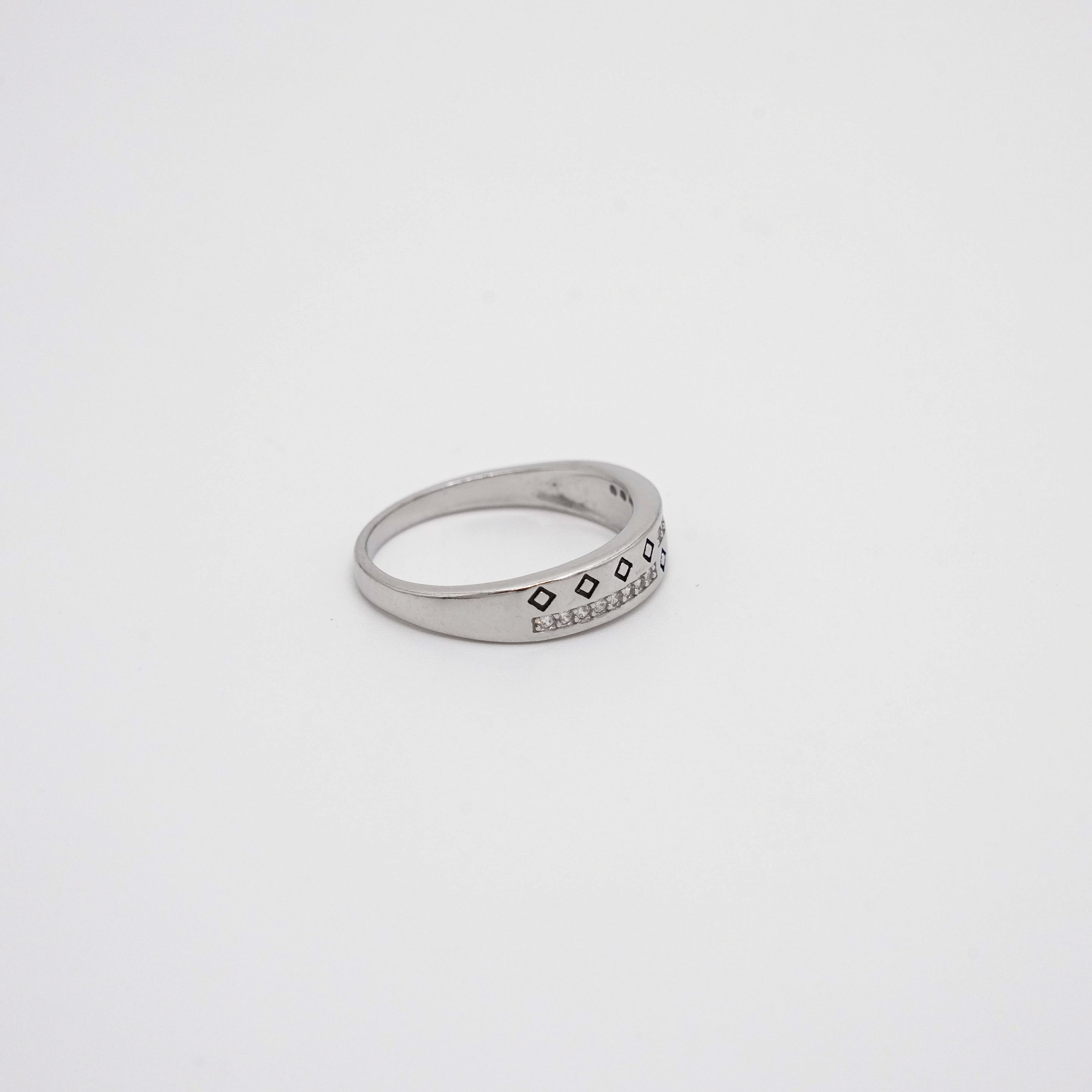 Sterling silver ring with rectangle cut cubic zirconia stones, ideal for parties and everyday wear. Buy silver fashion ring from Arham Gold in Hyderabad.