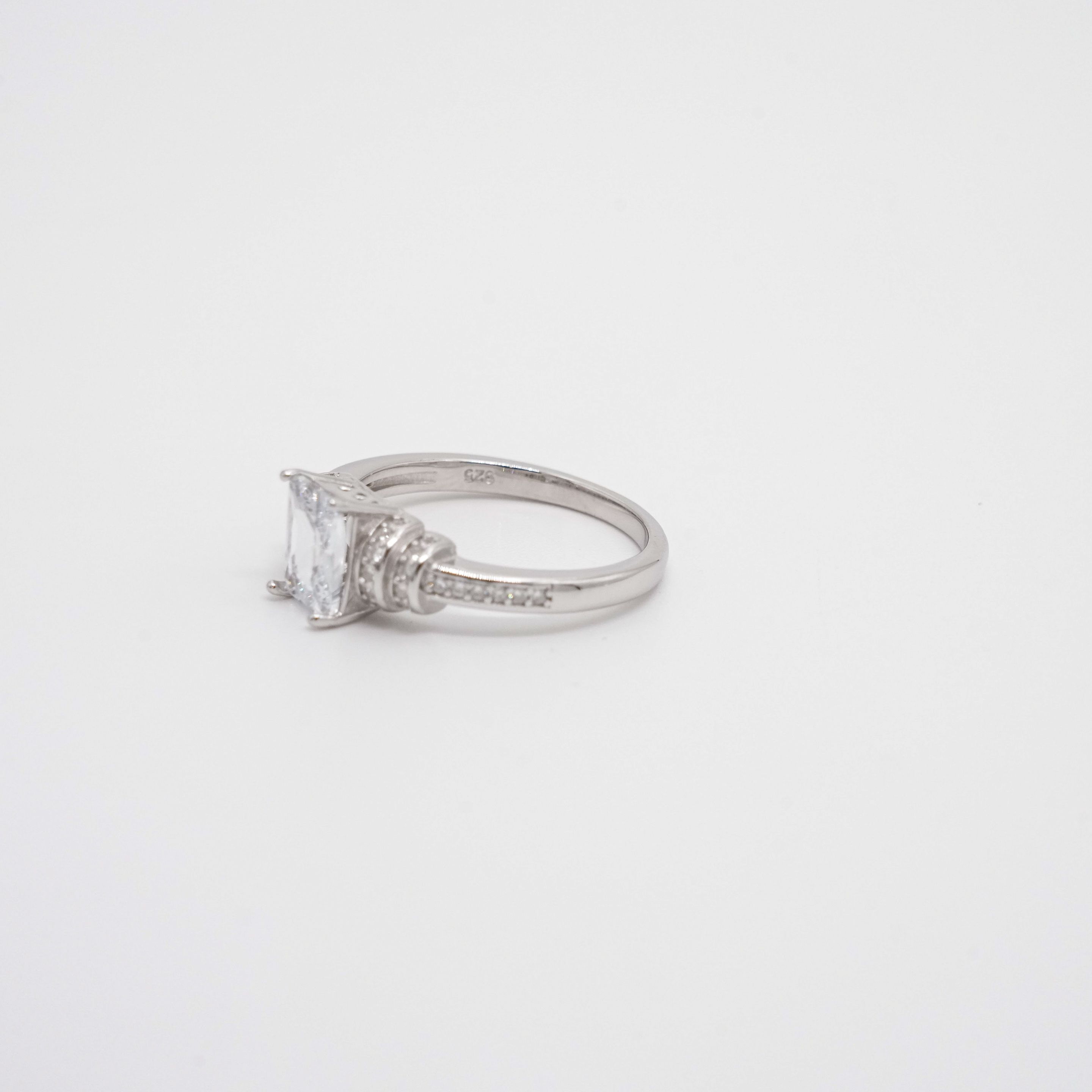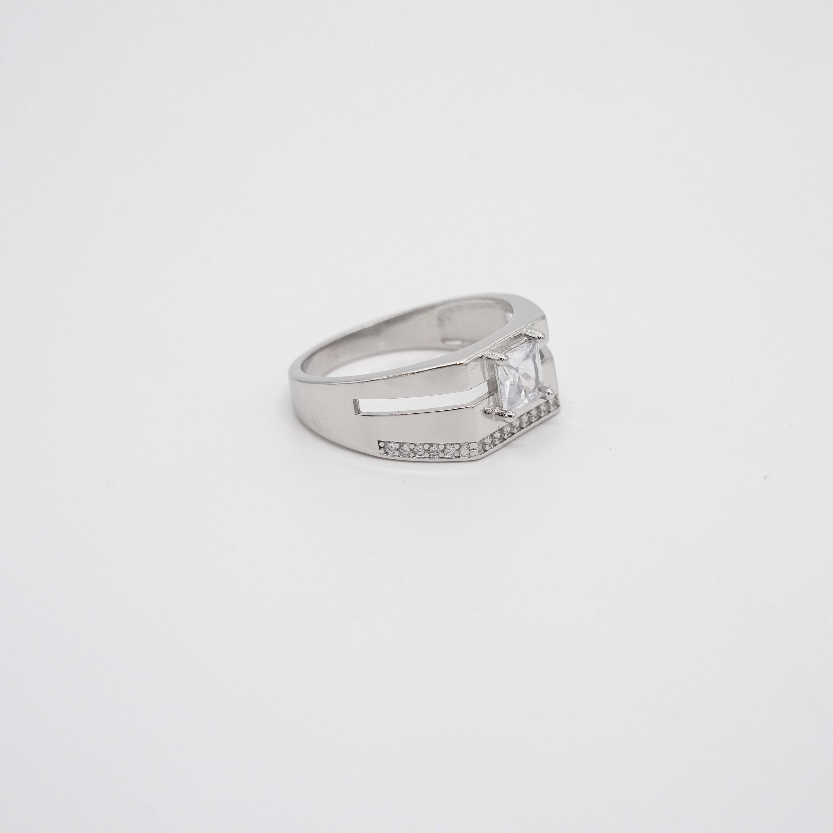 Sterling silver ring with square-cut cubic zirconia, ideal for everyday wear and special occasions. Buy silver square ring from Arham Gold in Hyderabad.