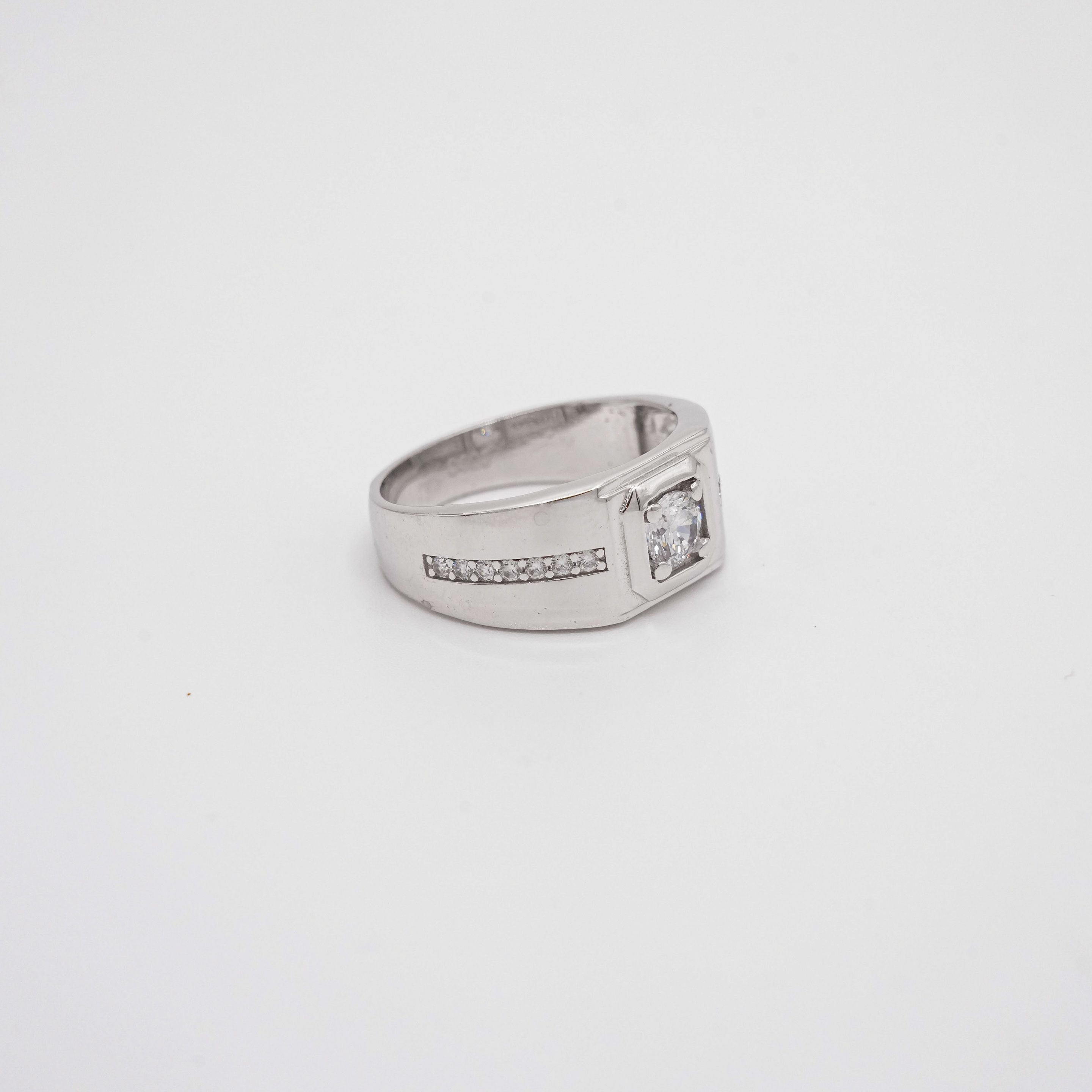 Elegant silver stone ring with sparkling cubic zirconia, perfect for everyday wear or special occasions. Buy silver stone ring from Arham Gold in Hyderabad.