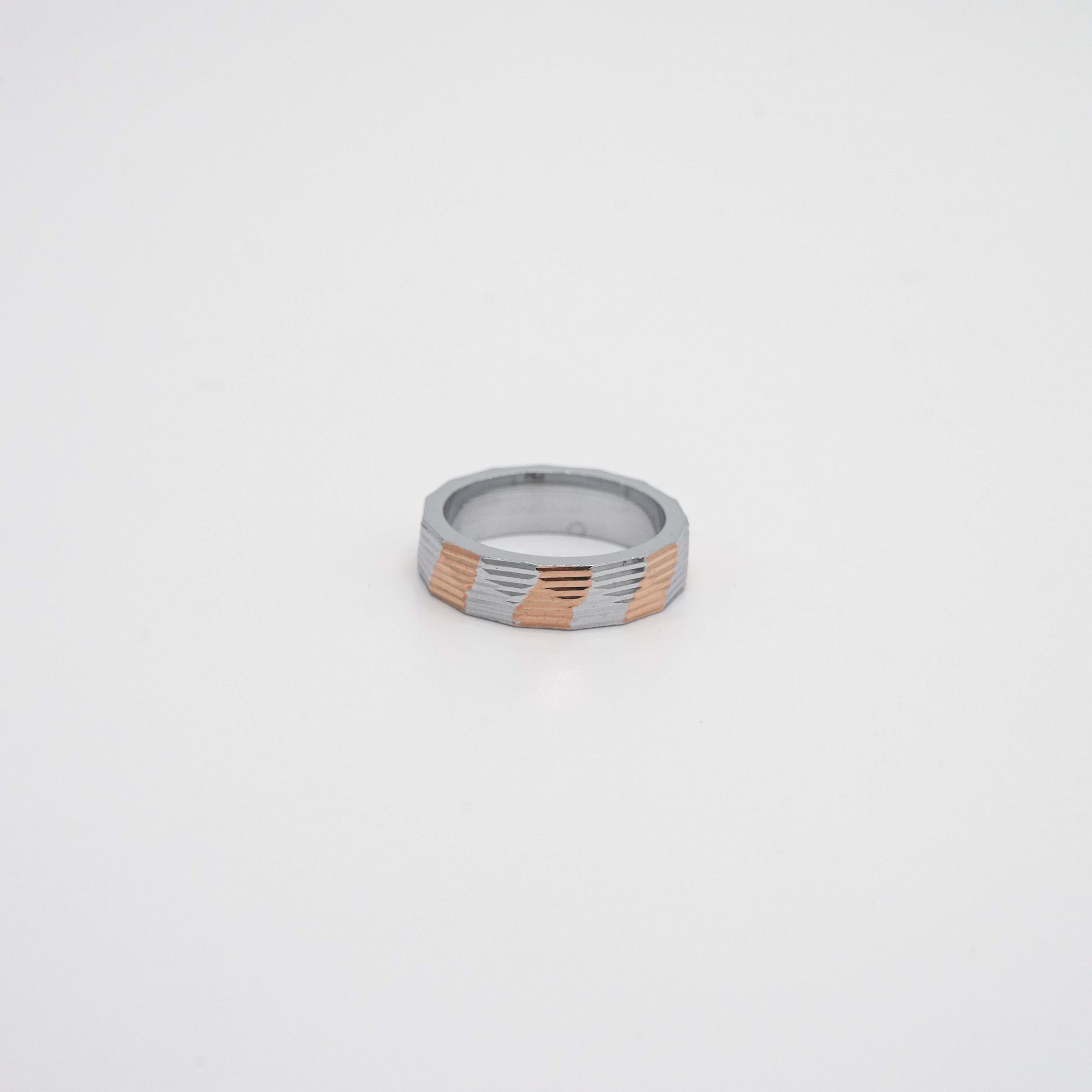 Simple silver band ring with black accent stripe, perfect for everyday wear or as a minimalist gift. Buy silver band ring from Arham Gold in Hyderabad.