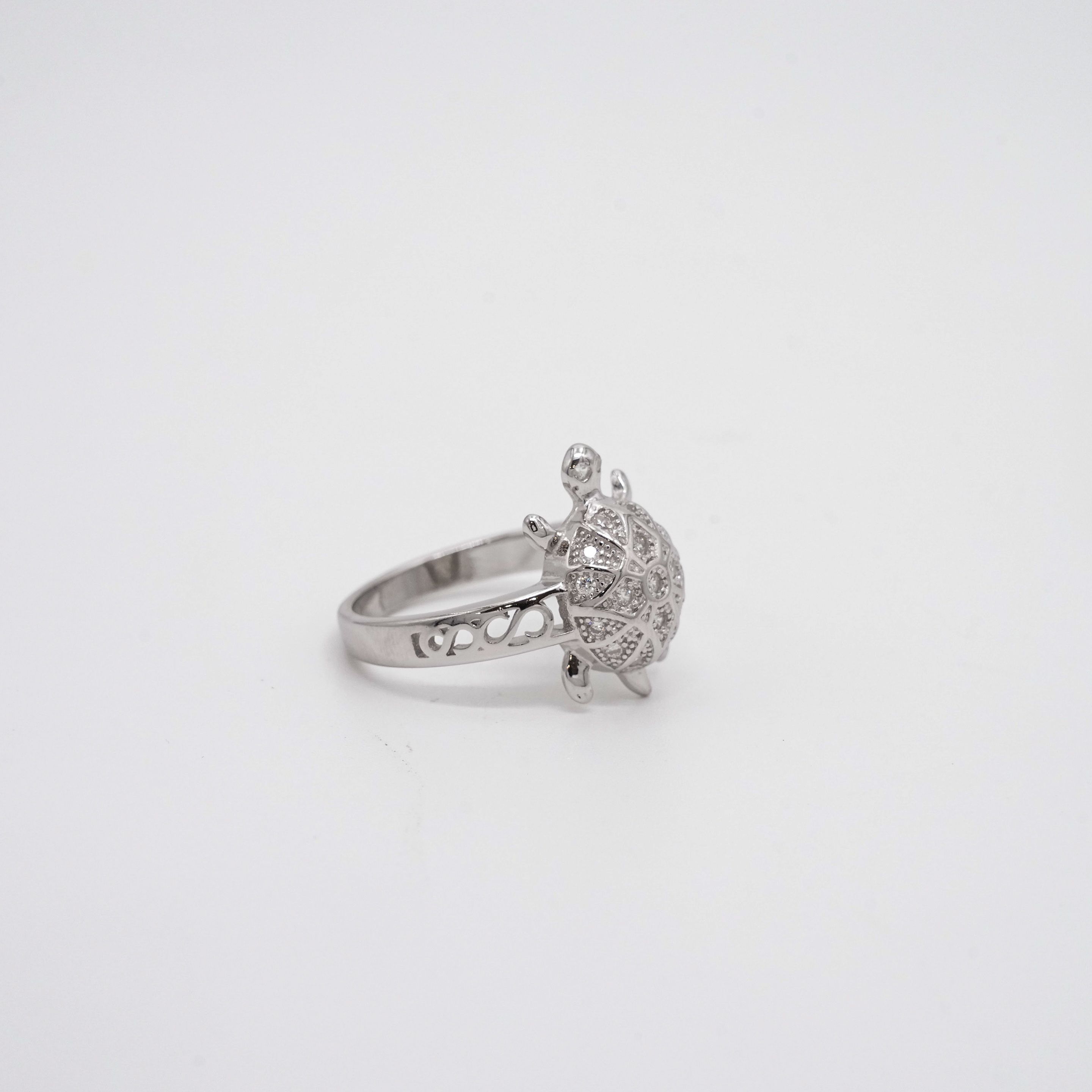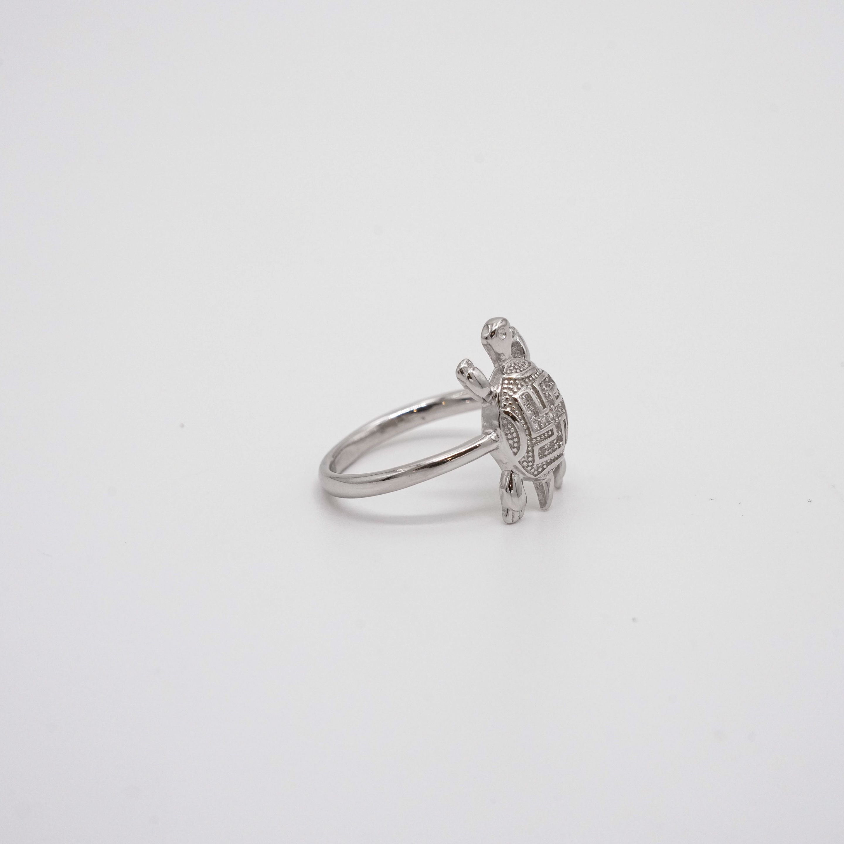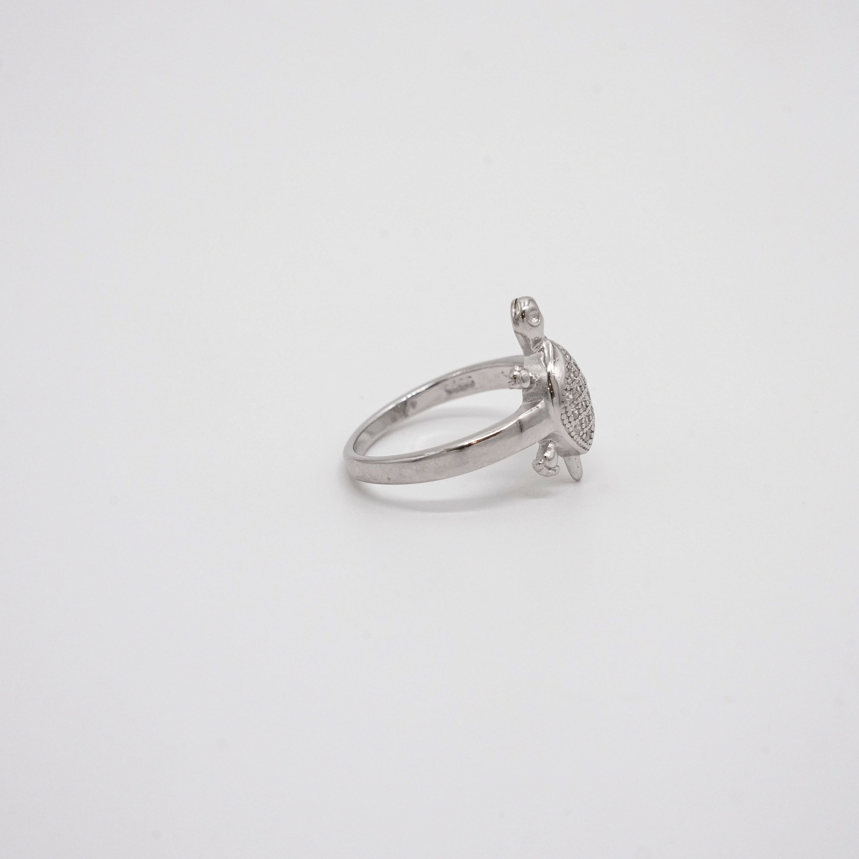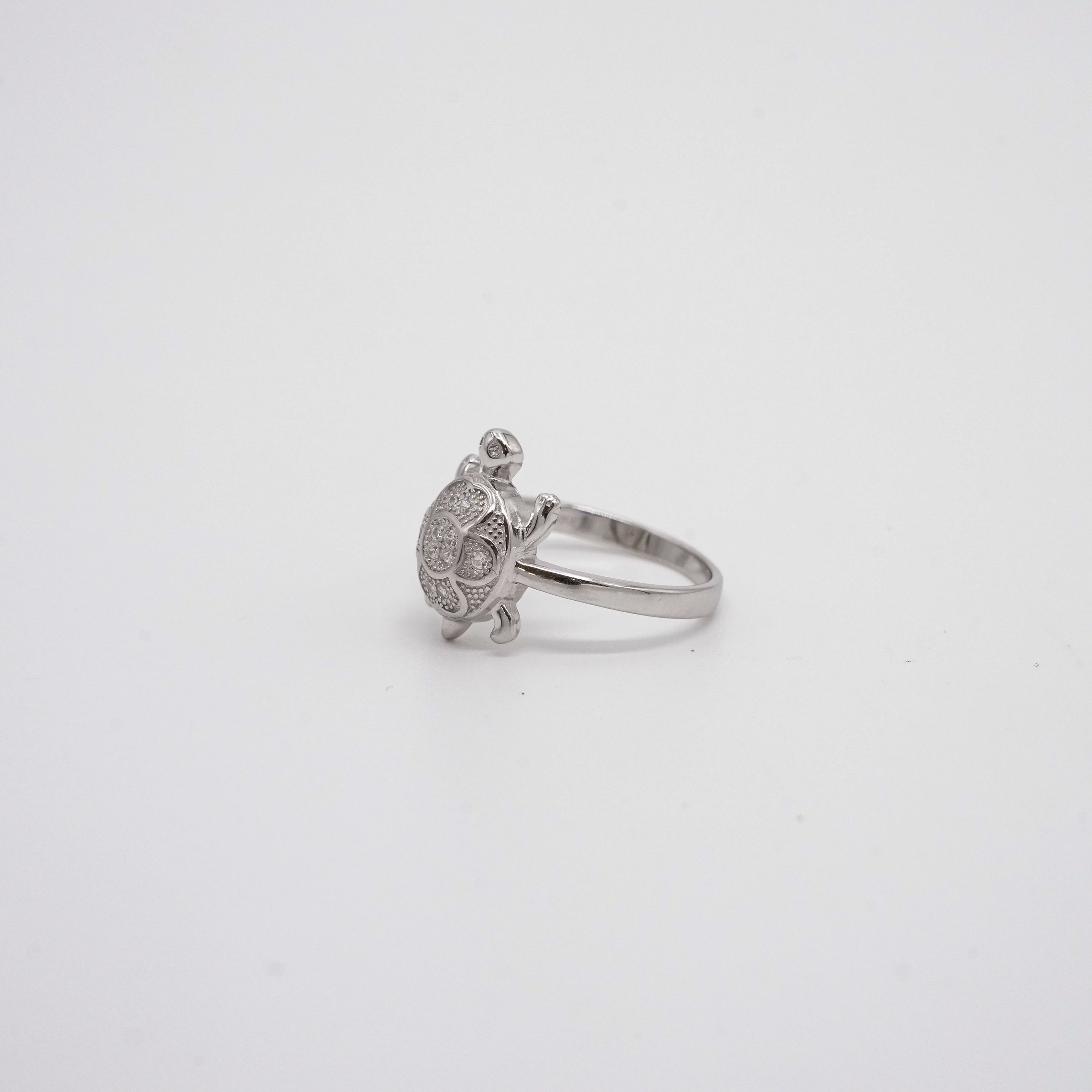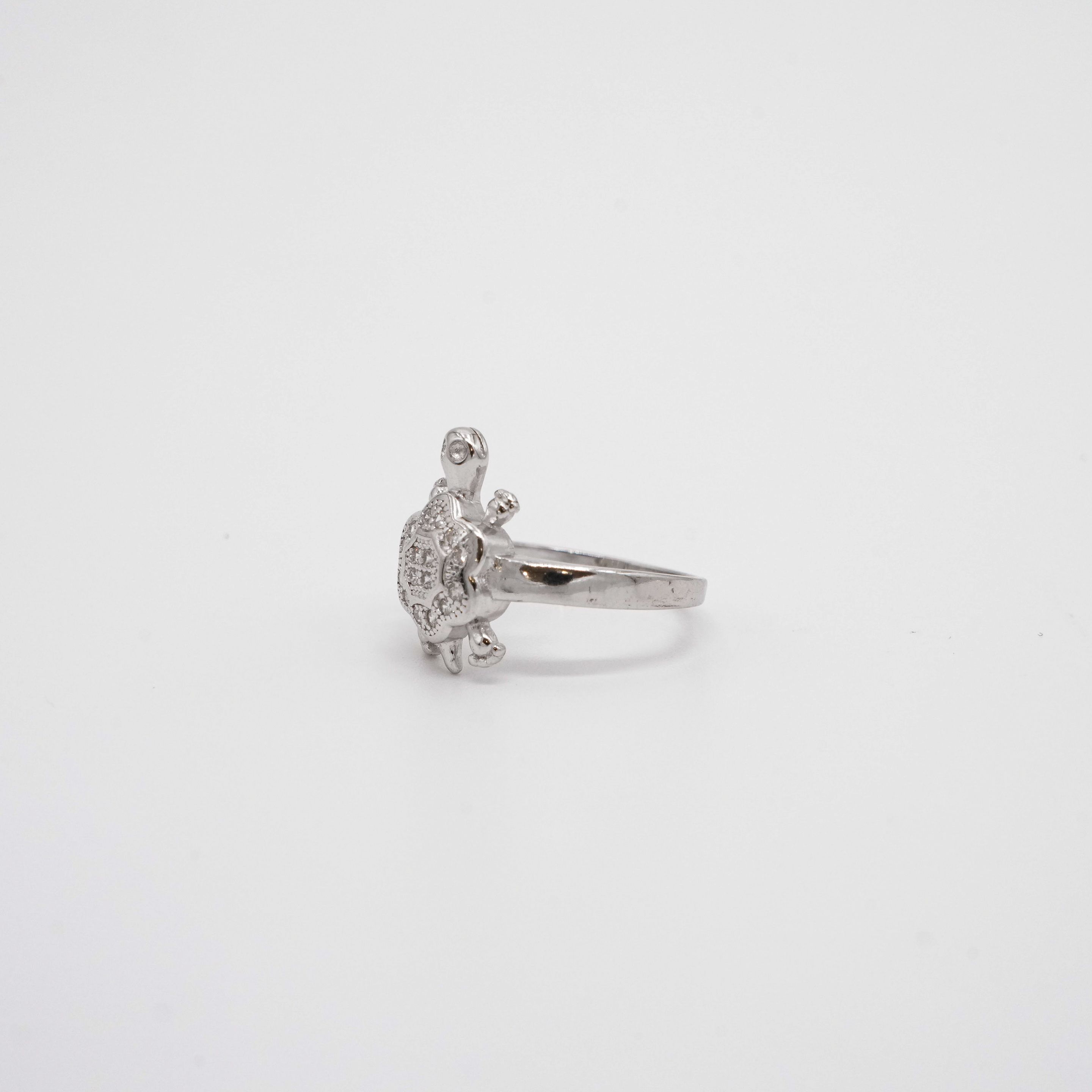 Cute silver turtle ring with stone studded design, perfect gift for animal lovers. Buy silver turtle ring from Arham Gold in Hyderabad.