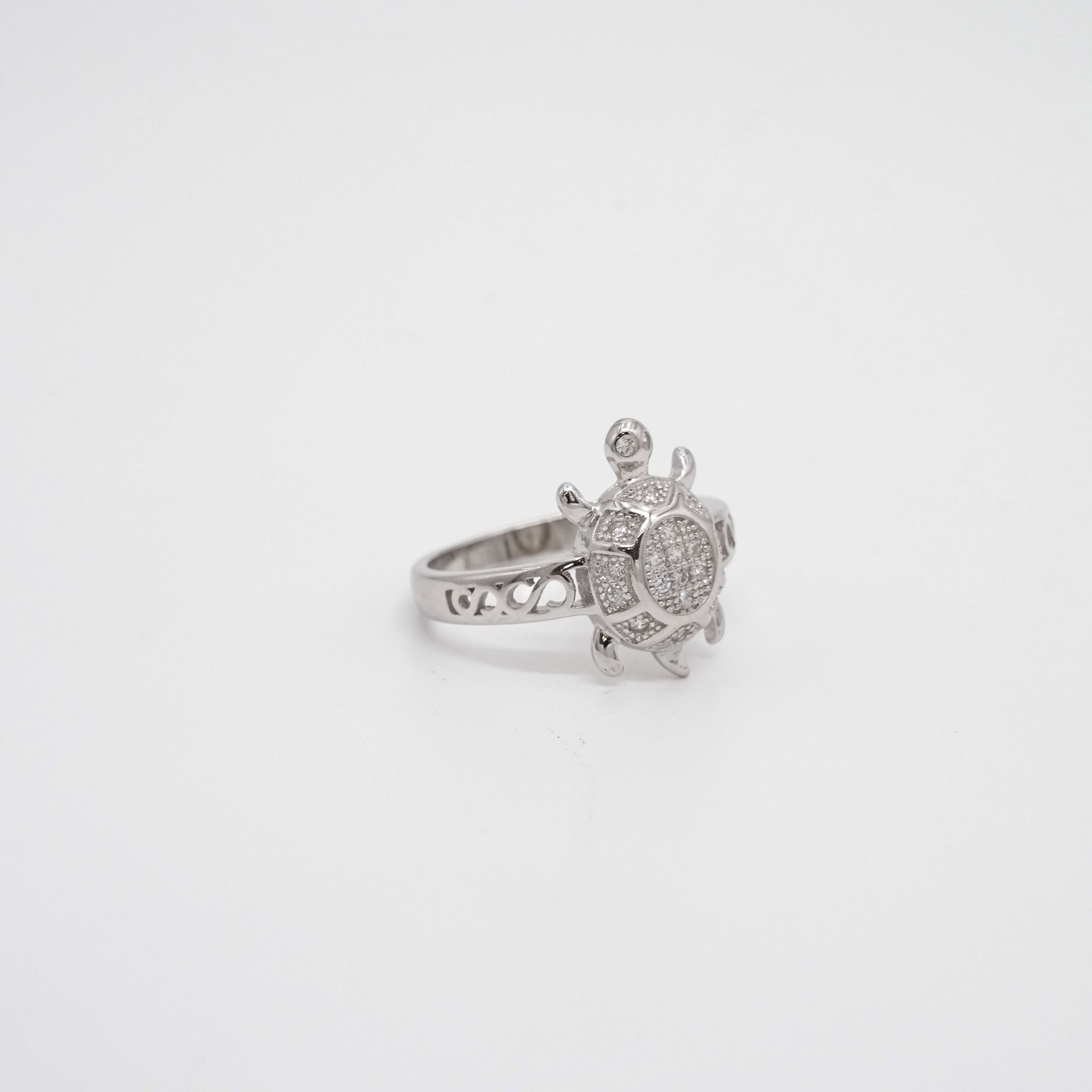 Sterling silver turtle ring with stone accents, perfect for everyday wear and special occasions. Buy silver turtle ring from Arham Gold in Hyderabad.