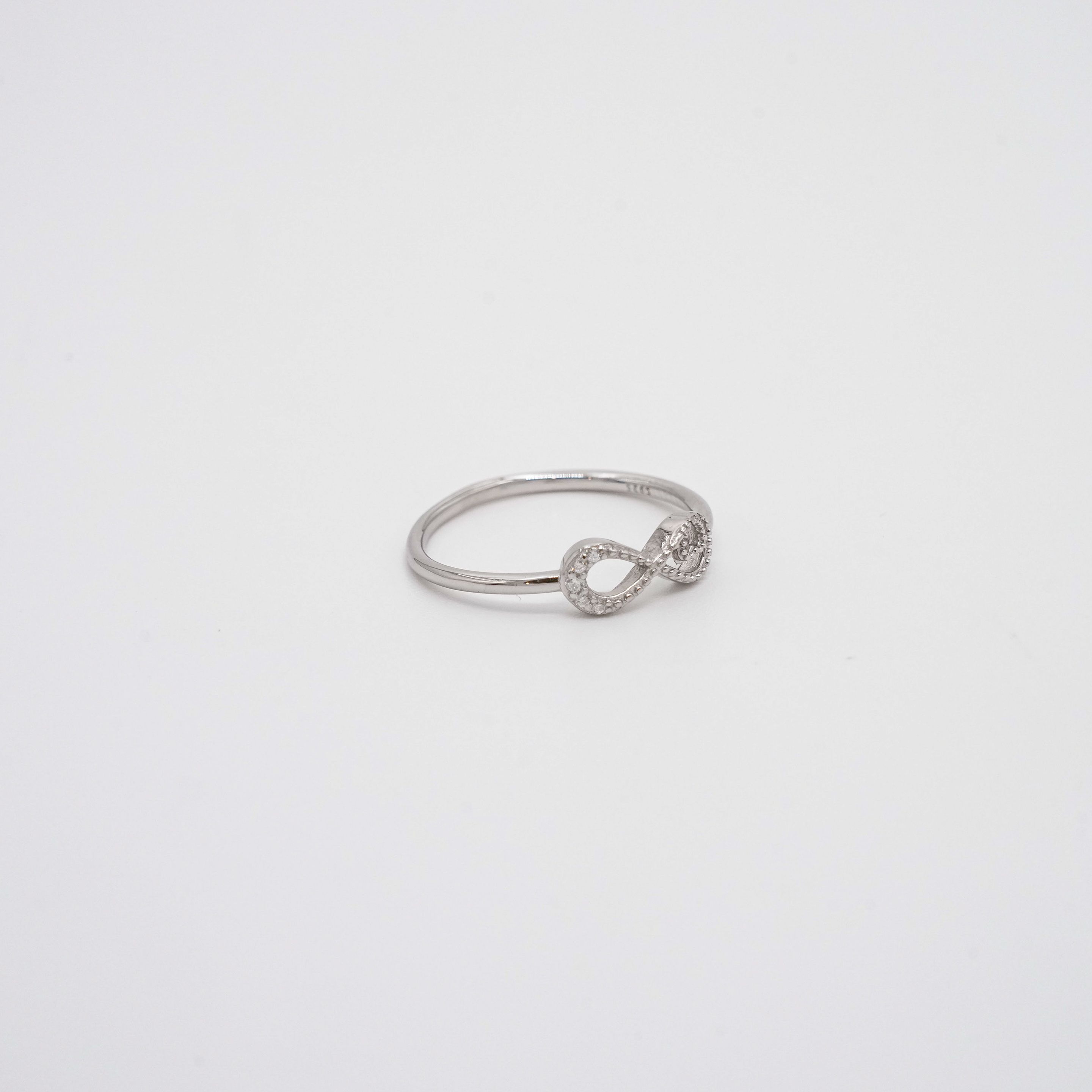 Sterling silver infinity ring with diamond accents, ideal for everyday wear and special occasions. Buy silver infinity ring from Arham Gold in Hyderabad.