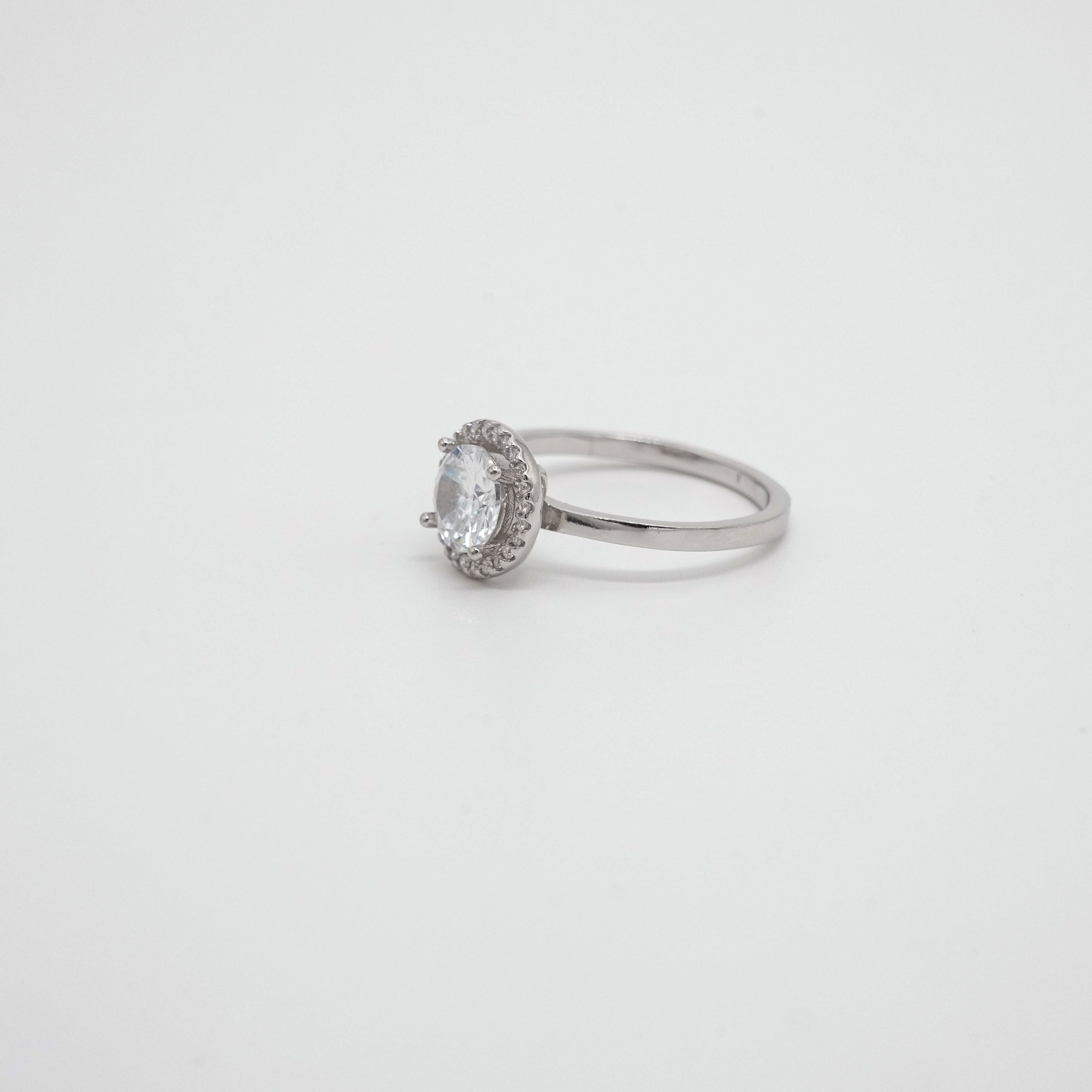 Sterling silver halo ring with cubic zirconia stones, ideal for engagements and special occasions. Buy silver halo ring from Arham Gold in Hyderabad.