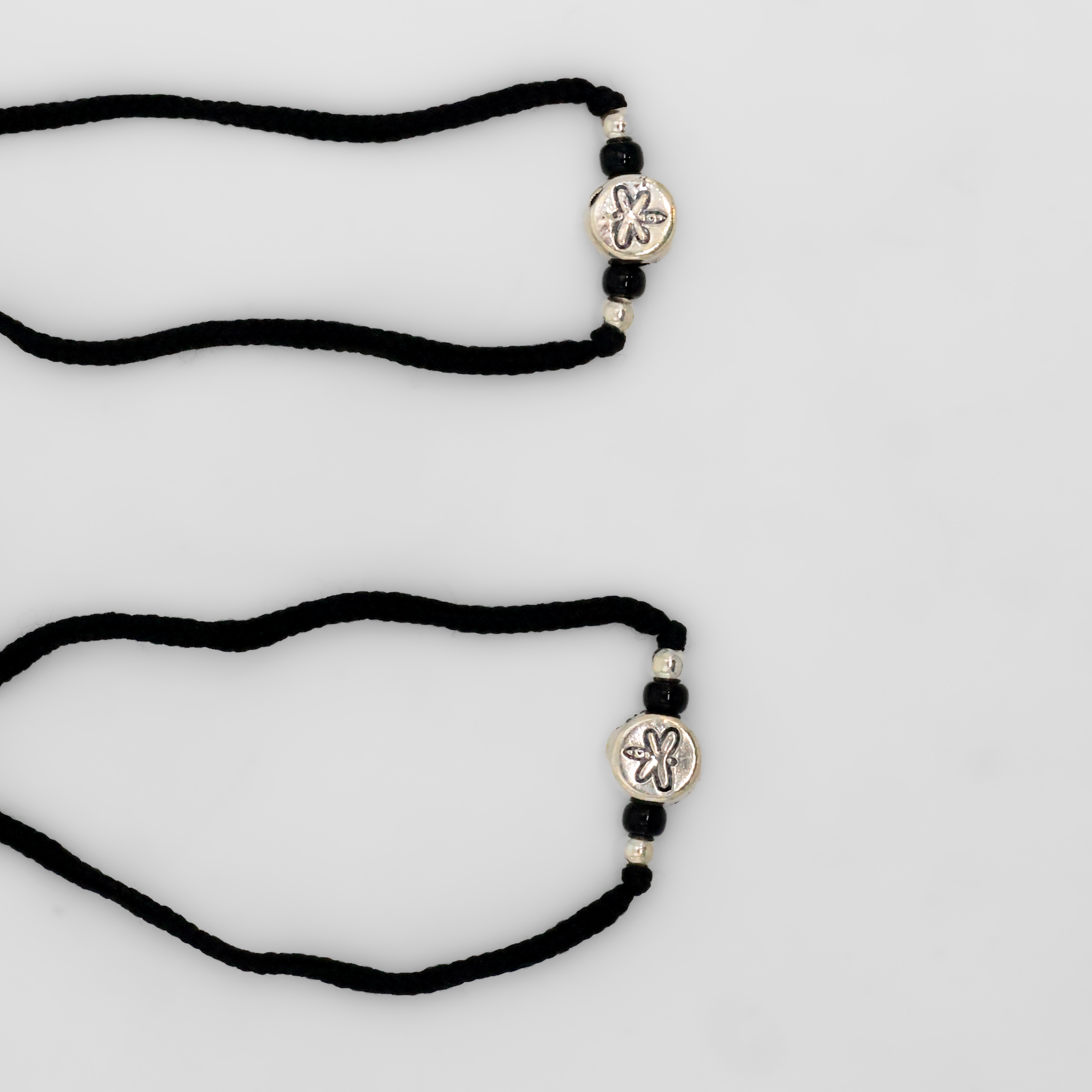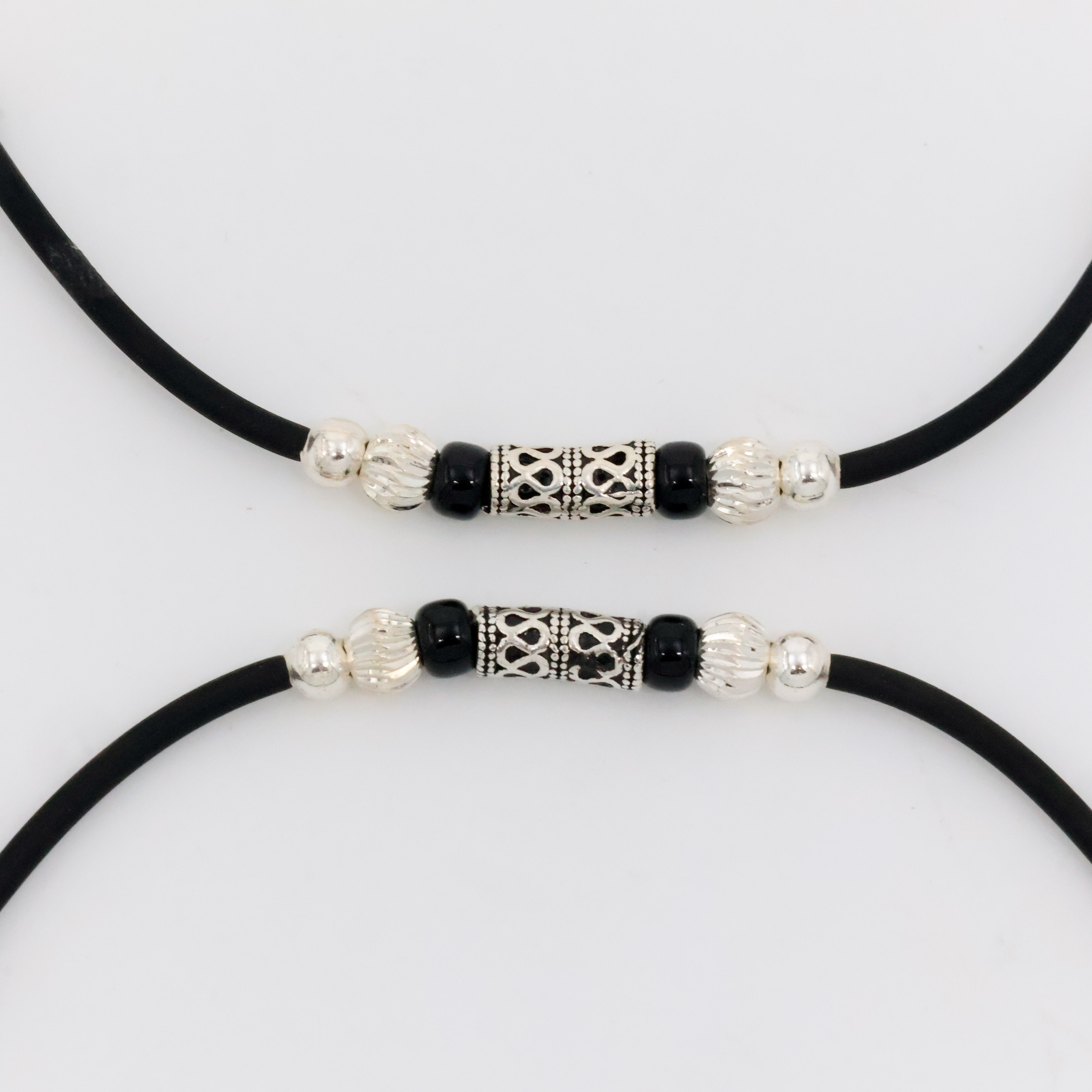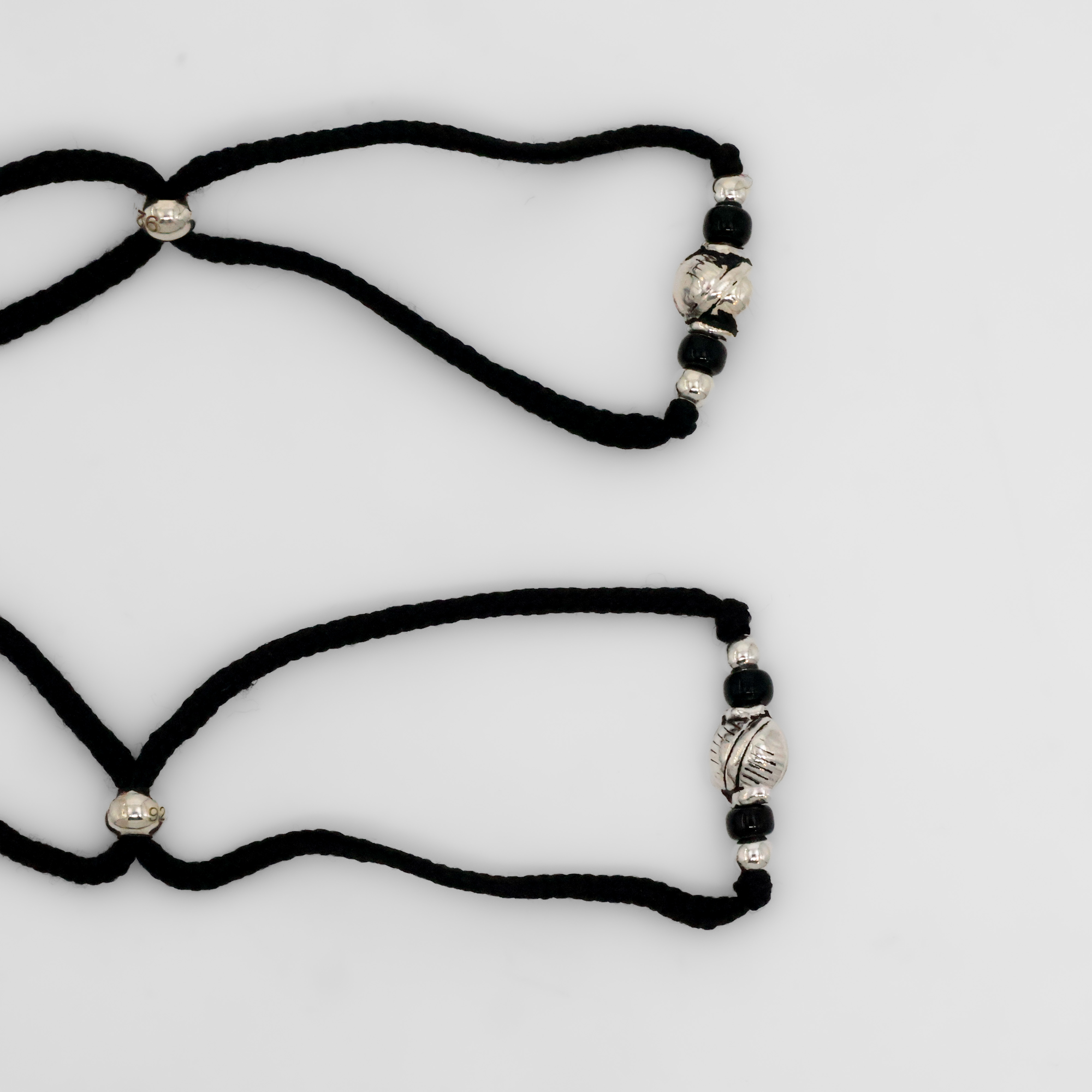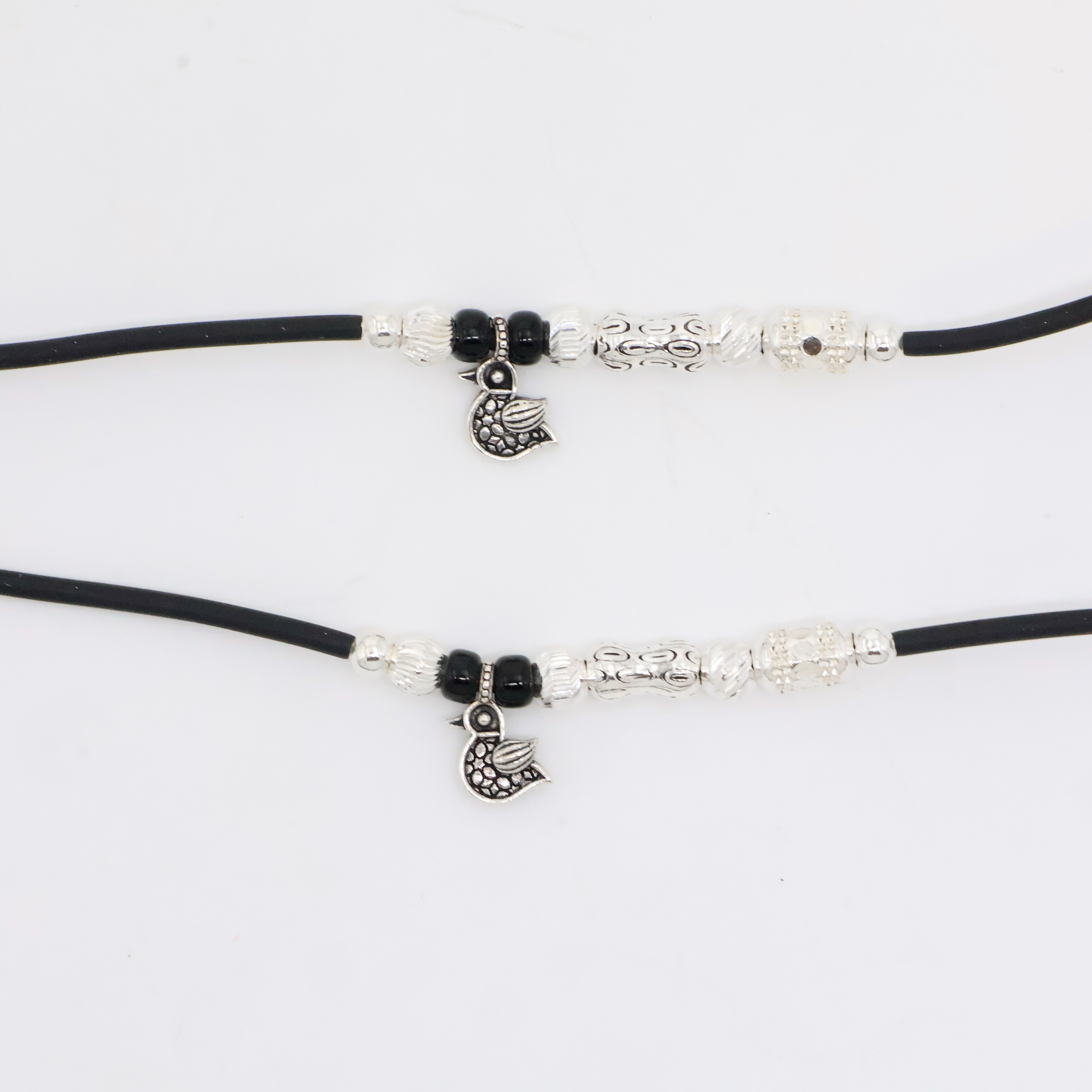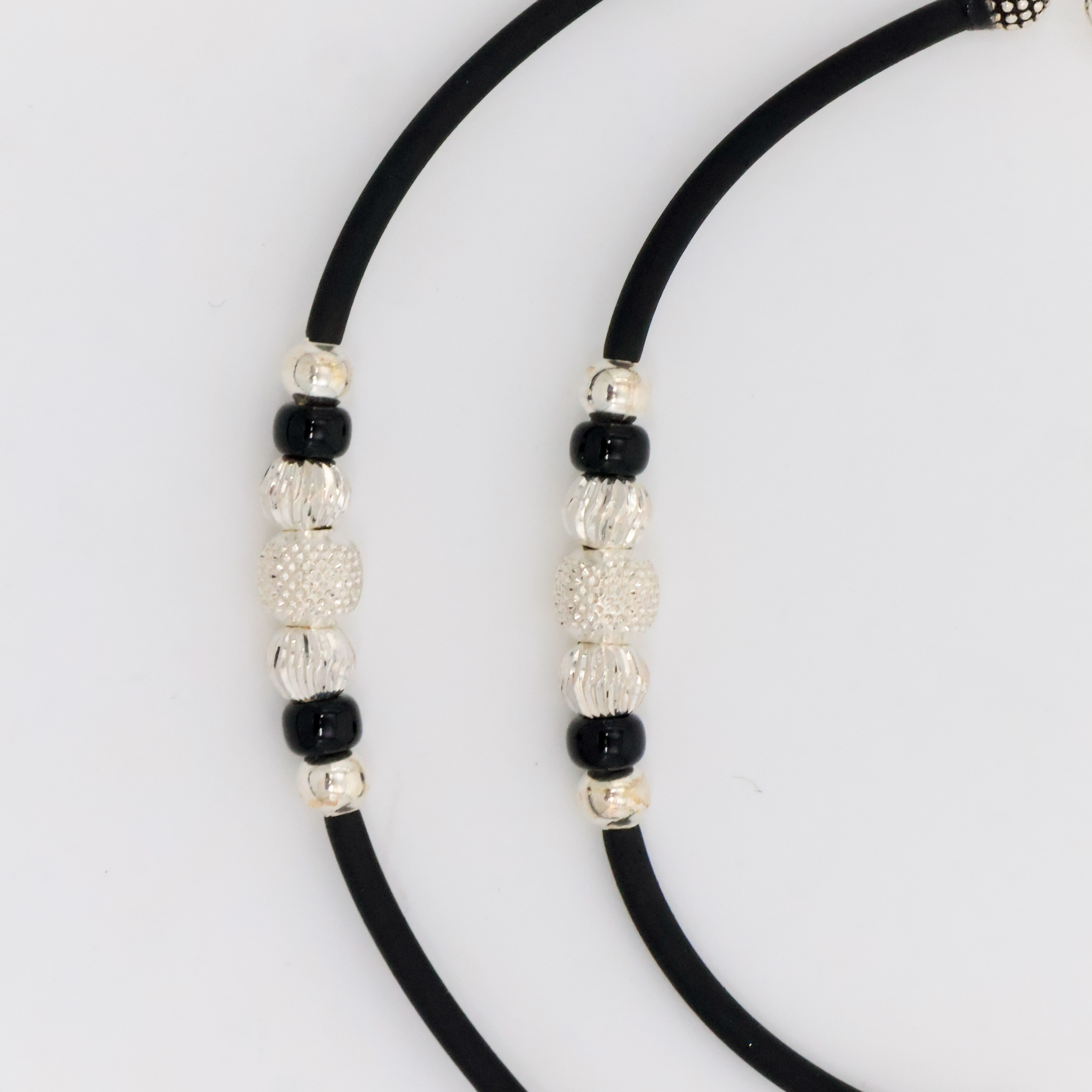 Elegant silver bead Anklets with black accents, perfect for everyday wear and special occasions. Buy silver bead Anklets from Arham Silver Palace in Hyderabad.