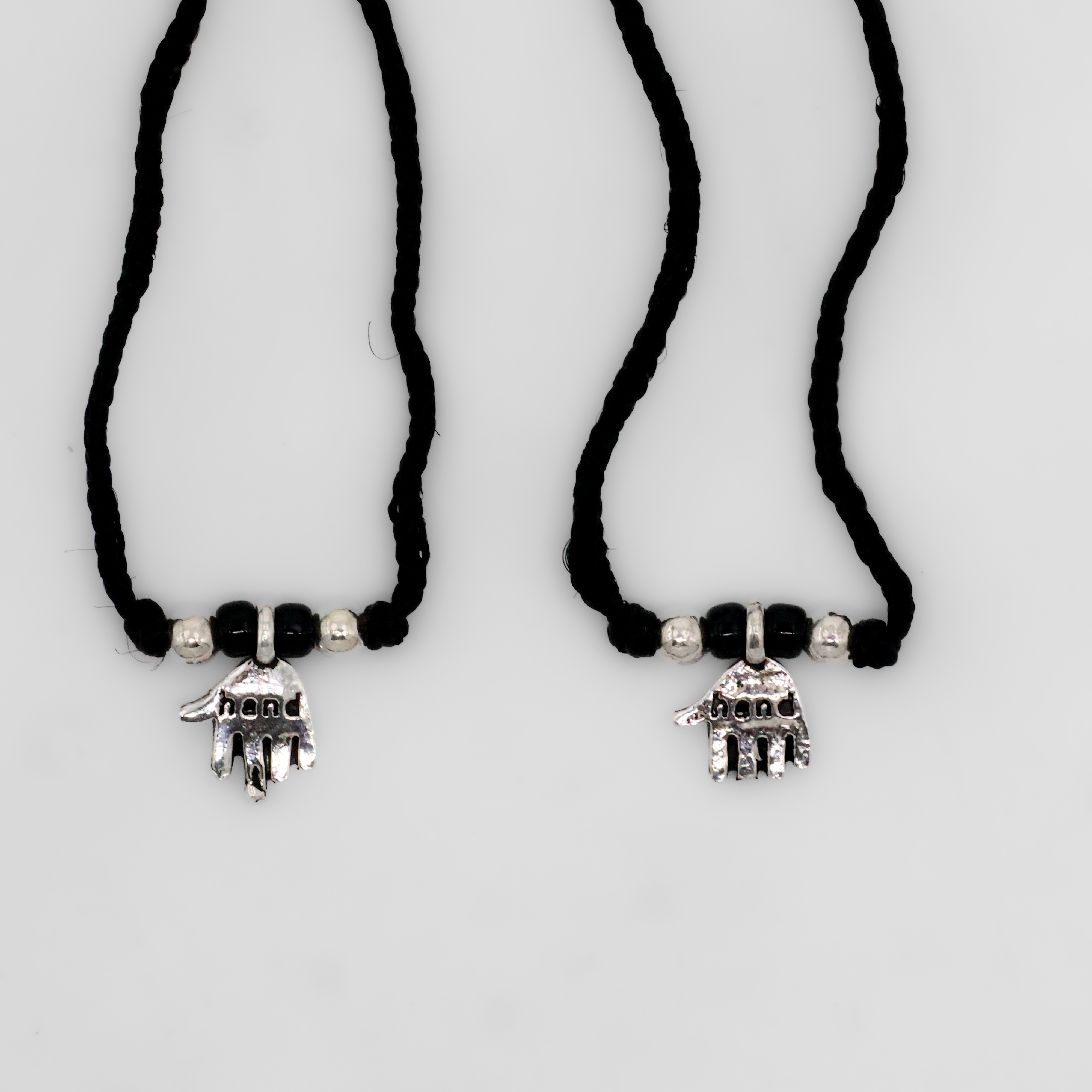 Elegant silver hamsa Anklets with black thread, a symbol of protection and good fortune. Buy silver Anklets necklace from Arham Silver Palace in Hyderabad.