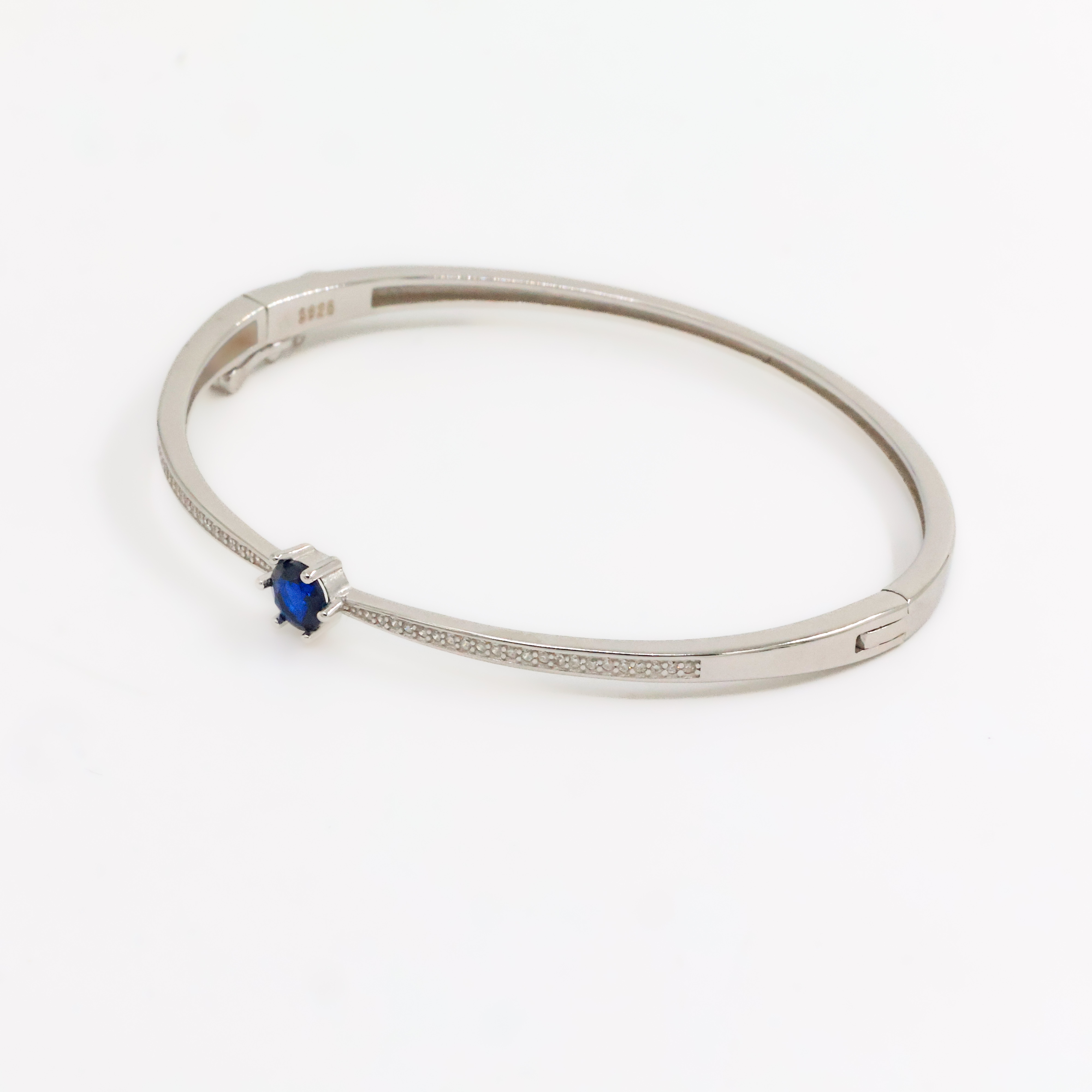 Elegant silver bracelet with a striking blue stone, perfect for daily wear and special occasions. Buy Silver Blue Bracelet from Arham Gold in Hyderabad.