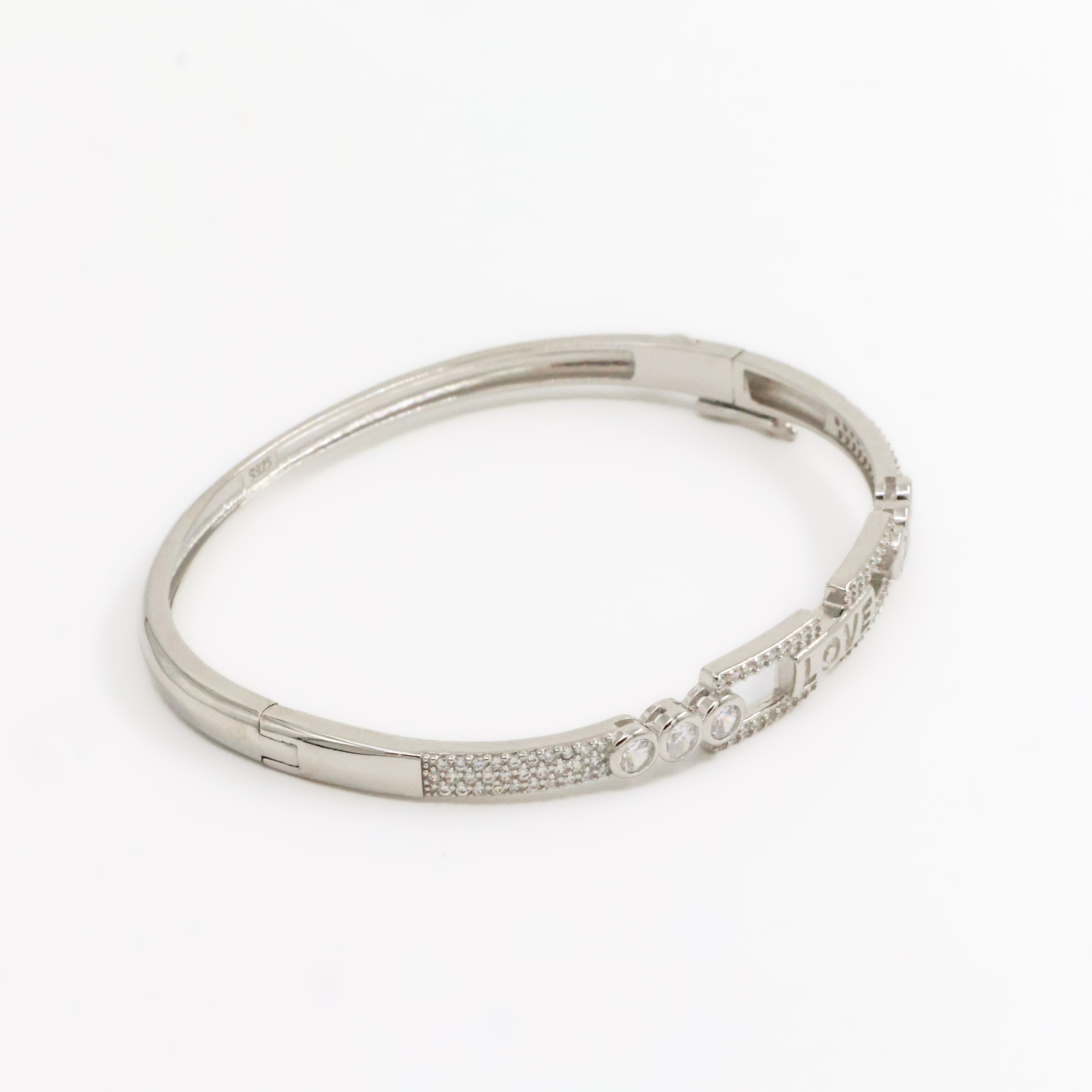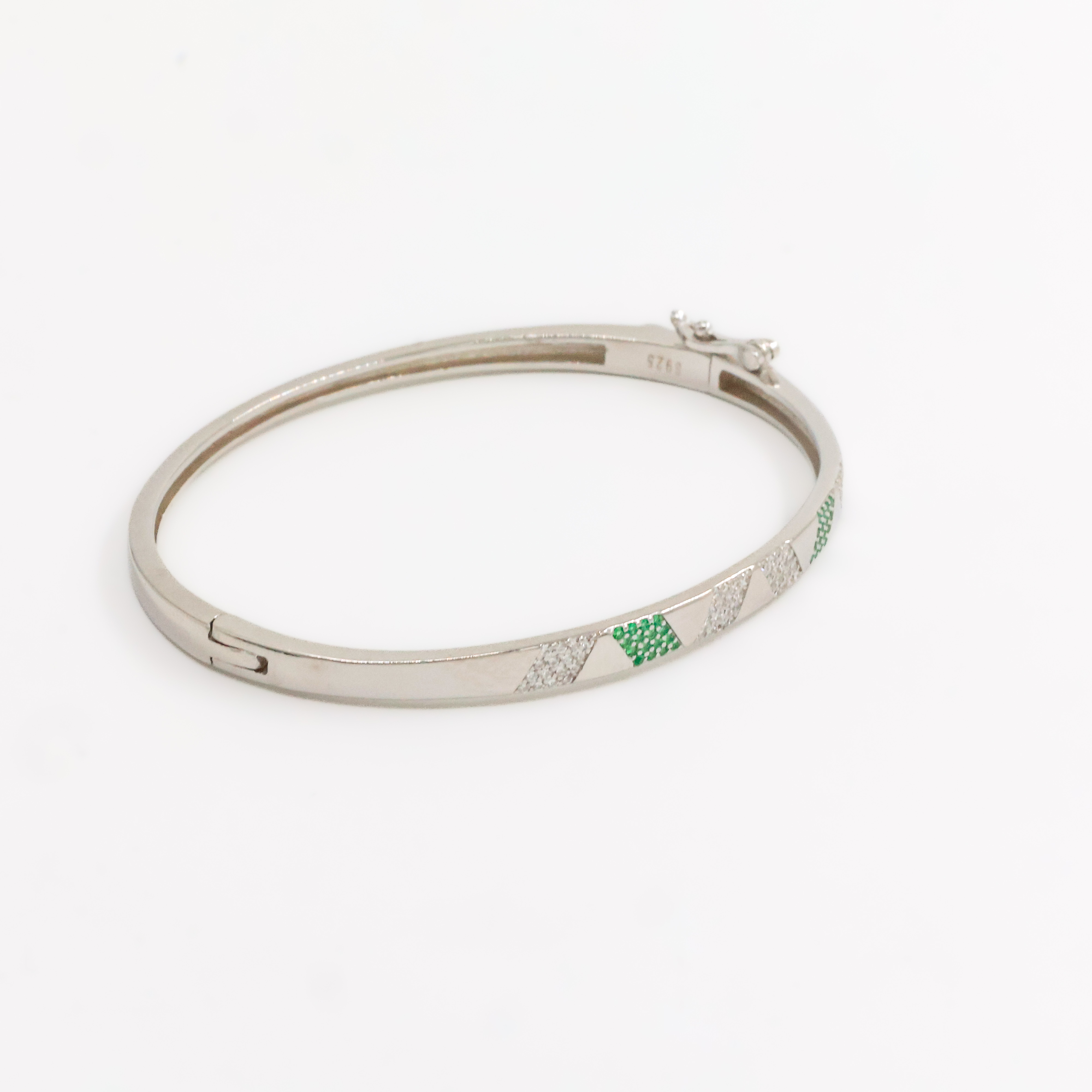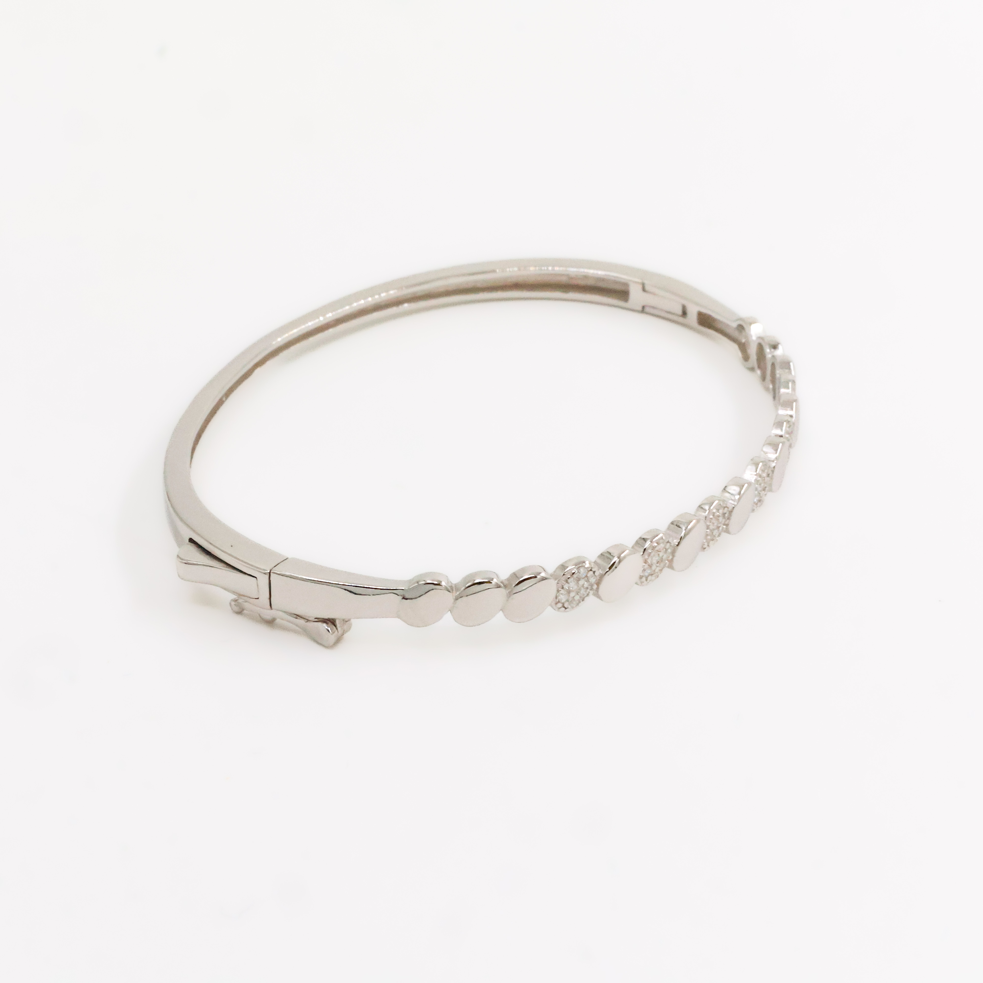Elegant silver bangle bracelet with intricate details, a perfect accessory for special occasions. Buy Silver Bangle Bracelet from Arham Gold in Hyderabad.