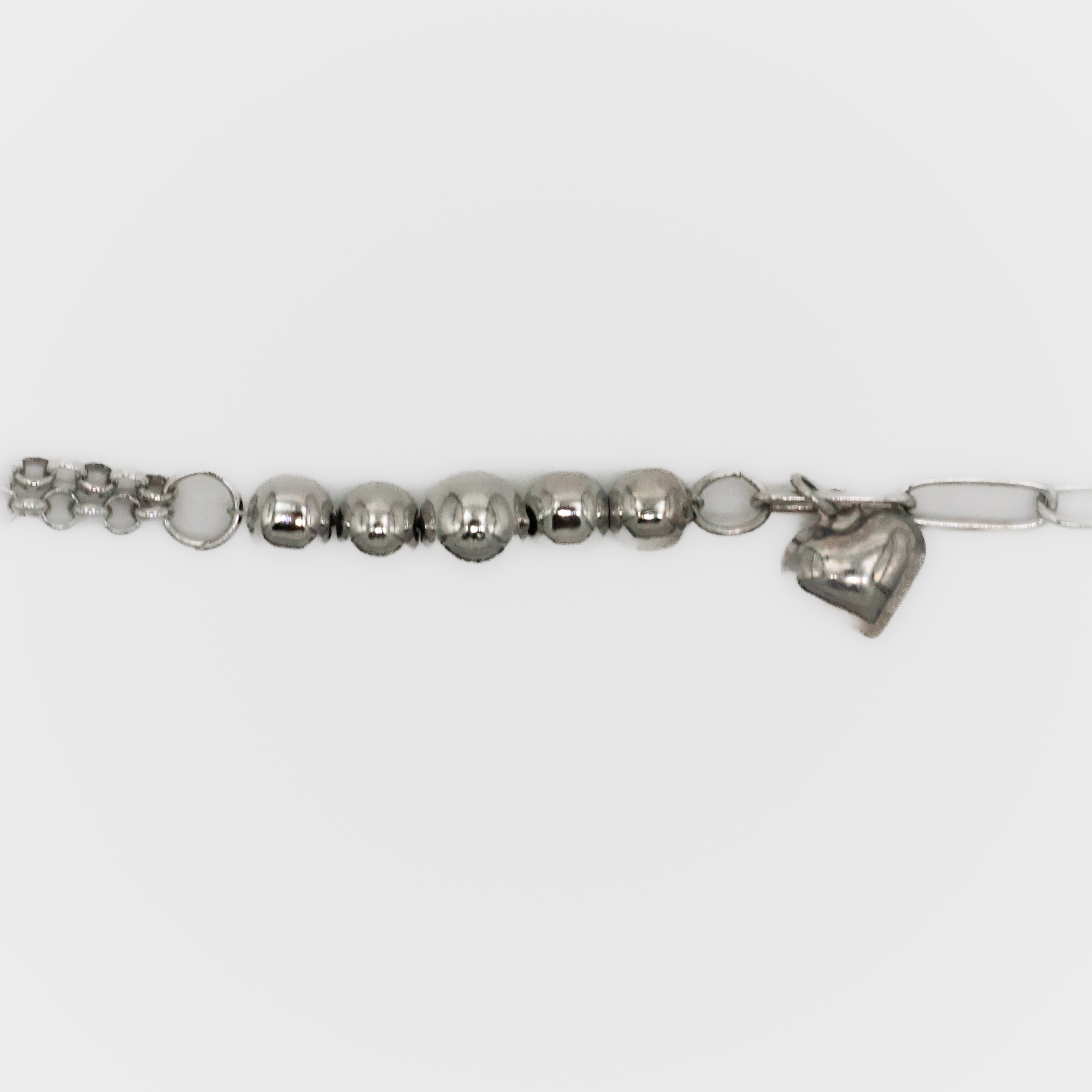 Elegant silver heart bracelet with beaded design, perfect for everyday wear or special occasions. Buy silver heart bracelet from Arham Silver Palace in Hyderabad.