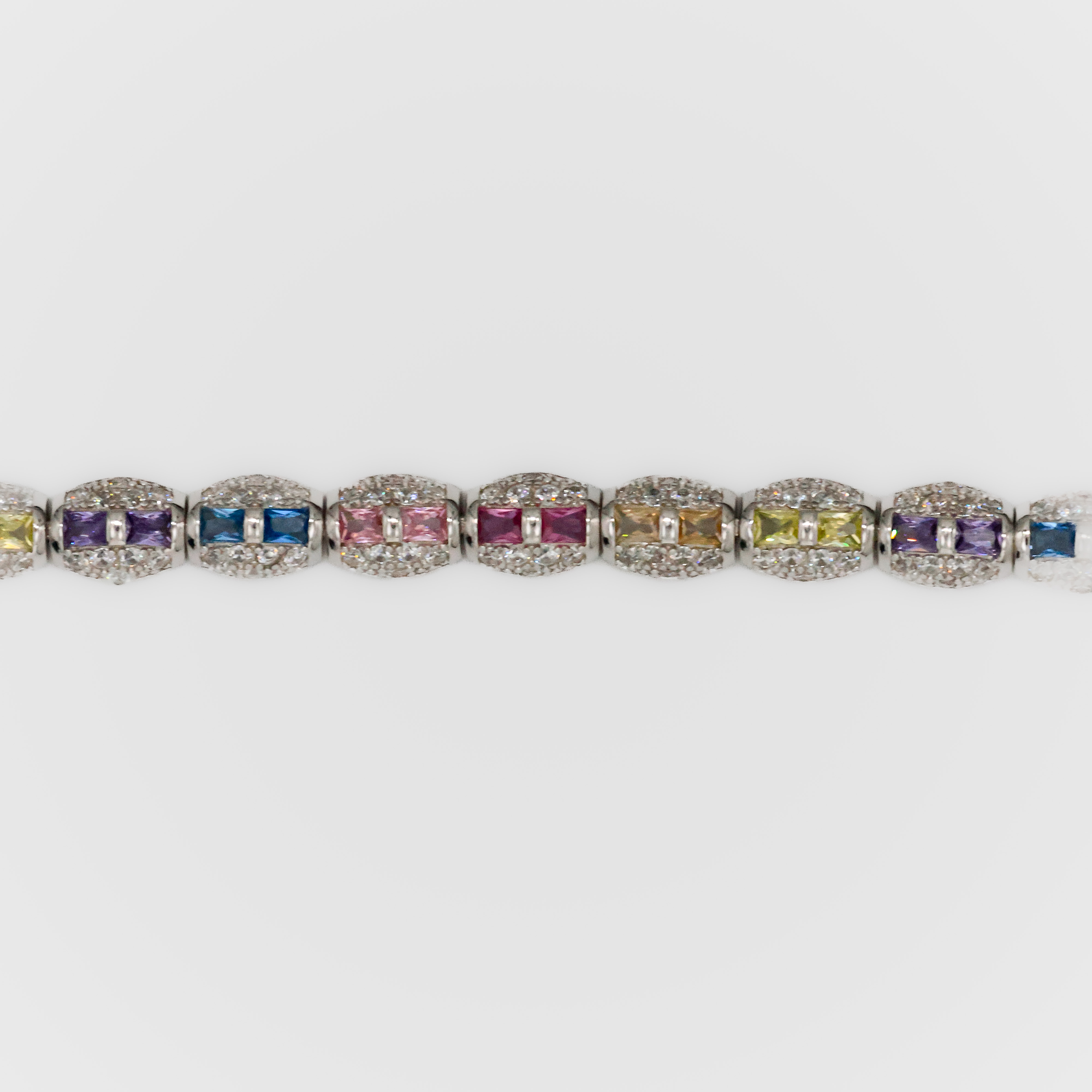 Sterling silver bracelet featuring colorful gemstones, perfect for adding a vibrant touch to any outfit. Buy silver gemstone bracelet from Arham Silver Palace in Hyderabad.