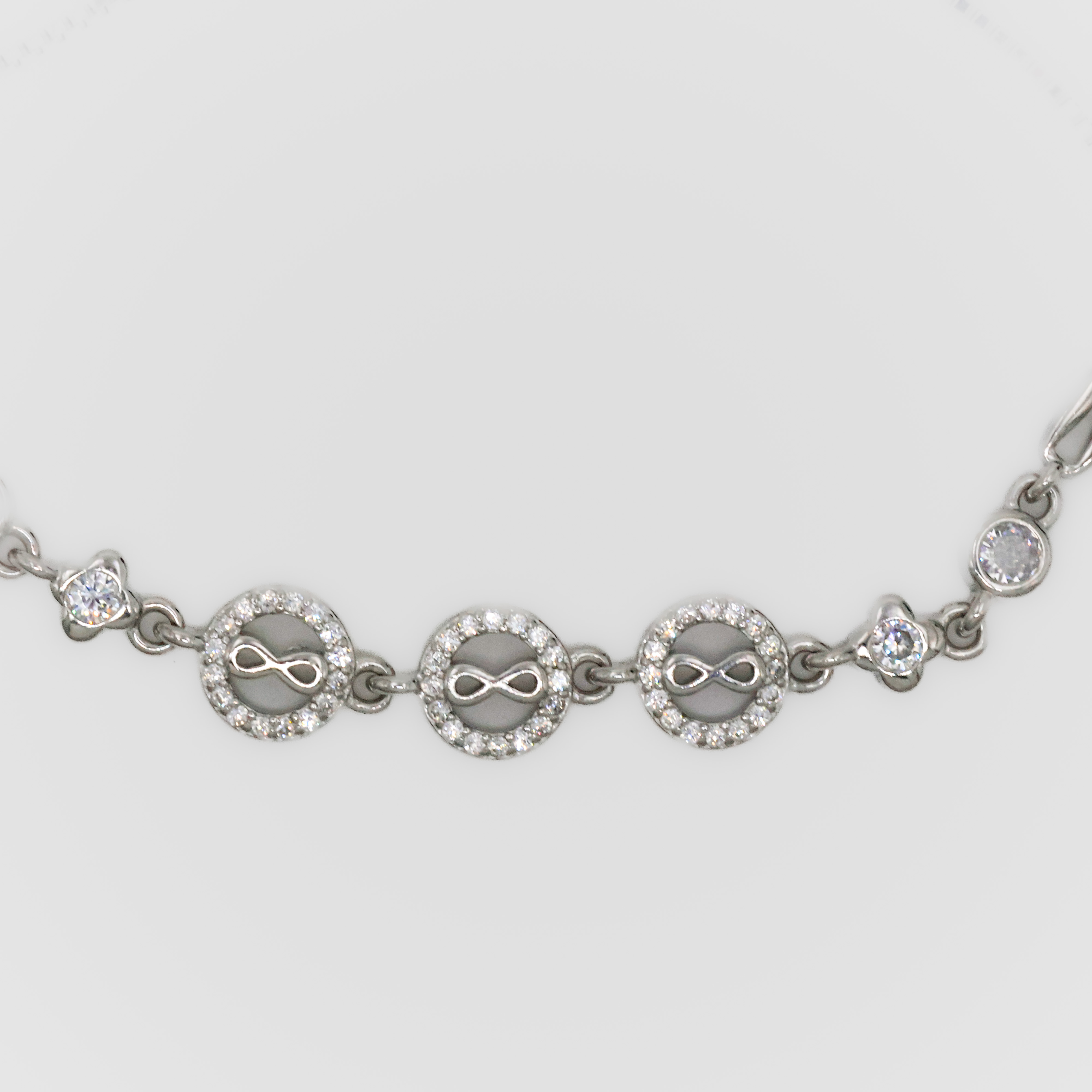 Elegant silver infinity bracelet featuring sparkling stones, perfect for everyday wear or special occasions. Buy silver infinity bracelet from Arham Silver Palace in Hyderabad.