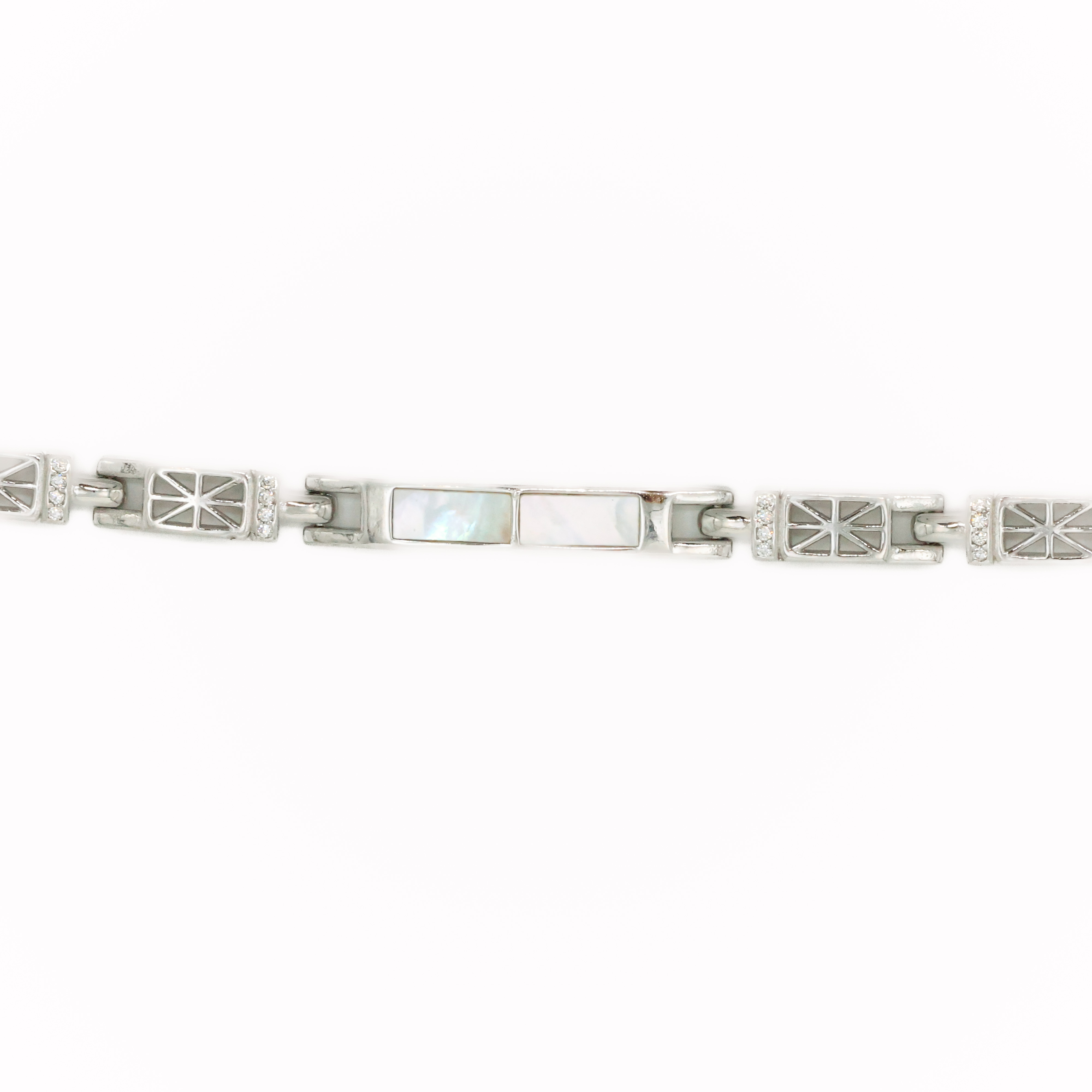Elegant silver link bracelet with stone accents, perfect for everyday wear and special occasions. Buy silver link bracelet from Arham Silver Palace in Hyderabad.
