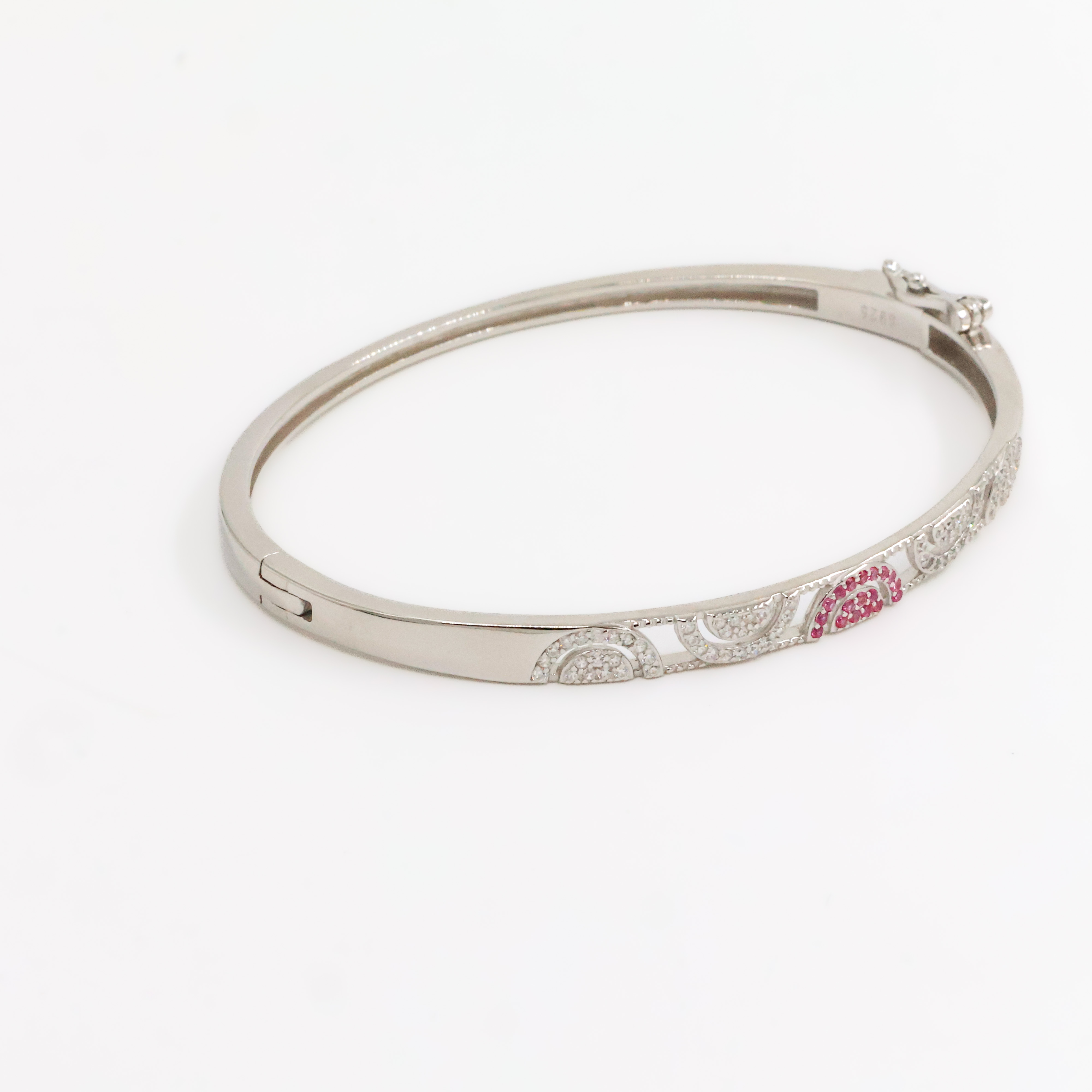 Elegant silver bangle bracelet with CZ stones, perfect for everyday wear or special occasions. Buy silver bangle bracelet from Arham Gold in Hyderabad.
