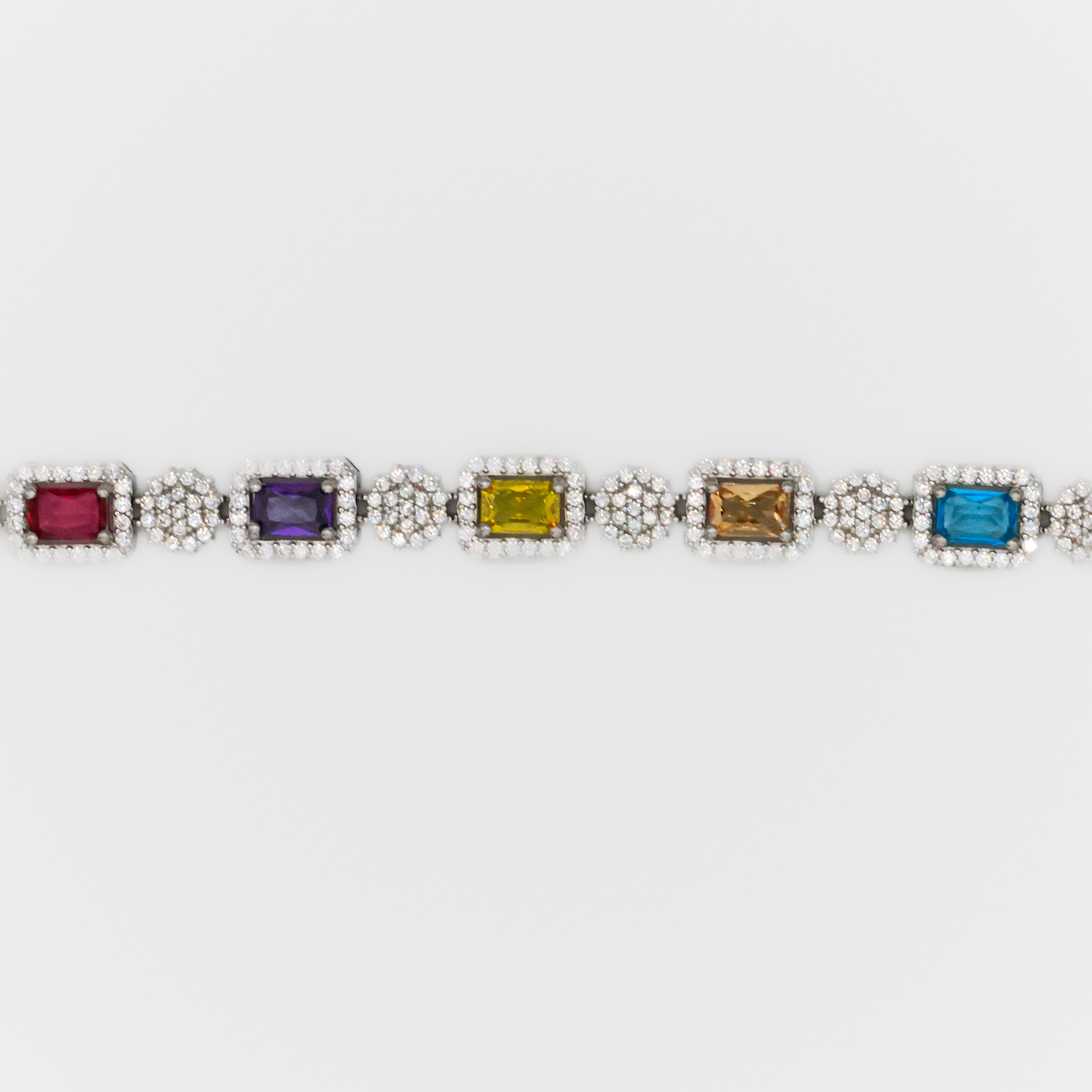Colorful gemstone bracelet with intricate silver detailing, perfect for adding a touch of elegance. Buy silver gemstone bracelet from Arham Silver Palace in Hyderabad.