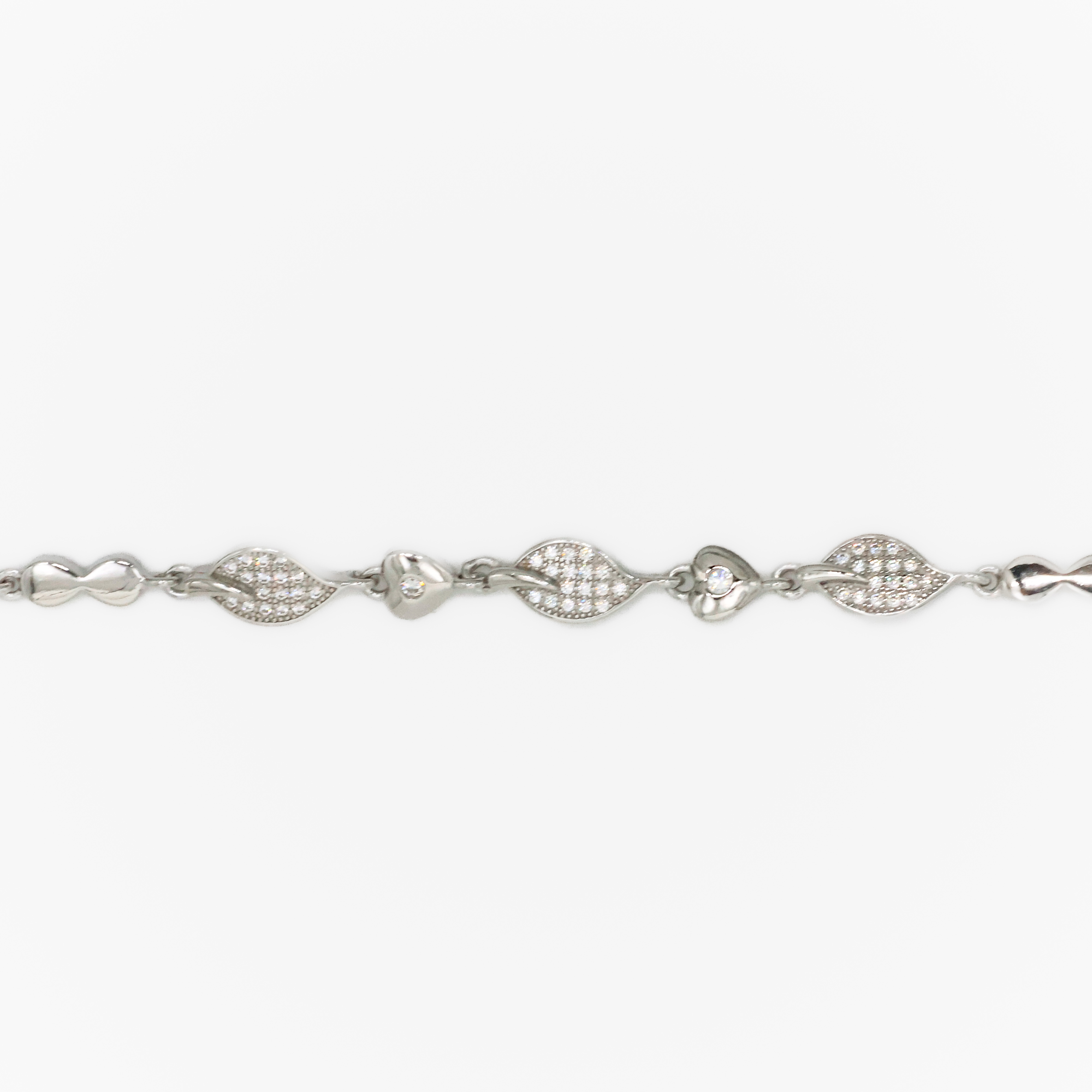 Elegant silver leaf bracelet studded with zircons, perfect for everyday wear or special occasions. Buy silver leaf bracelet from Arham Silver Palace in Hyderabad.