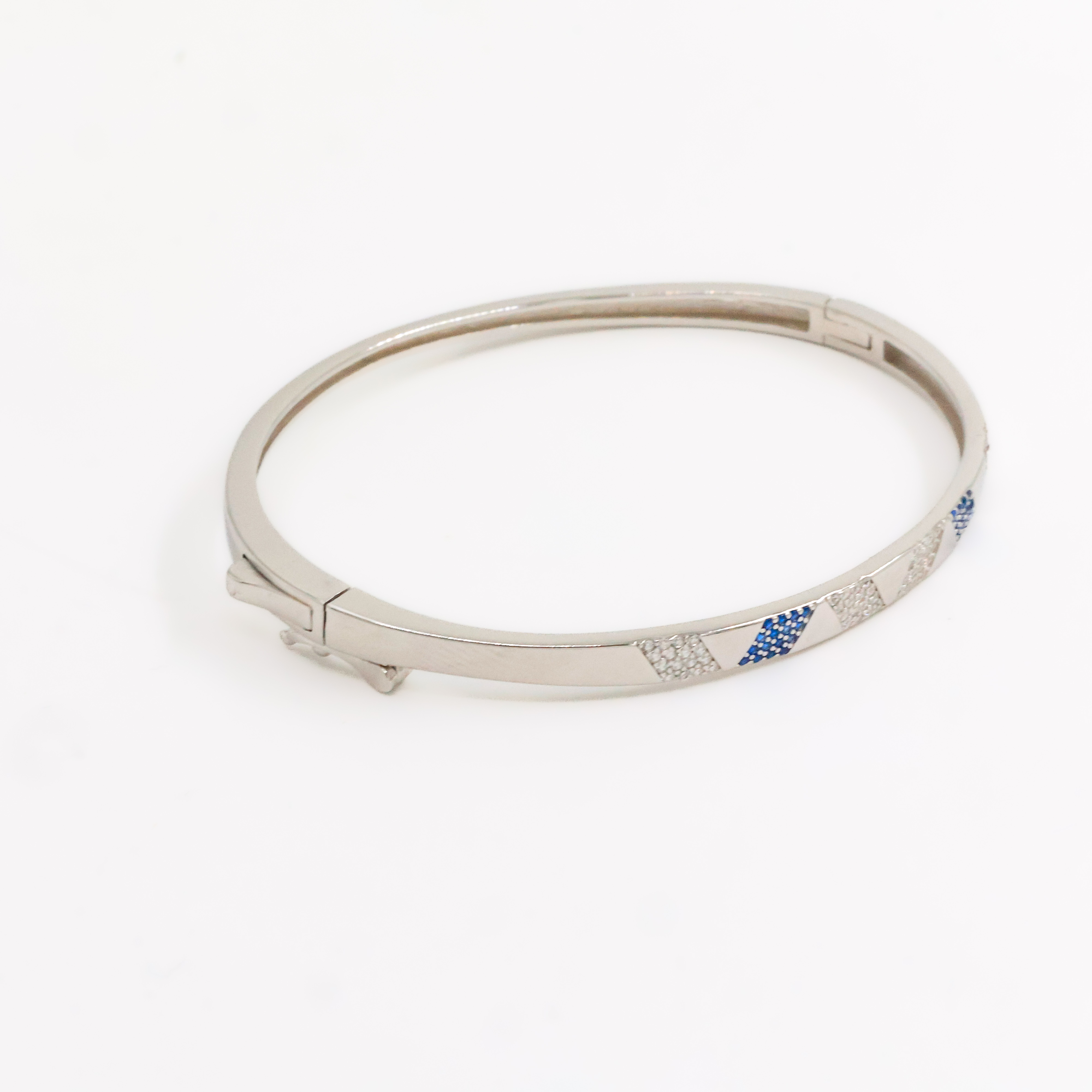Elegant silver bangle bracelet with sparkling stone detailing, perfect for daily wear and special occasions. Buy silver bangle bracelet from Arham Gold in Hyderabad.