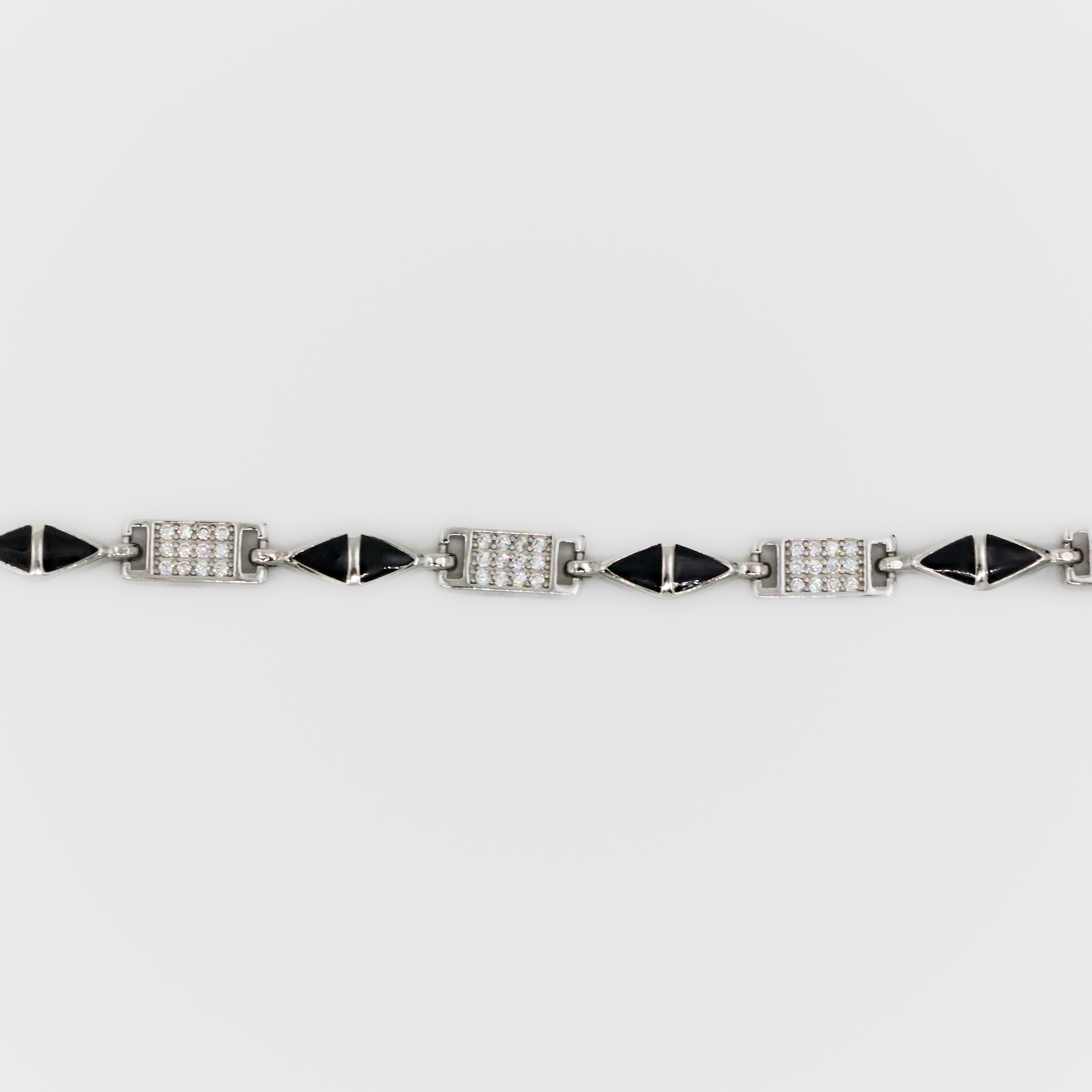Elegant silver link bracelet featuring black accents and cubic zirconia, perfect for any occasion. Buy silver link bracelet from Arham Silver Palace in Hyderabad.