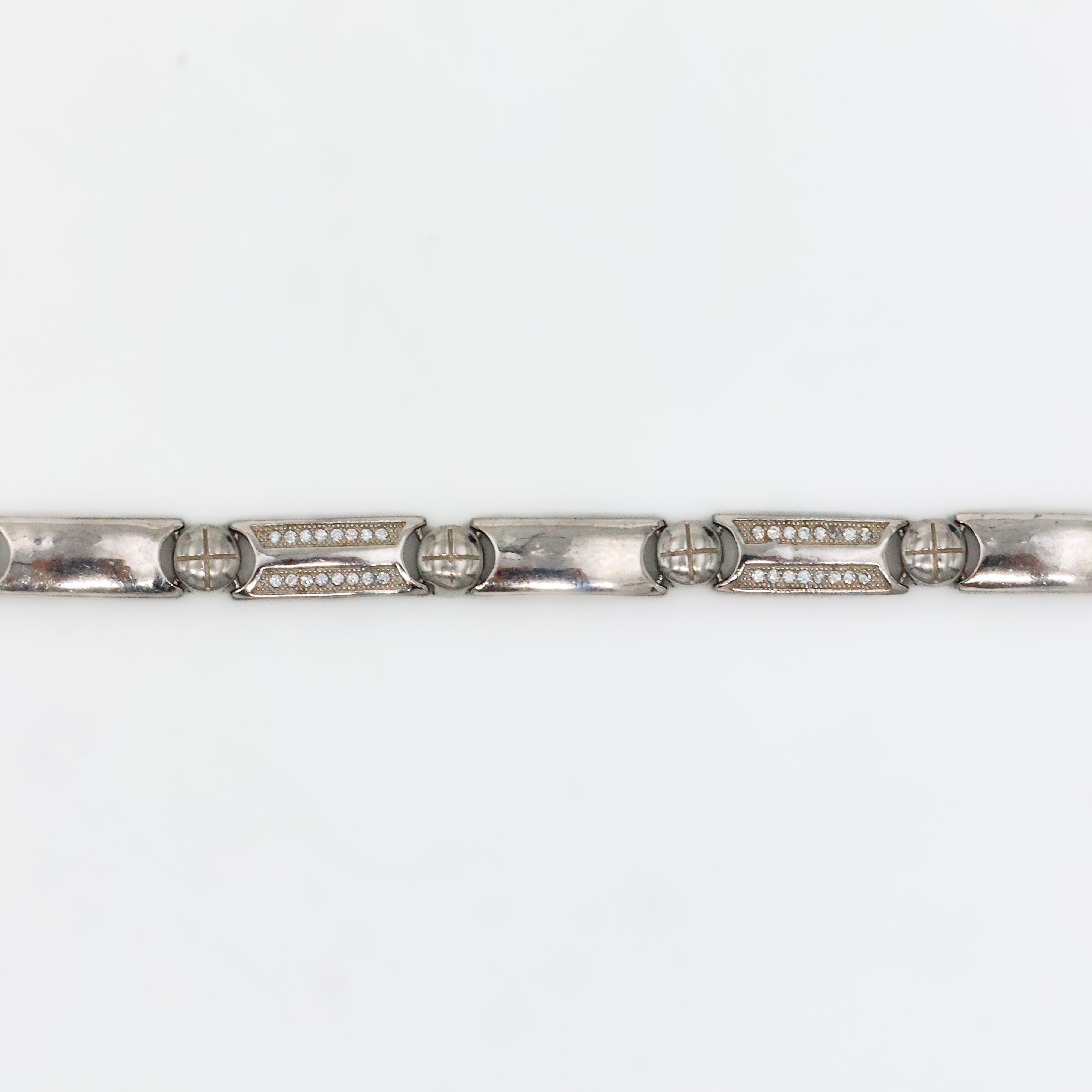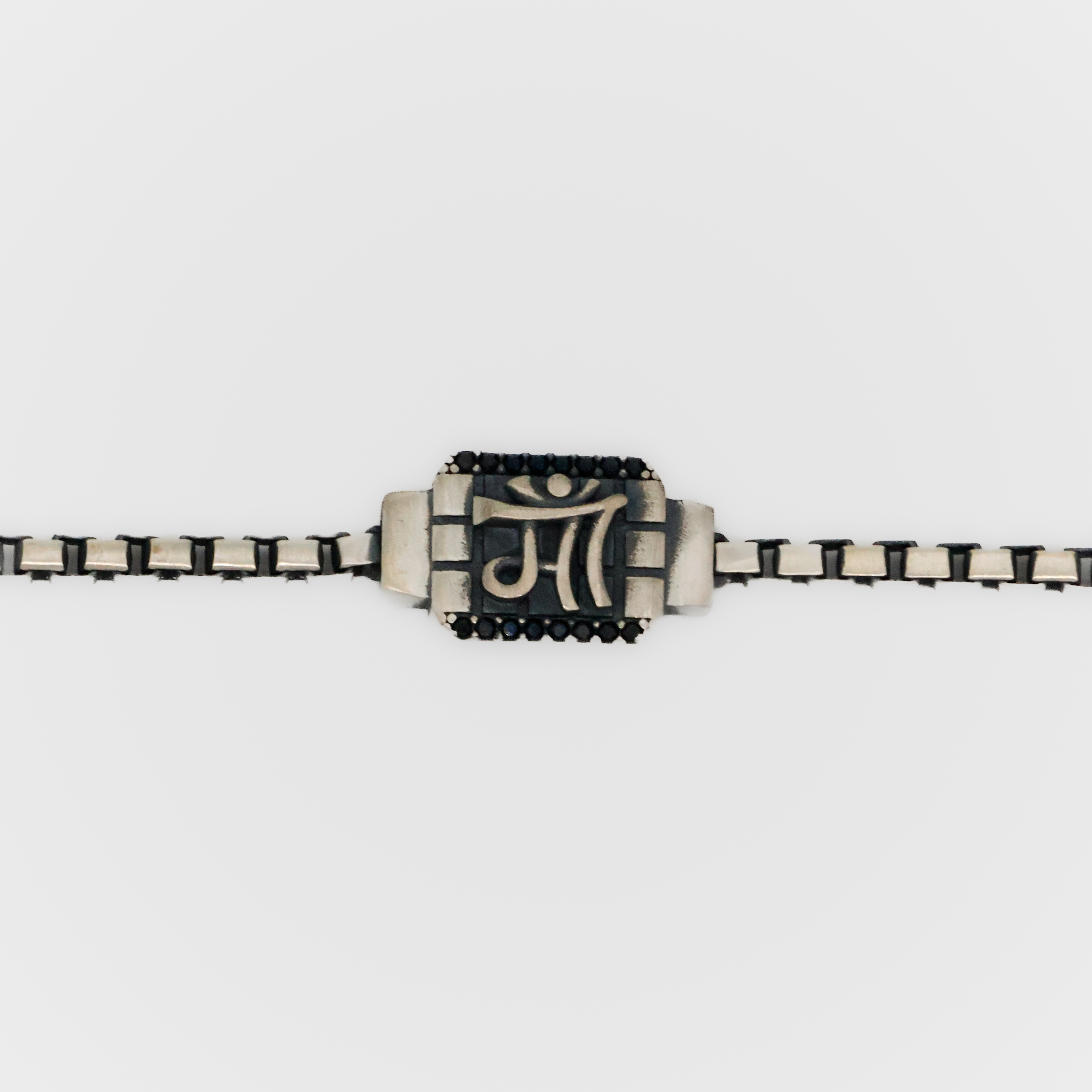 Stylish silver link bracelet with geometric accents, perfect for everyday wear or special occasions. Buy silver link bracelet from Arham Silver Palace in Hyderabad.