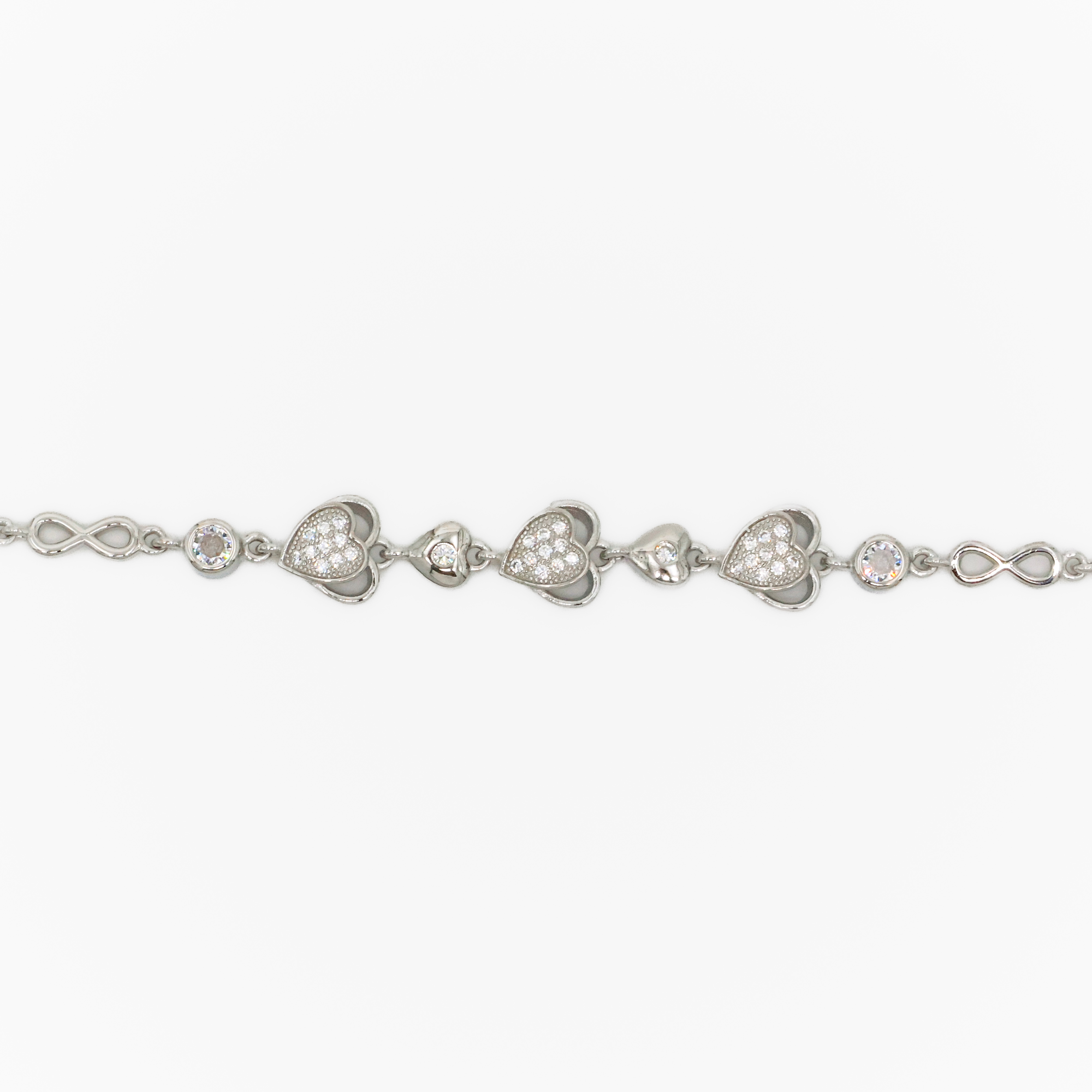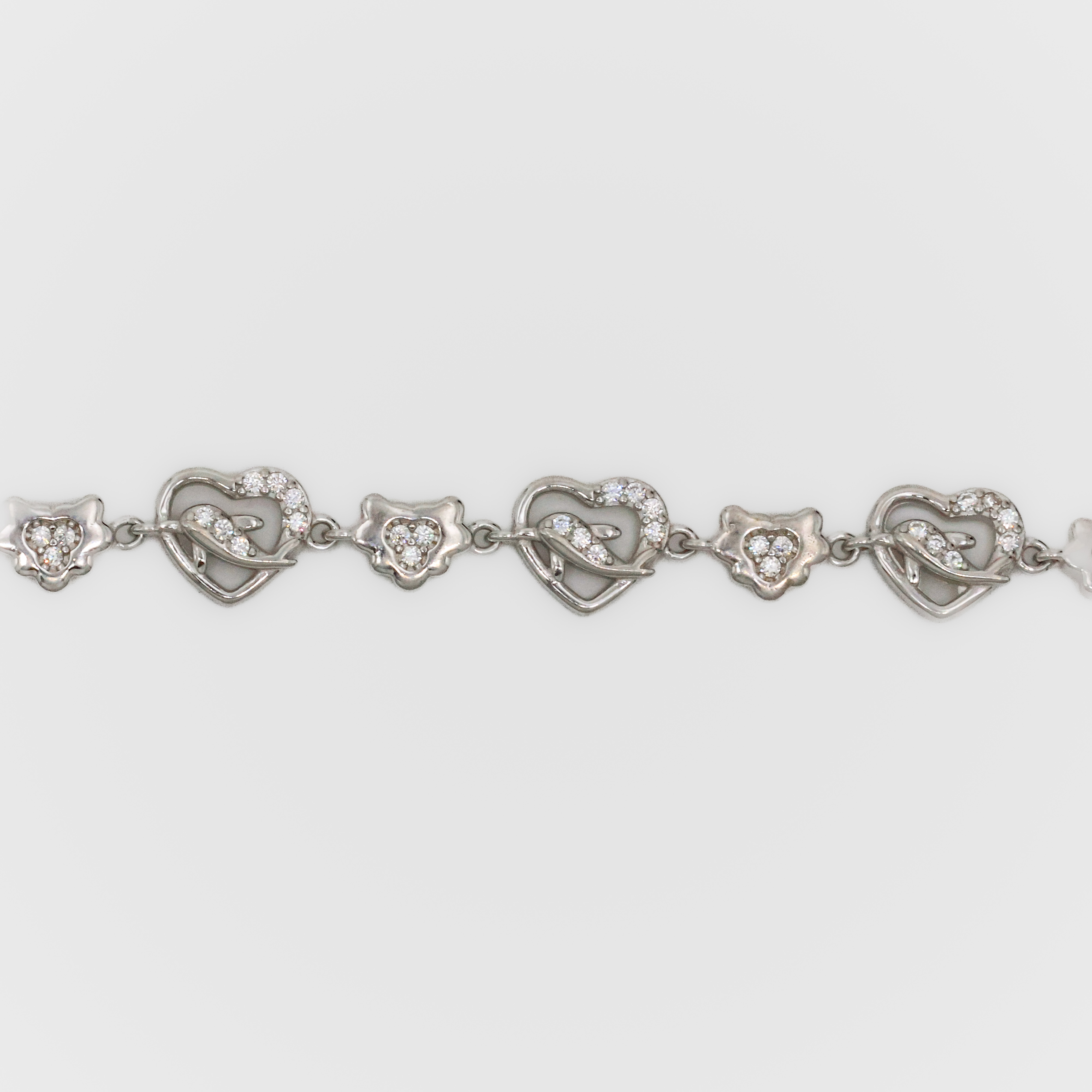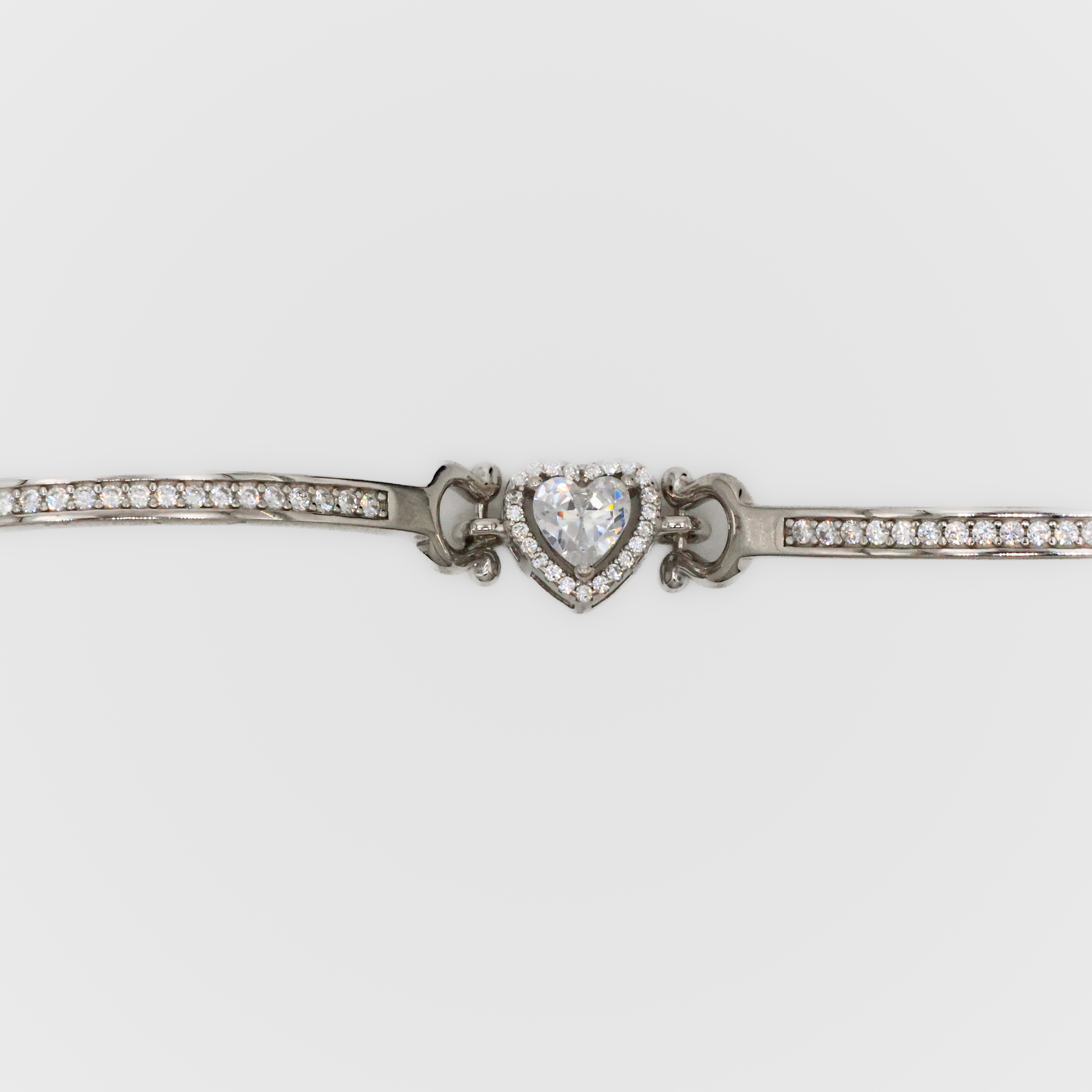 Elegant silver heart bracelet adorned with sparkling stones, perfect for gifting and special occasions. Buy silver heart bracelet from Arham Silver Palace in Hyderabad.