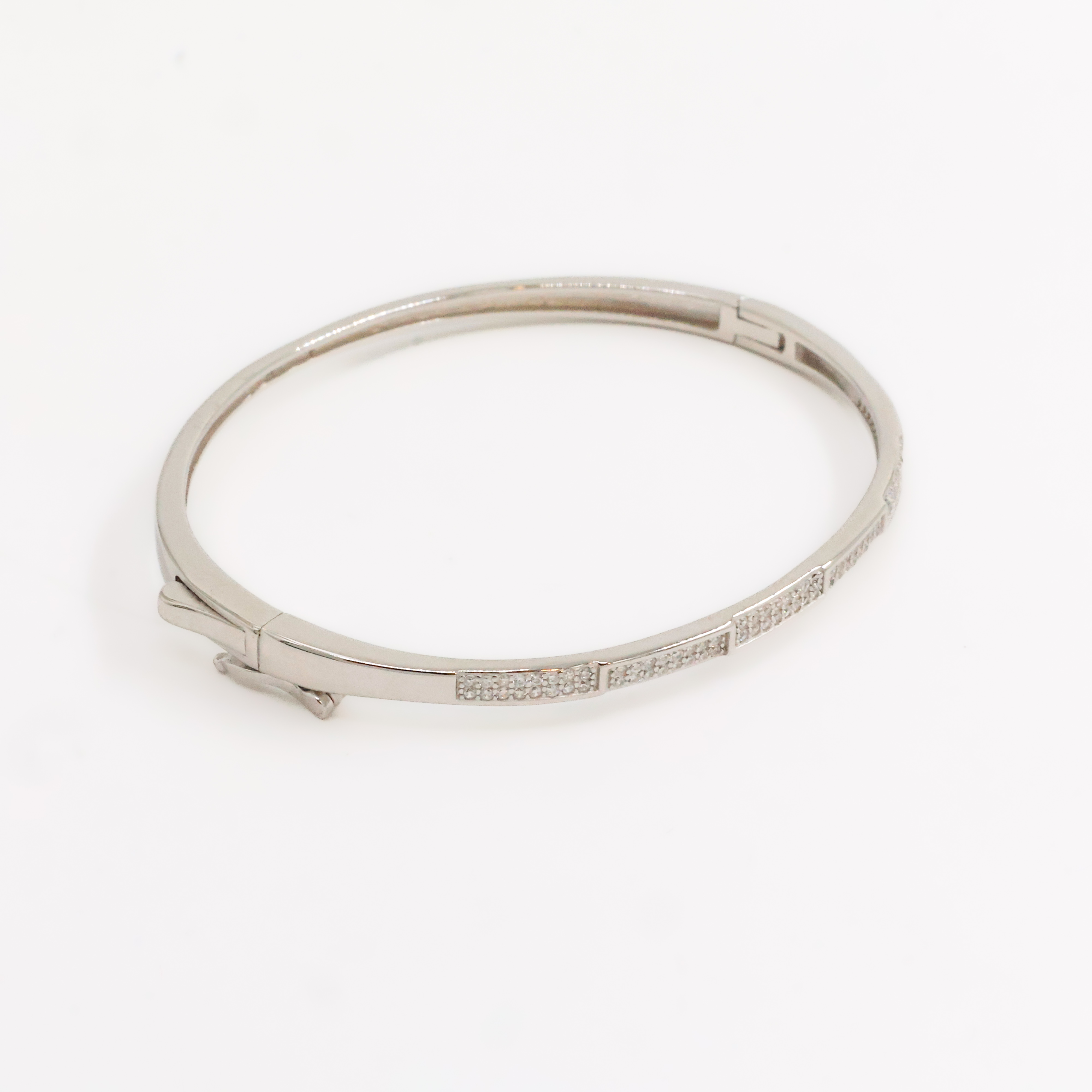 Elegant silver bangle bracelet with stone studded design, perfect for parties and everyday wear. Buy silver bangle bracelet from Arham Gold in Hyderabad.