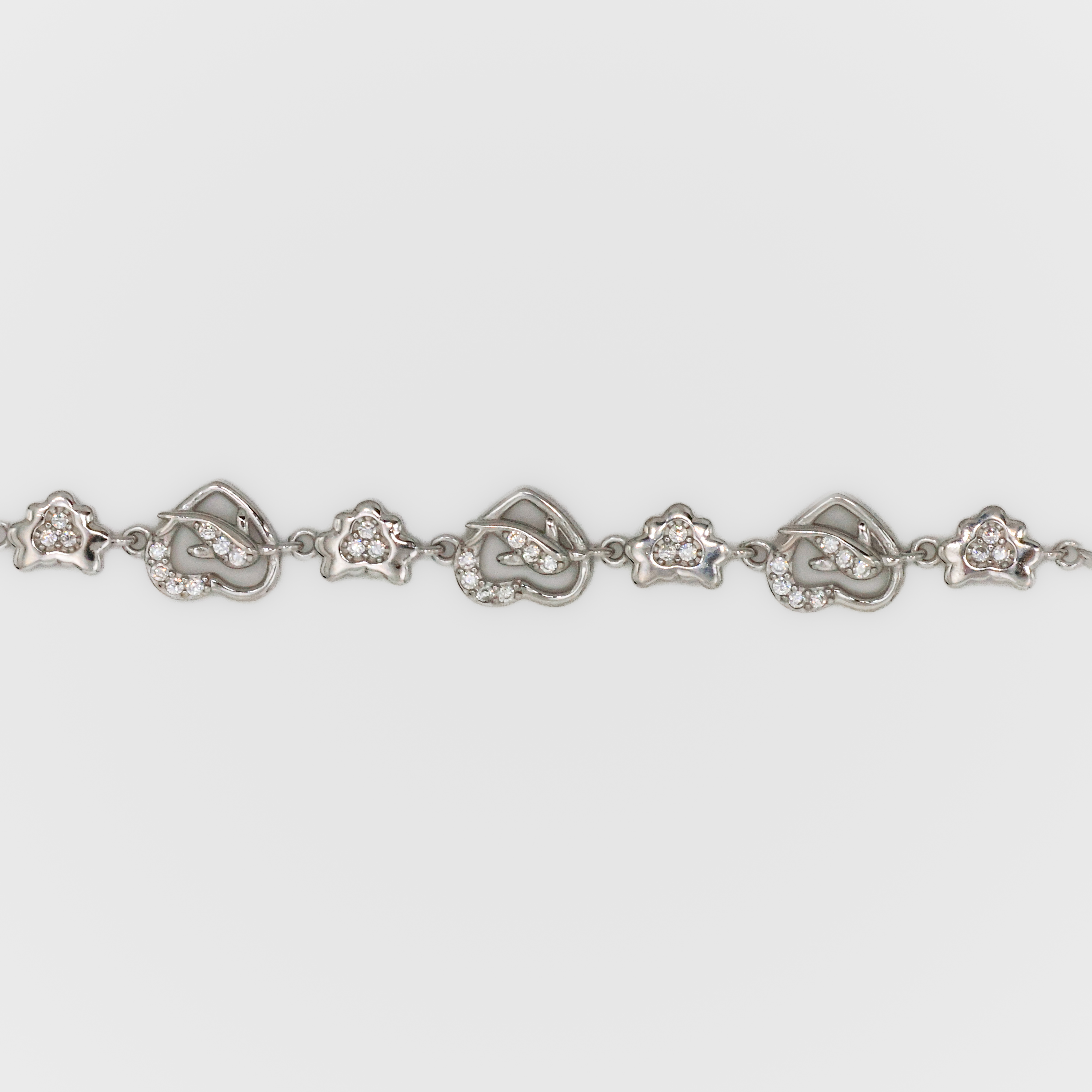 Elegant silver heart bracelet adorned with sparkling stones, perfect for everyday wear or special occasions. Buy Silver Heart Bracelet from Arham Silver Palace in Hyderabad.