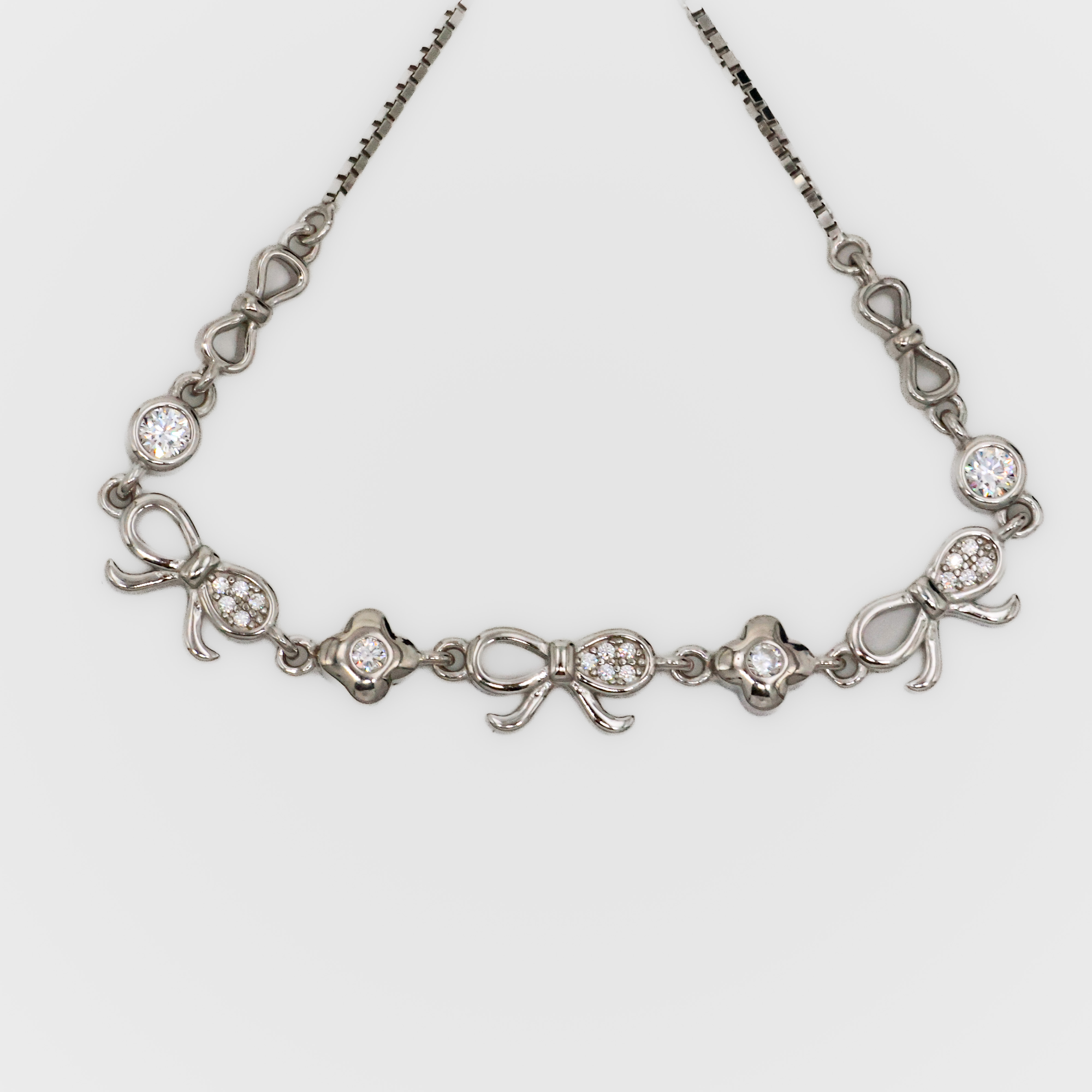 Elegant silver bow bracelet with sparkling stones, perfect for everyday wear and special occasions. Buy Silver Bow Bracelet from Arham Silver Palace in Hyderabad.